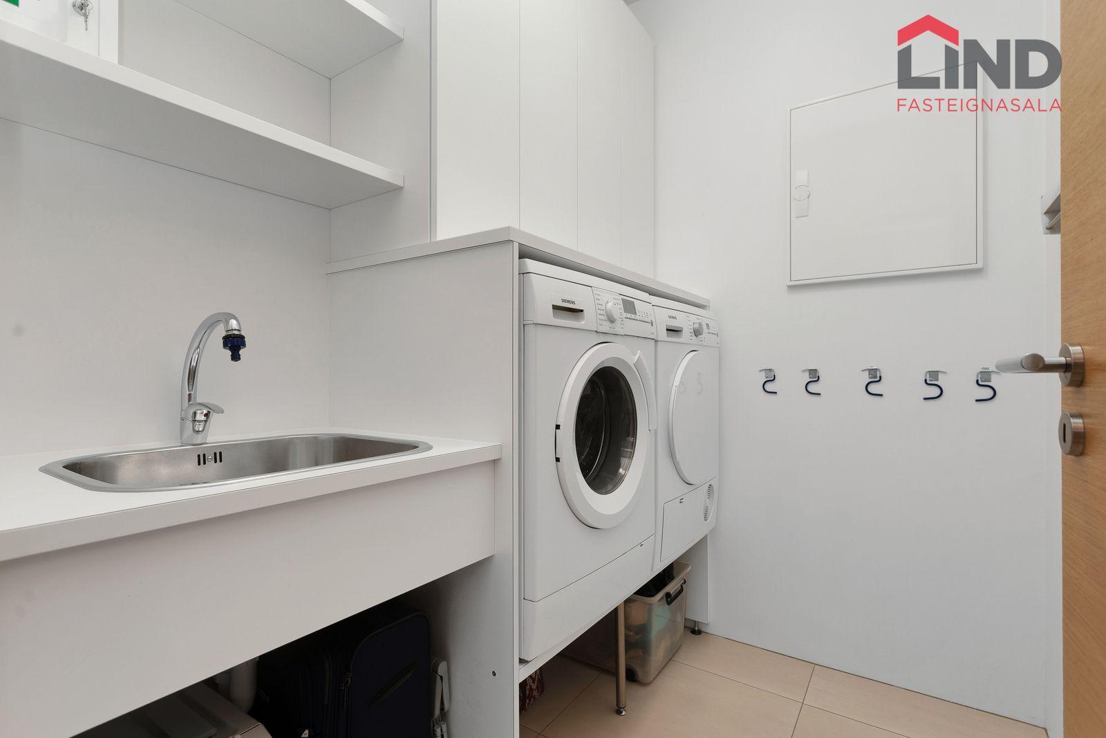 Ísskápur, uppþvottavél, þvottavél og þurrkari fylgja.