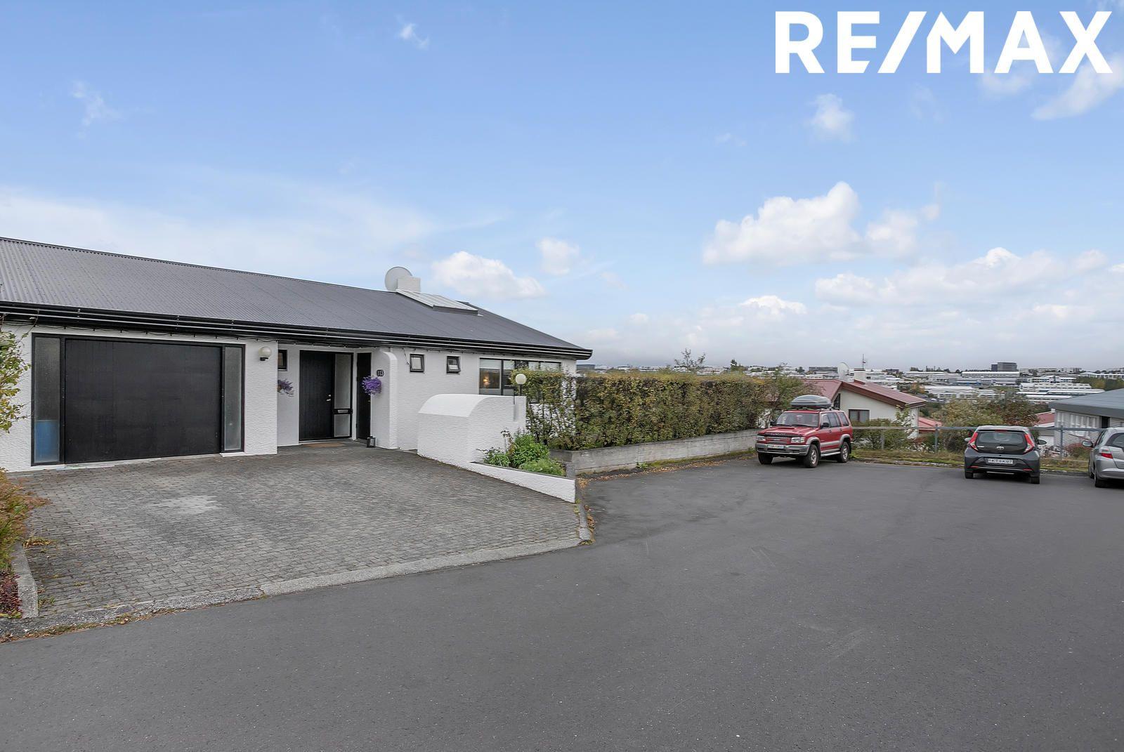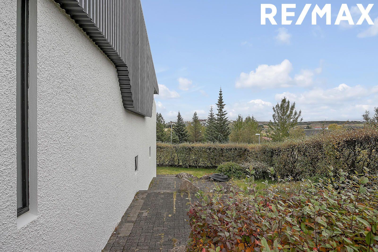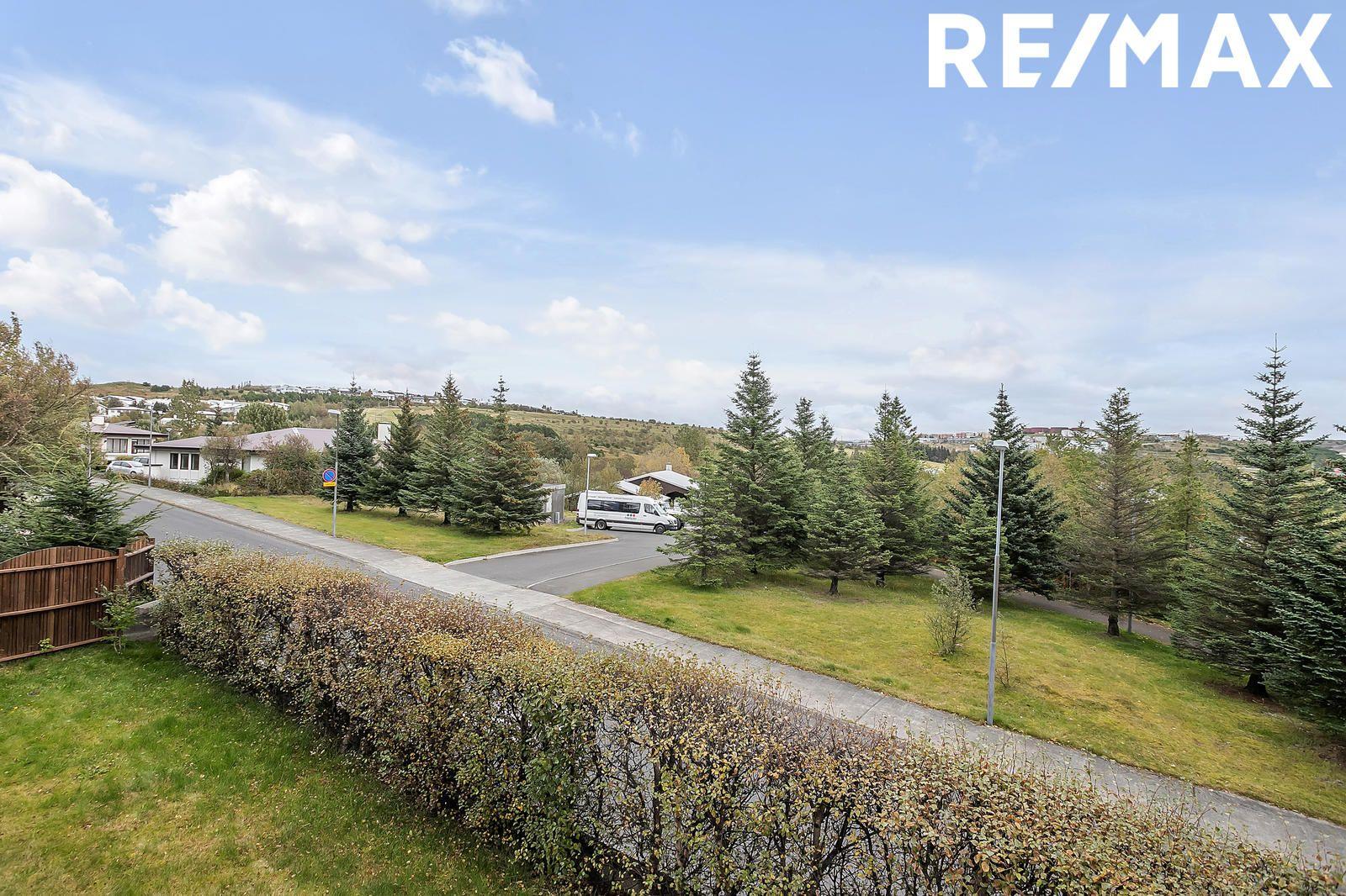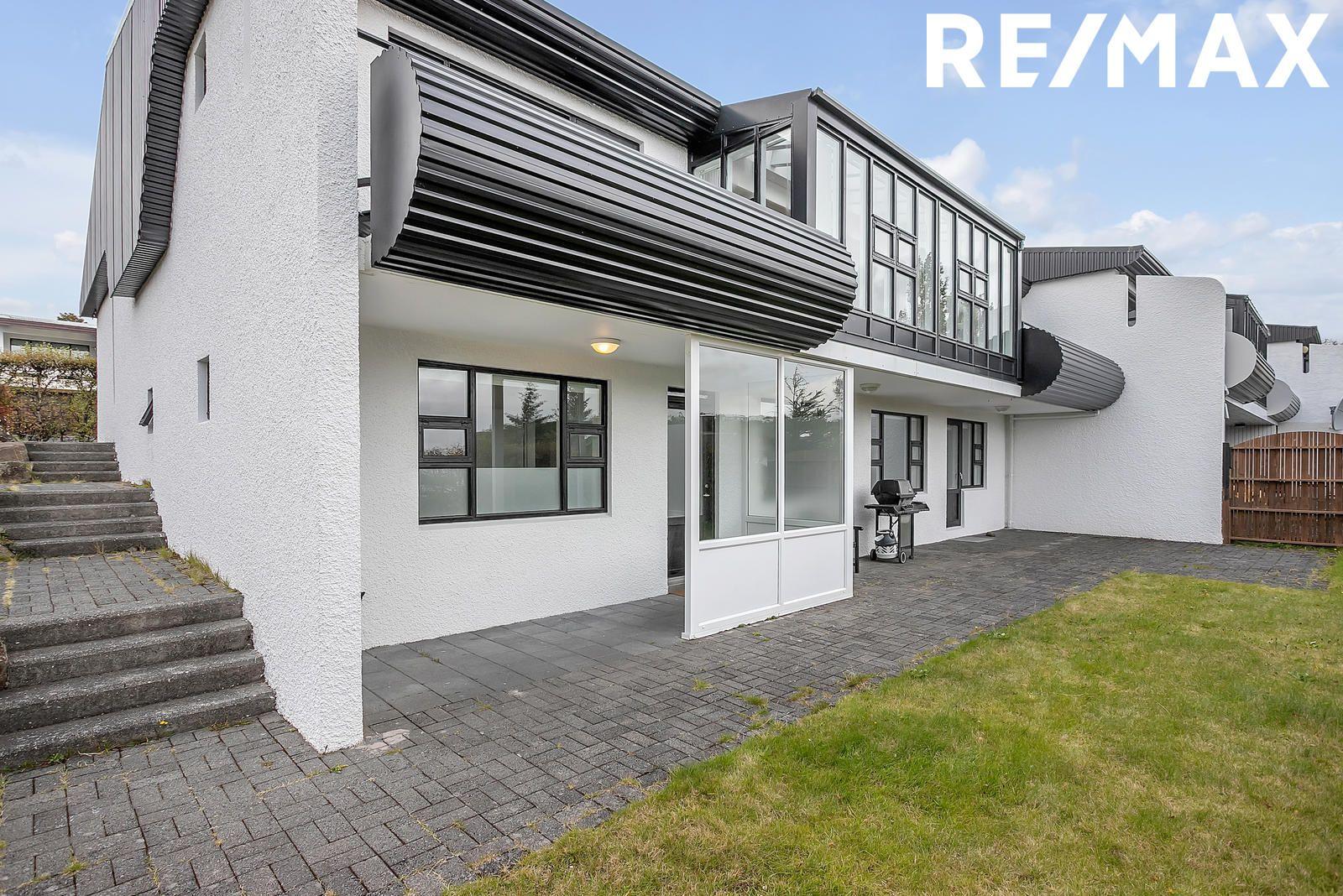 Nánari lýsing: Húsið er byggt árið 1987 og er steypt. Húsið er endaraðhús og stendur í enda á botnlanga. Í dag er húsinu skipt i tvær íbúðir en lítið mál er að opna aftur á milli hæða.Efri hæðin er skráð 161,2 fm og þar er baðherbergi, stórar stofur, borðstofa, eldhús, þvottahús og stórt svefnherbergi. Bílskúrinn er skráður 32,9 fm en er með góðu geymslulofti. Neðri hæðin er skráð 87,5 fm og þar eru þrjú svefnherbergi, baðherbergi, eldhús/borðstofa og sjónvarpsrými/stofa. Fyrirkomulag á báðum hæðum sést vel á teikningu af hæðum sem sjá má undir myndum af eigninni.
