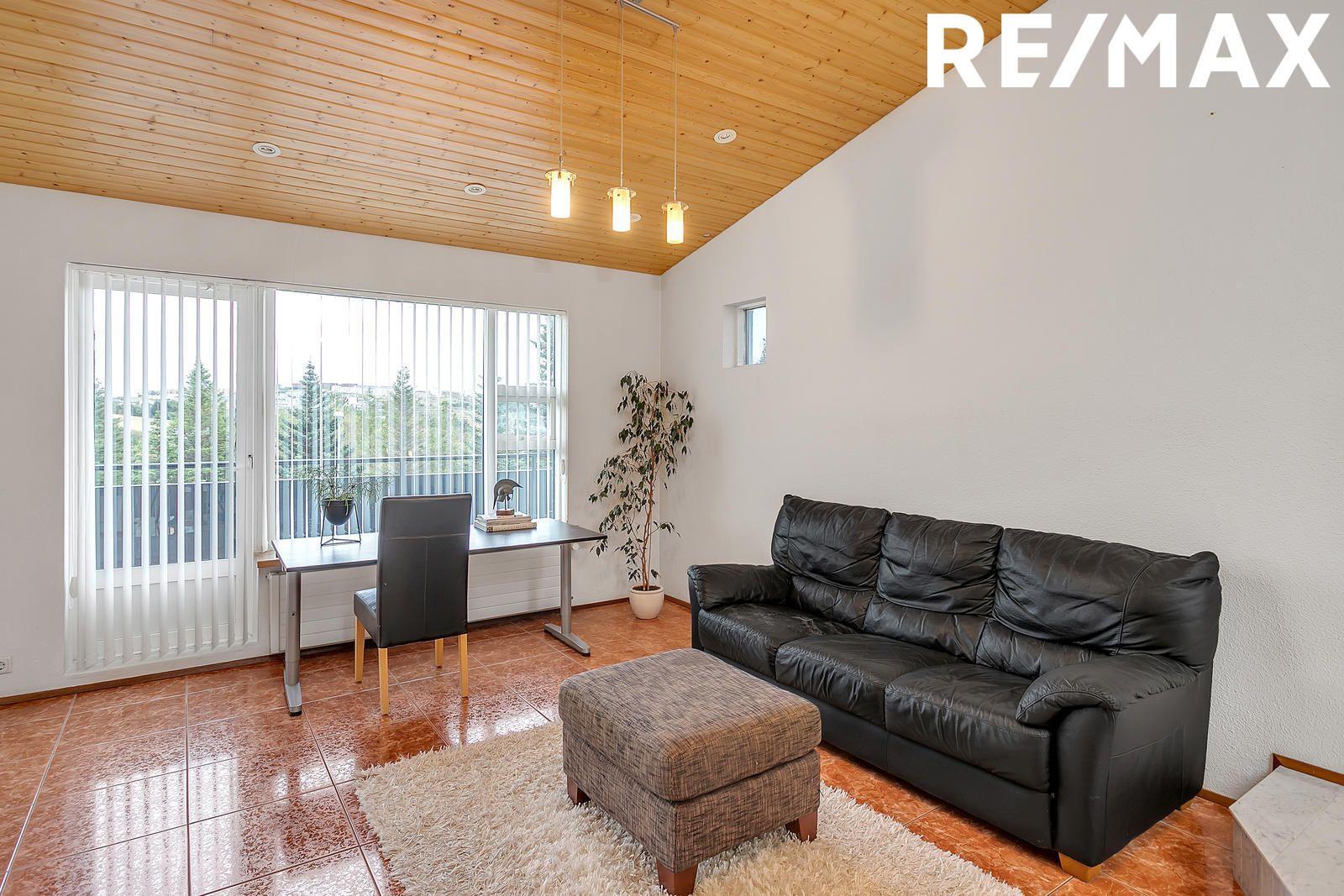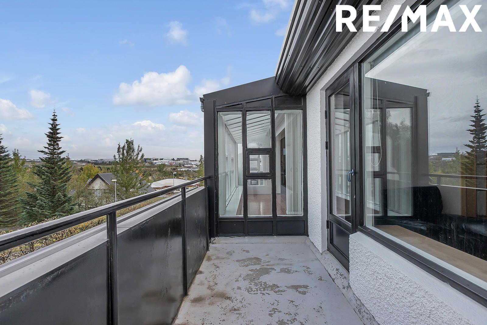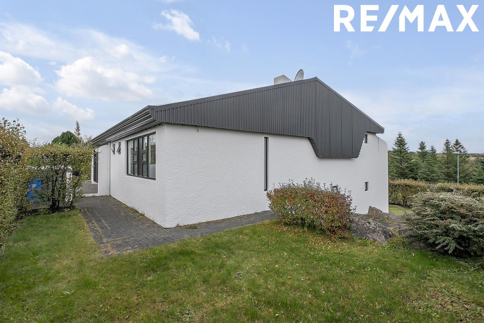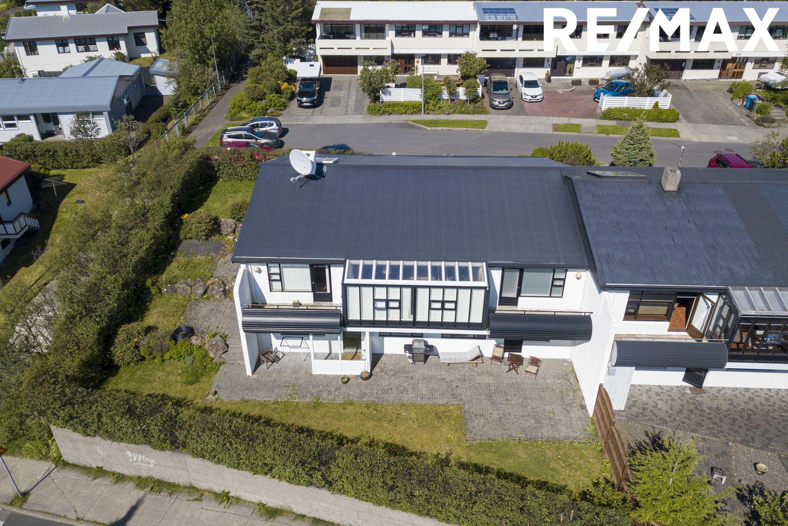Nánari lýsing: Húsið er byggt árið 1987 og er steypt. Húsið er endaraðhús og stendur í enda á botnlanga. Í dag er húsinu skipt i tvær íbúðir en lítið mál er að opna aftur á milli hæða.Efri hæðin er skráð 161,2 fm og þar er baðherbergi, stórar stofur, borðstofa, eldhús, þvottahús og stórt svefnherbergi. Bílskúrinn er skráður 32,9 fm en er með góðu geymslulofti. Neðri hæðin er skráð 87,5 fm og þar eru þrjú svefnherbergi, baðherbergi, eldhús/borðstofa og sjónvarpsrými/stofa. Fyrirkomulag á báðum hæðum sést vel á teikningu af hæðum sem sjá má undir myndum af eigninni.