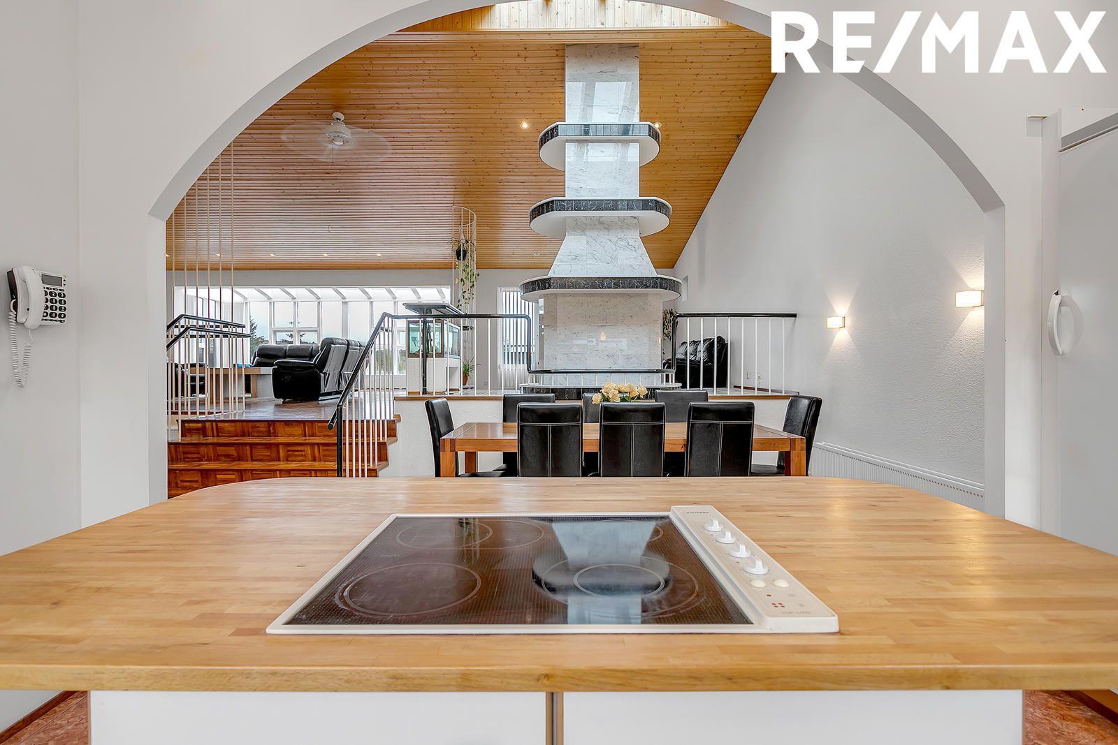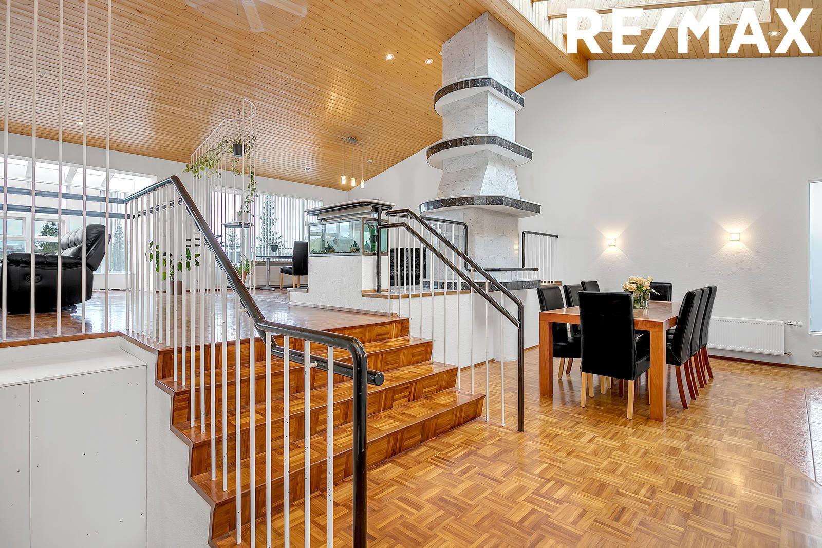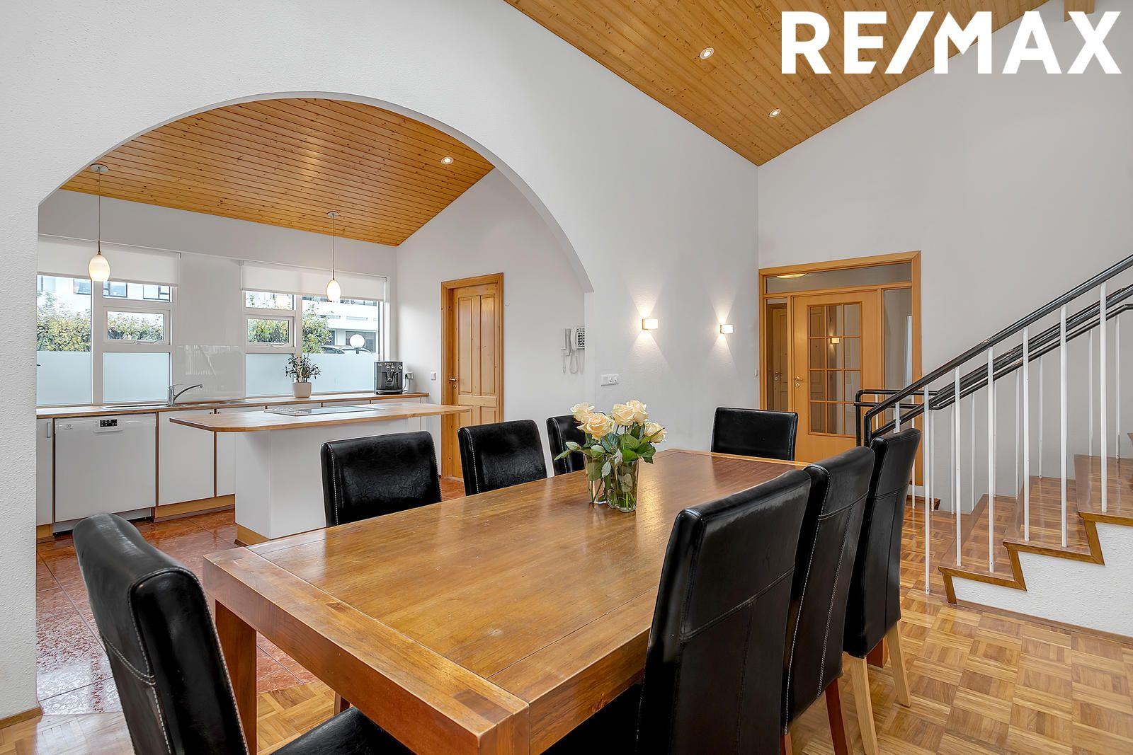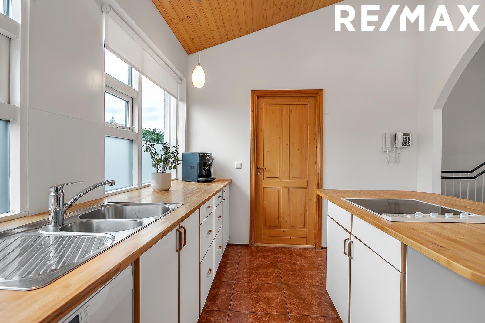 Nánari lýsing: Húsið er byggt árið 1987 og er steypt. Húsið er endaraðhús og stendur í enda á botnlanga. Í dag er húsinu skipt i tvær íbúðir en lítið mál er að opna aftur á milli hæða.Efri hæðin er skráð 161,2 fm og þar er baðherbergi, stórar stofur, borðstofa, eldhús, þvottahús og stórt svefnherbergi. Bílskúrinn er skráður 32,9 fm en er með góðu geymslulofti. Neðri hæðin er skráð 87,5 fm og þar eru þrjú svefnherbergi, baðherbergi, eldhús/borðstofa og sjónvarpsrými/stofa. Fyrirkomulag á báðum hæðum sést vel á teikningu af hæðum sem sjá má undir myndum af eigninni.