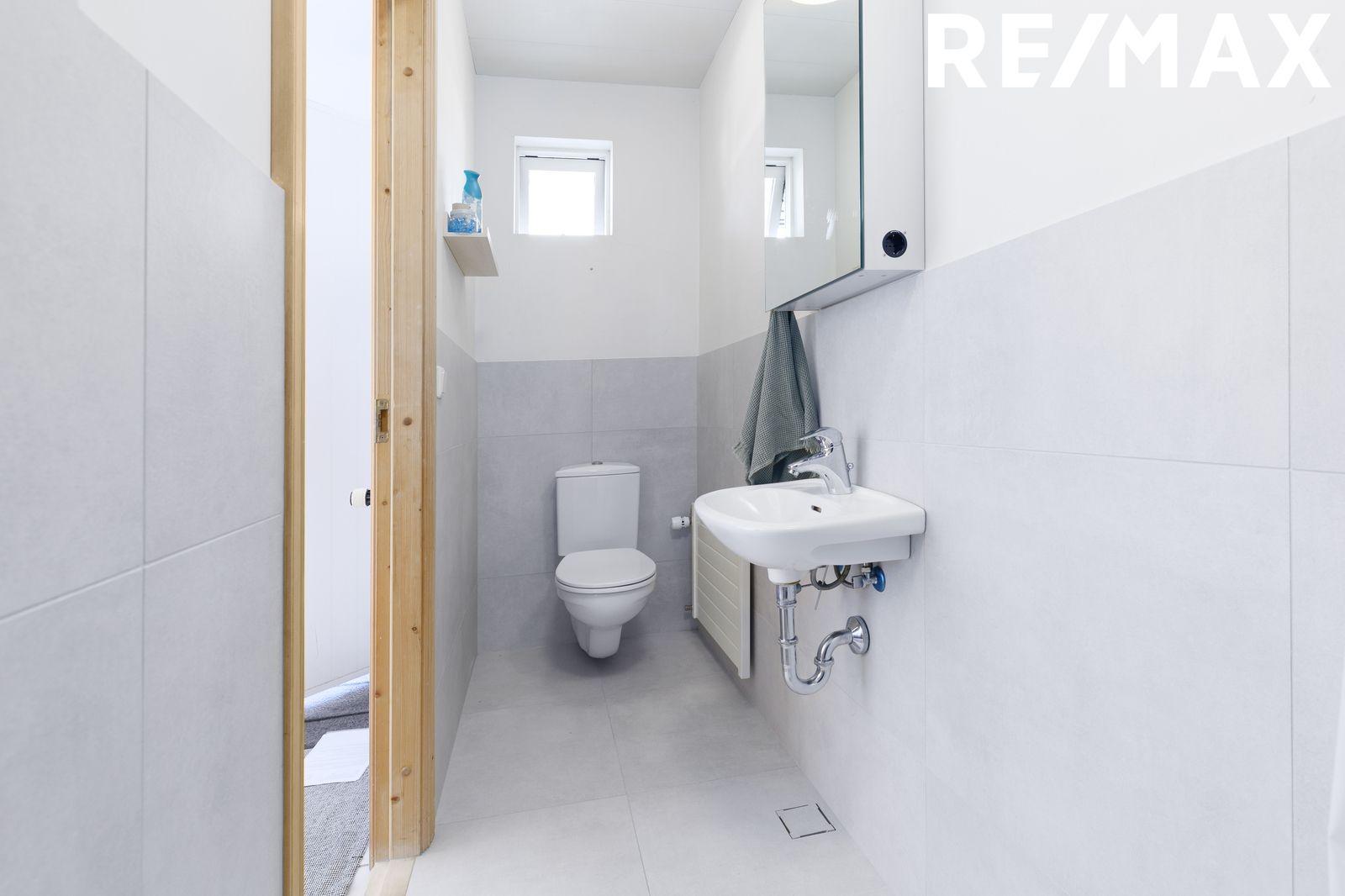 Baðherbergi: Flísalagt í hólf og gólf. Sturtuklefi með flísalögn og baðkar. Hvít innrétting með handlaug. Salerni.