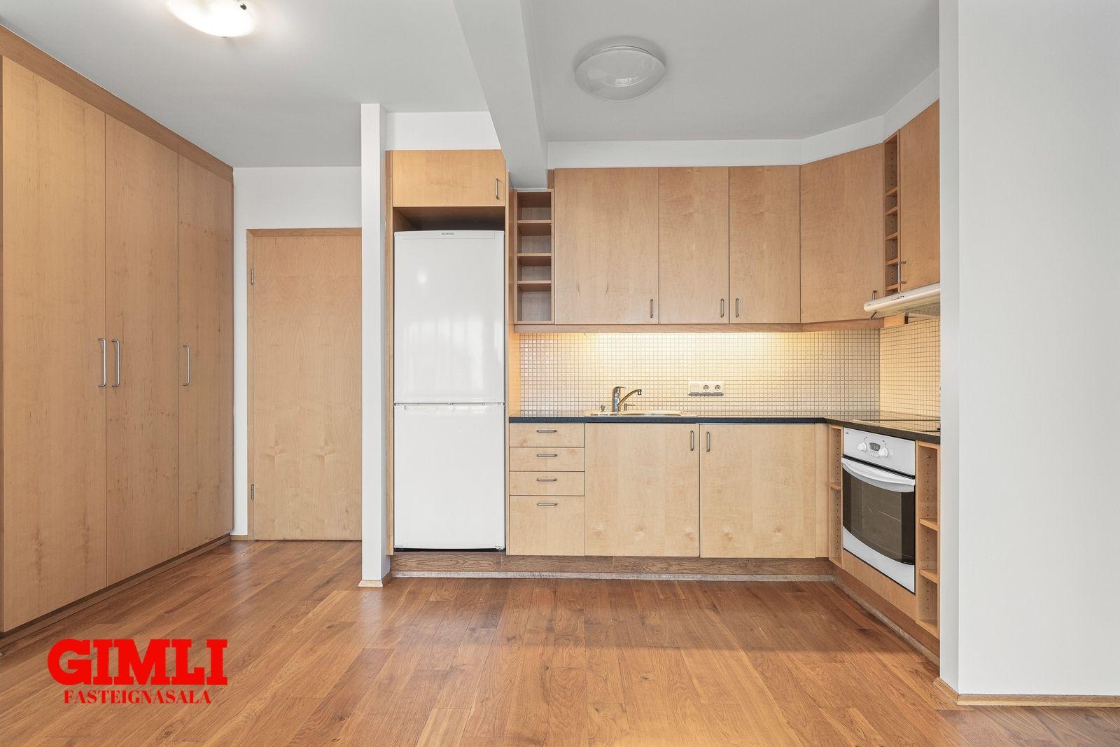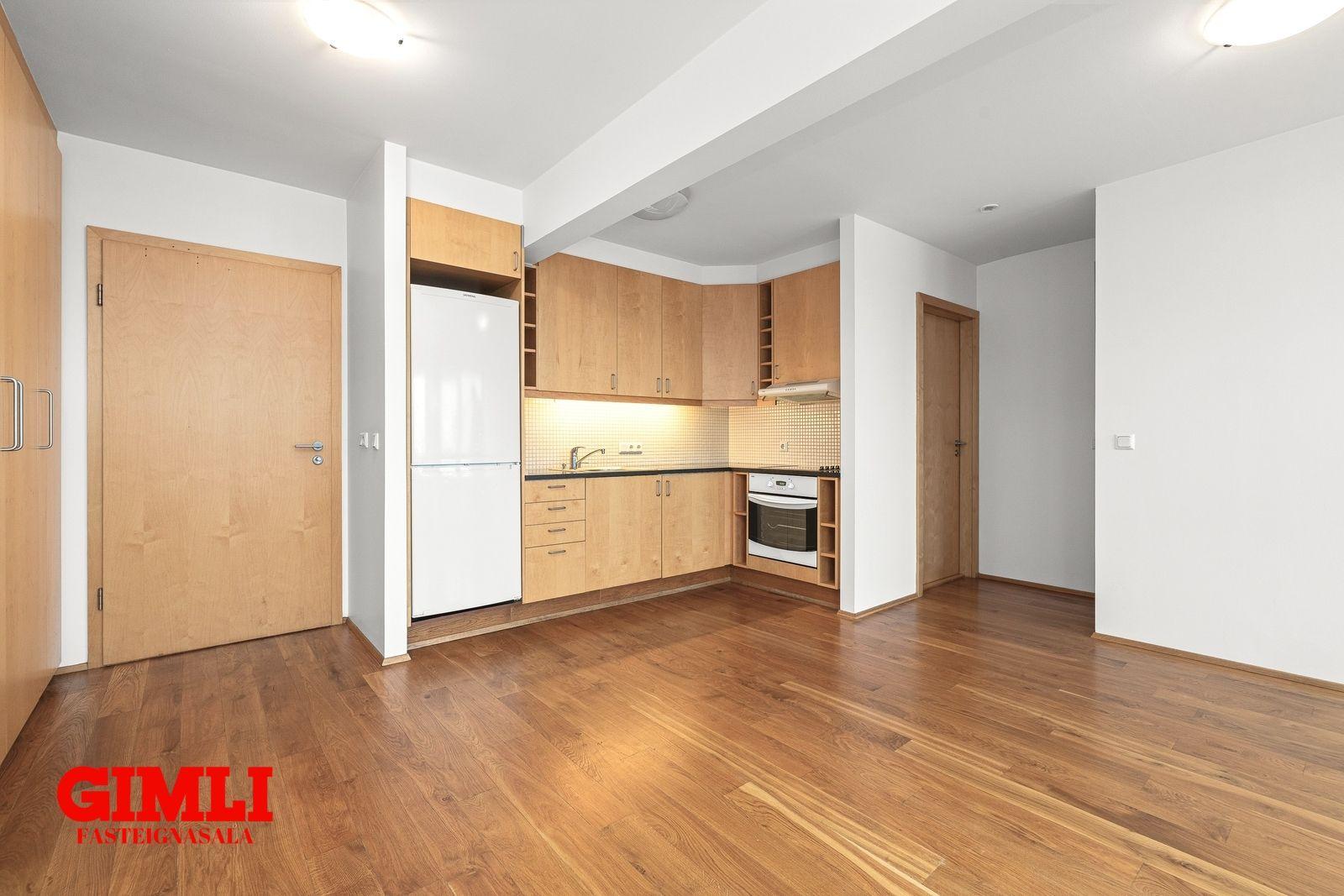 63,5 fm að meðtalinni 3,9 fm geymslu á jarðhæð. Íbúðin er í fjögurra hæða fjölbýli með lyftu. Verslun og þjónusta er á jarðhæð. Fallegar ljósar beyki innréttingar eru í íbúðinni og gegnheilt eikar parket er á gólfum. Tengi fyrir þvottavél er inni á baðherbergi en einnig er sameiginlegt þvottahús á jarðhæð og þar er einnig hjóla- og vagnageymsla.