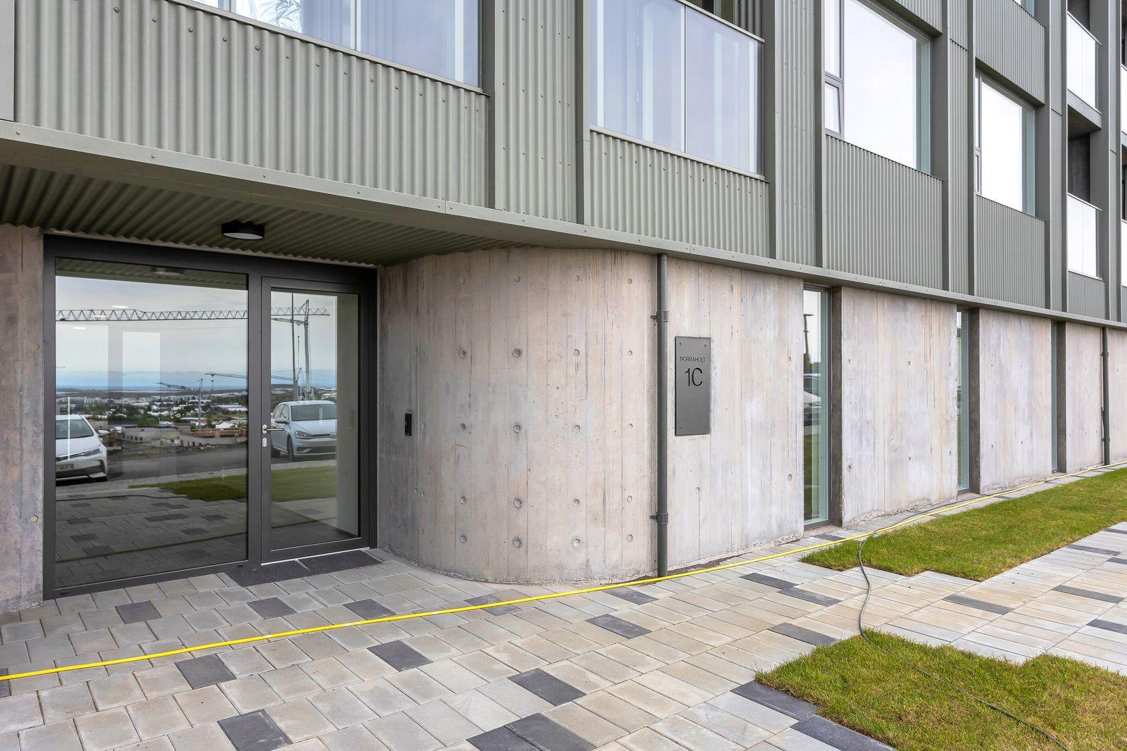 Fyrir utan kjallara sem er með sjónsteypu að utan og einangraður að innan. Þak er viðsnúið, steypt með halla, tvöfalt lag er af eldsoðnum tjörupappa, einangrað ofan á plötu og ferging. Svalir eru með steyptu yfirborði eða flísalagðar með flísahellum. Svalahandrið eru úr álprófílum og klæddir með öryggisgleri. Útiljós og rafmagnstengill eru á svölum. Gluggakerfi íbúða er frá Húsasmiðjunni og er ál-tré. Inngangshurðir í stigaganga eru álhurðir. Sameiginleg lóð verður frágengin skv. teikningum lóðahönnuða. Snjóbræðsla er í helstu göngustígum á lóð.