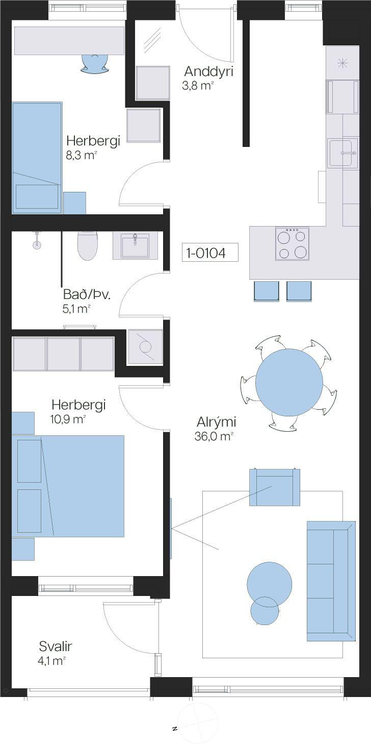 Samsetning íbúða er fjölbreytt en í húsunum eru 9 tveggja herbergja íbúðir, 27 þriggja herbergja og 9 fjögurra herbergja íbúðir ásamt rúmgóðum þakíbúðum.