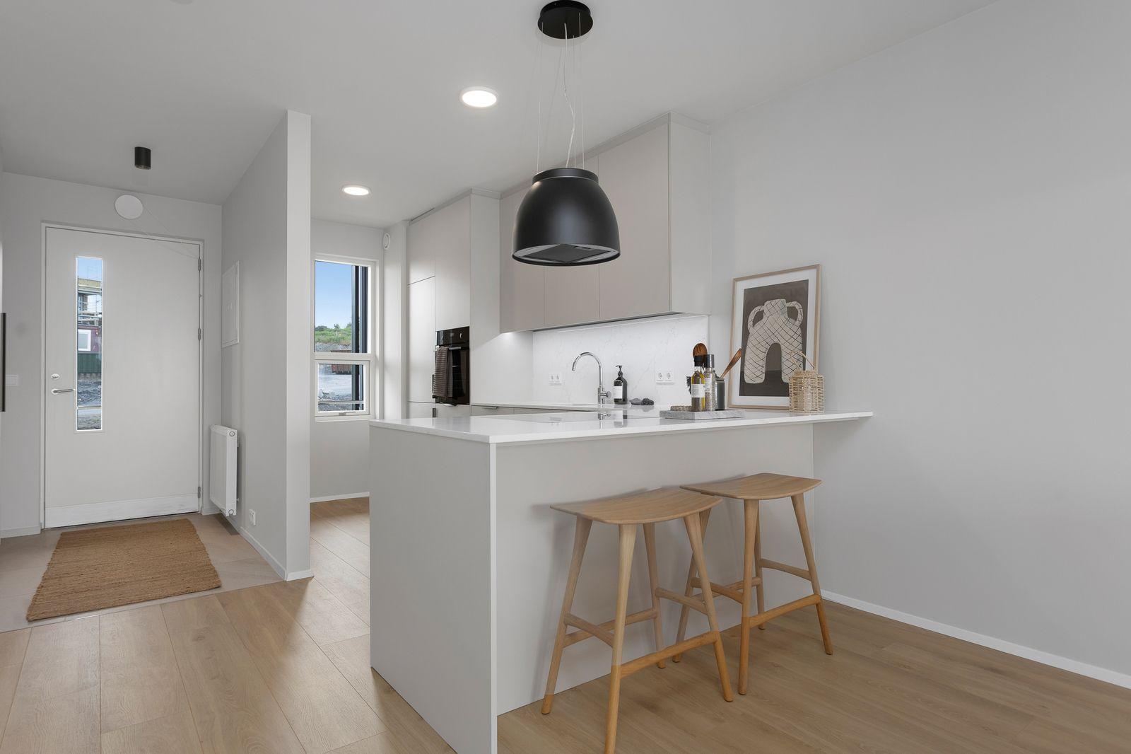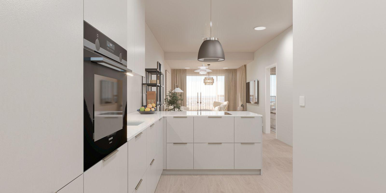 Íbúðir skilast fullbúnar með gólfefnum og með Quartz Lema White borðplötum, bæði inn í eldhúsi og inn á baðherbergi. Vönduð heimilistæki, innfeld tæki, ísskápur, frystir og uppþvottavél. Baðherbergin eru öll með innbyggðum blöndunartækjum.