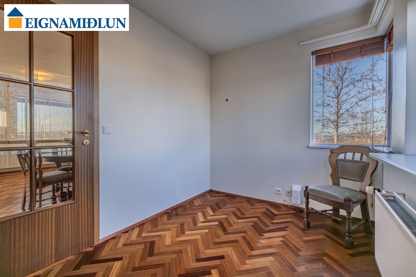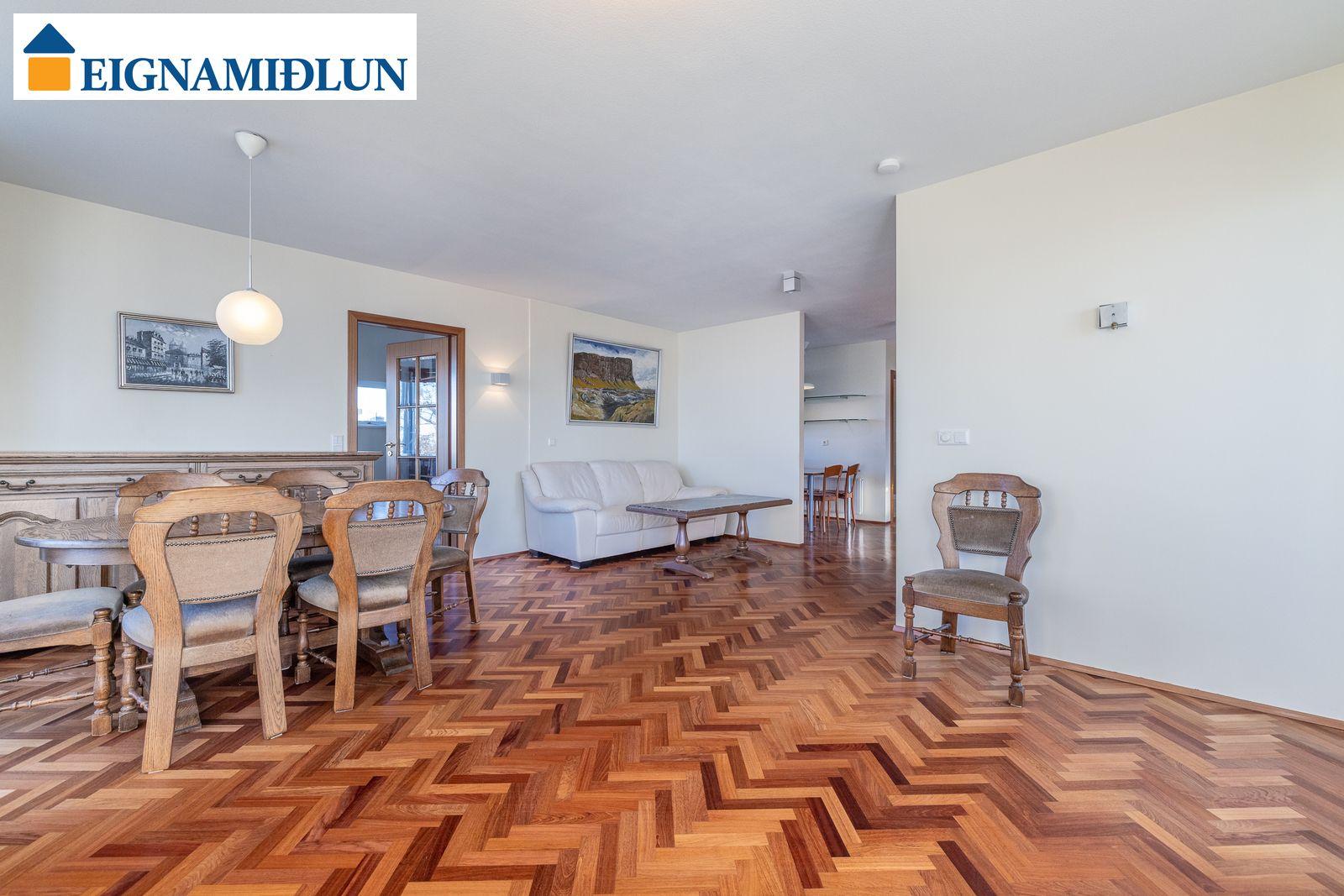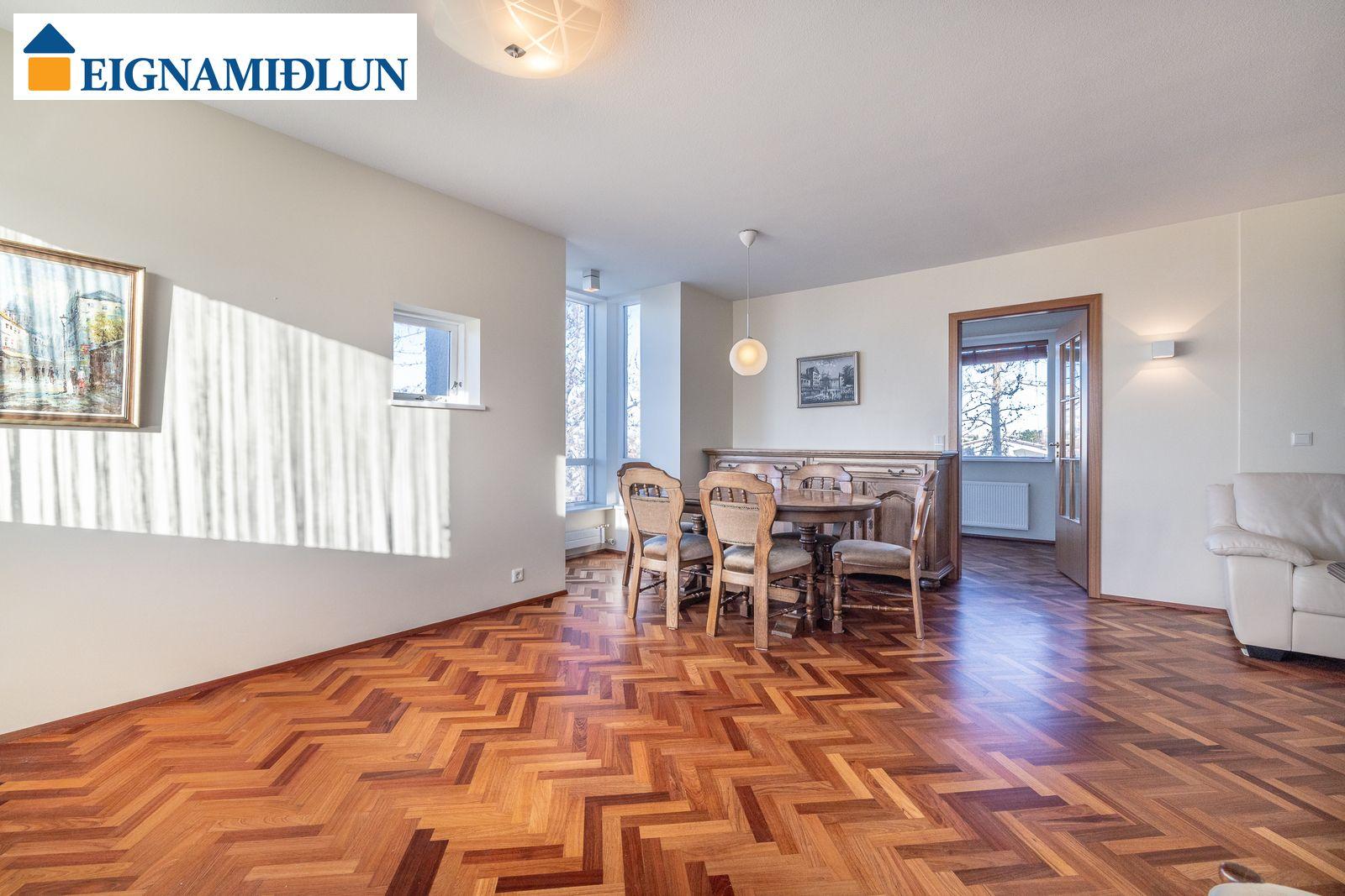 Sérlega vandað parket lagt í fiskibeinamynstur er á allri íbúðinni að baðherbergi og þvottahúsi frátöldu.