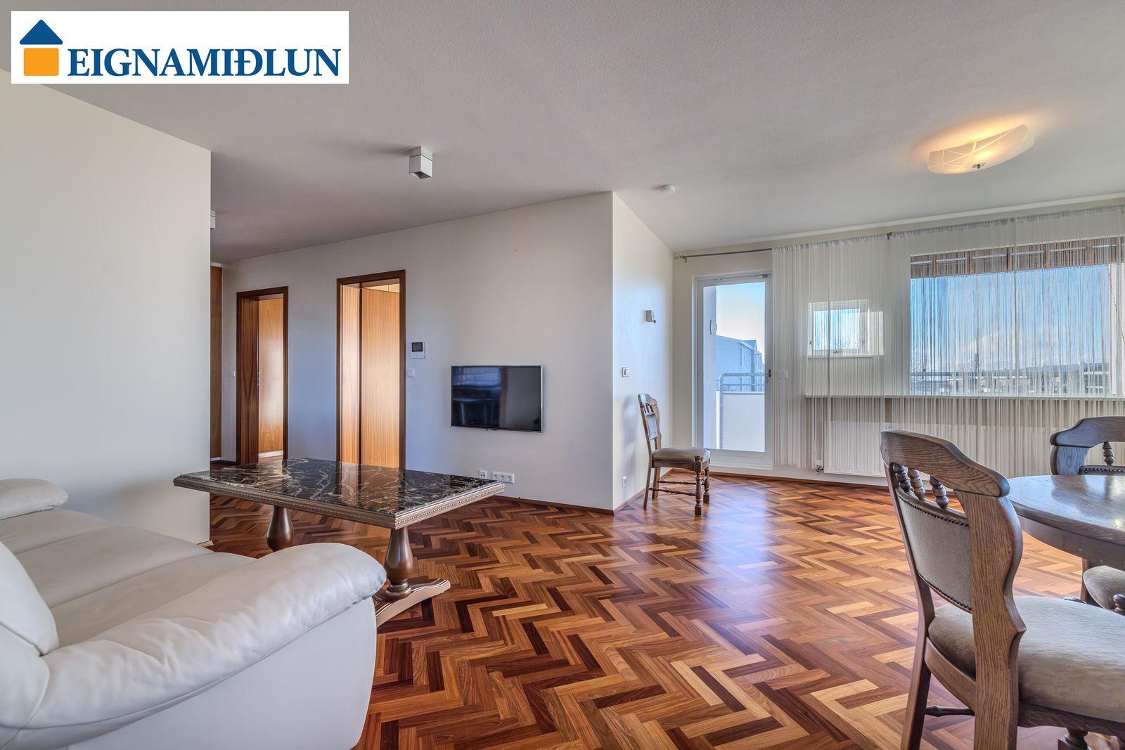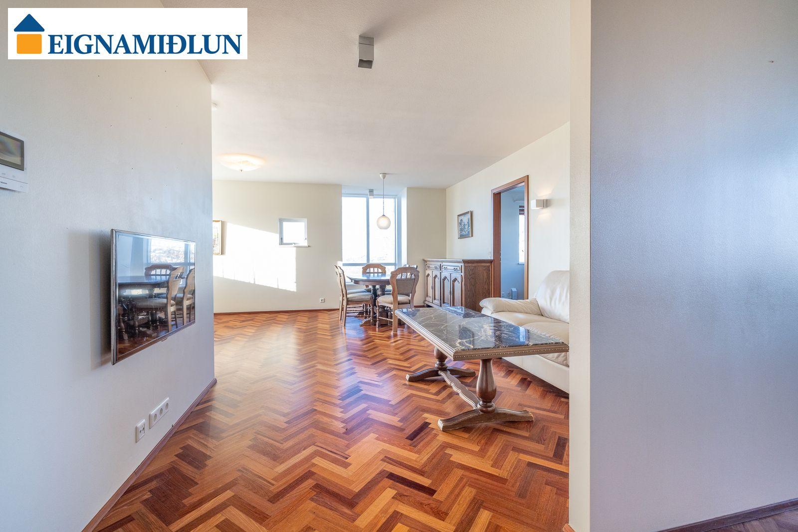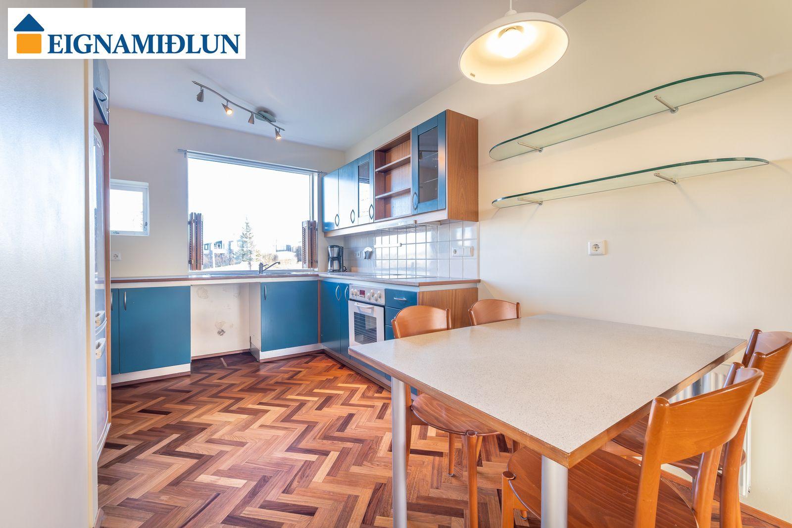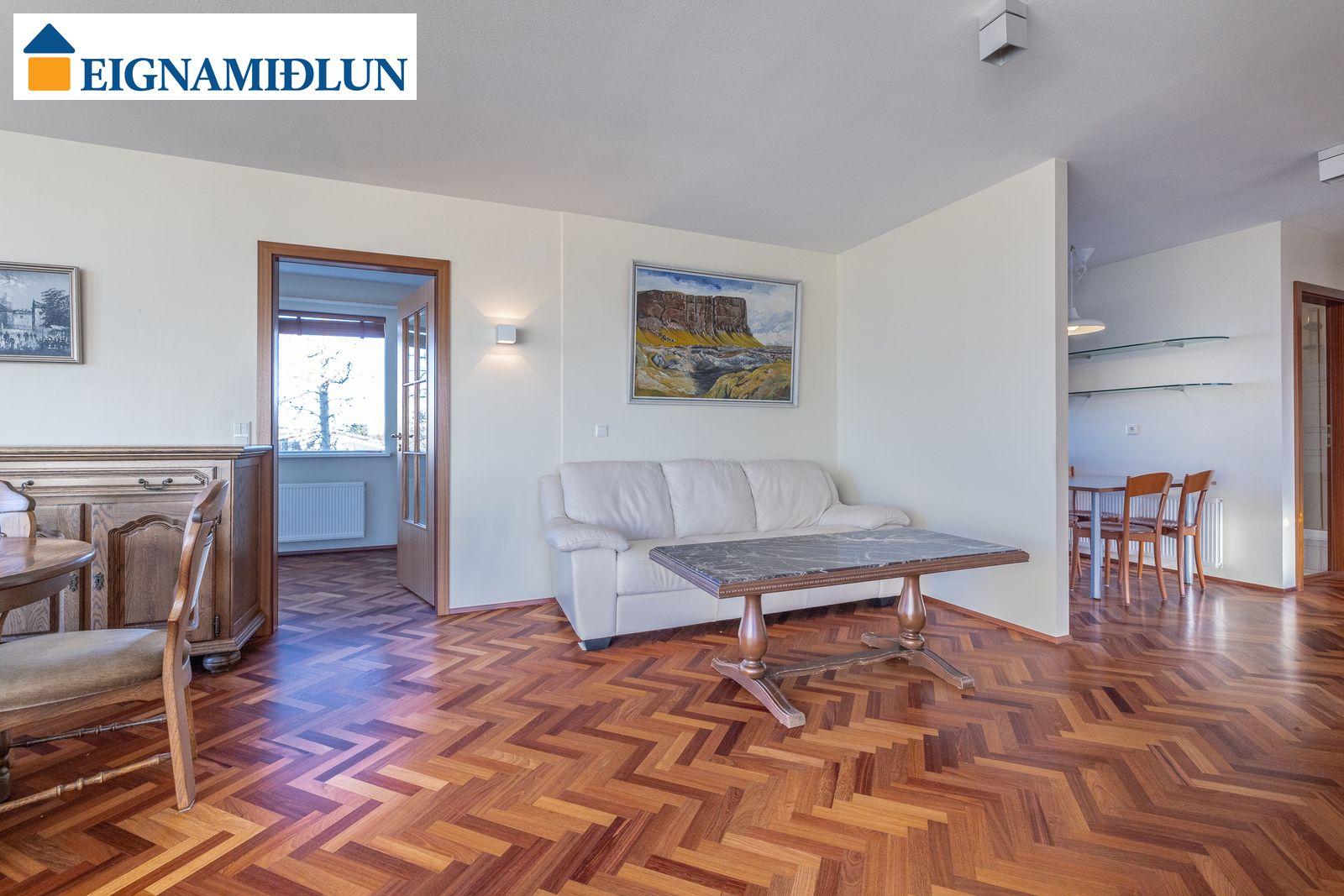 Sérlega vandað parket lagt í fiskibeinamynstur er á allri íbúðinni að baðherbergi og þvottahúsi frátöldu.