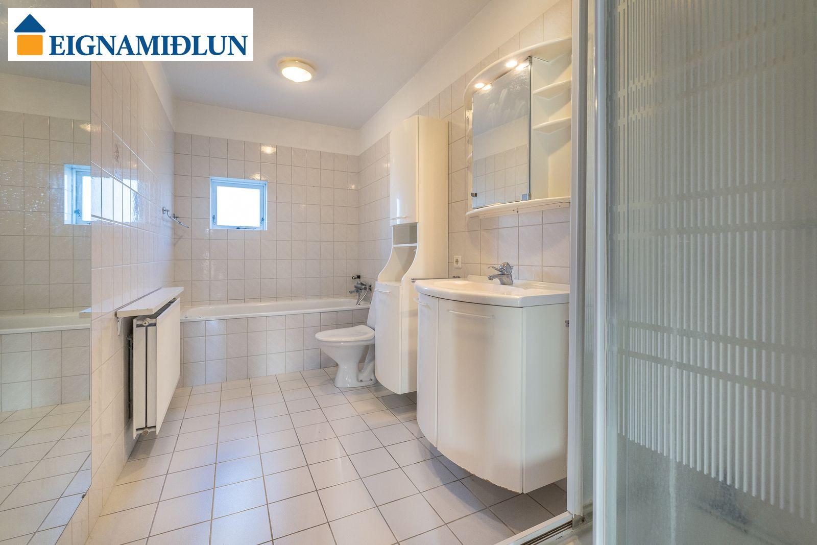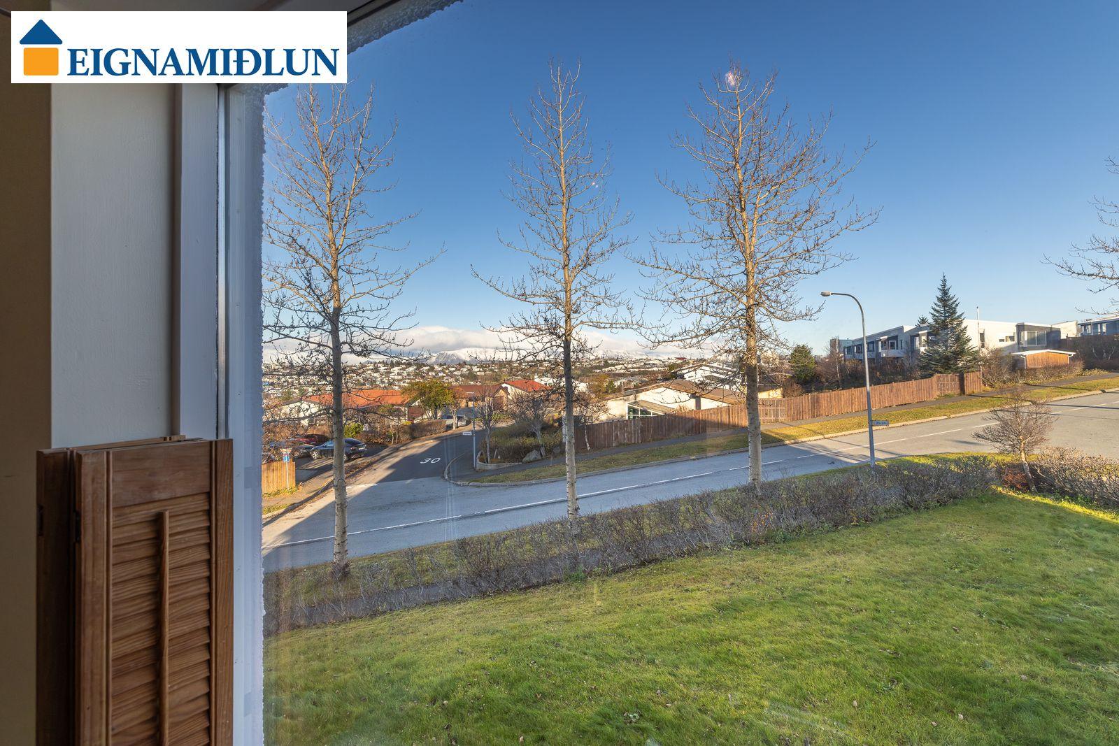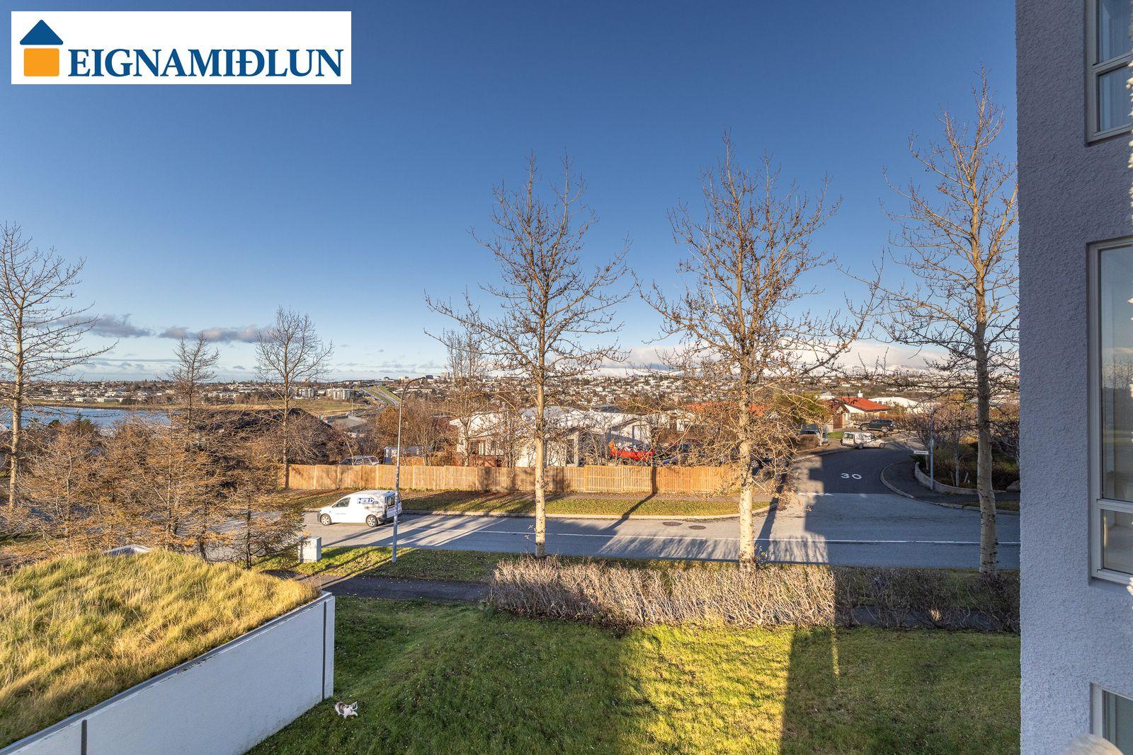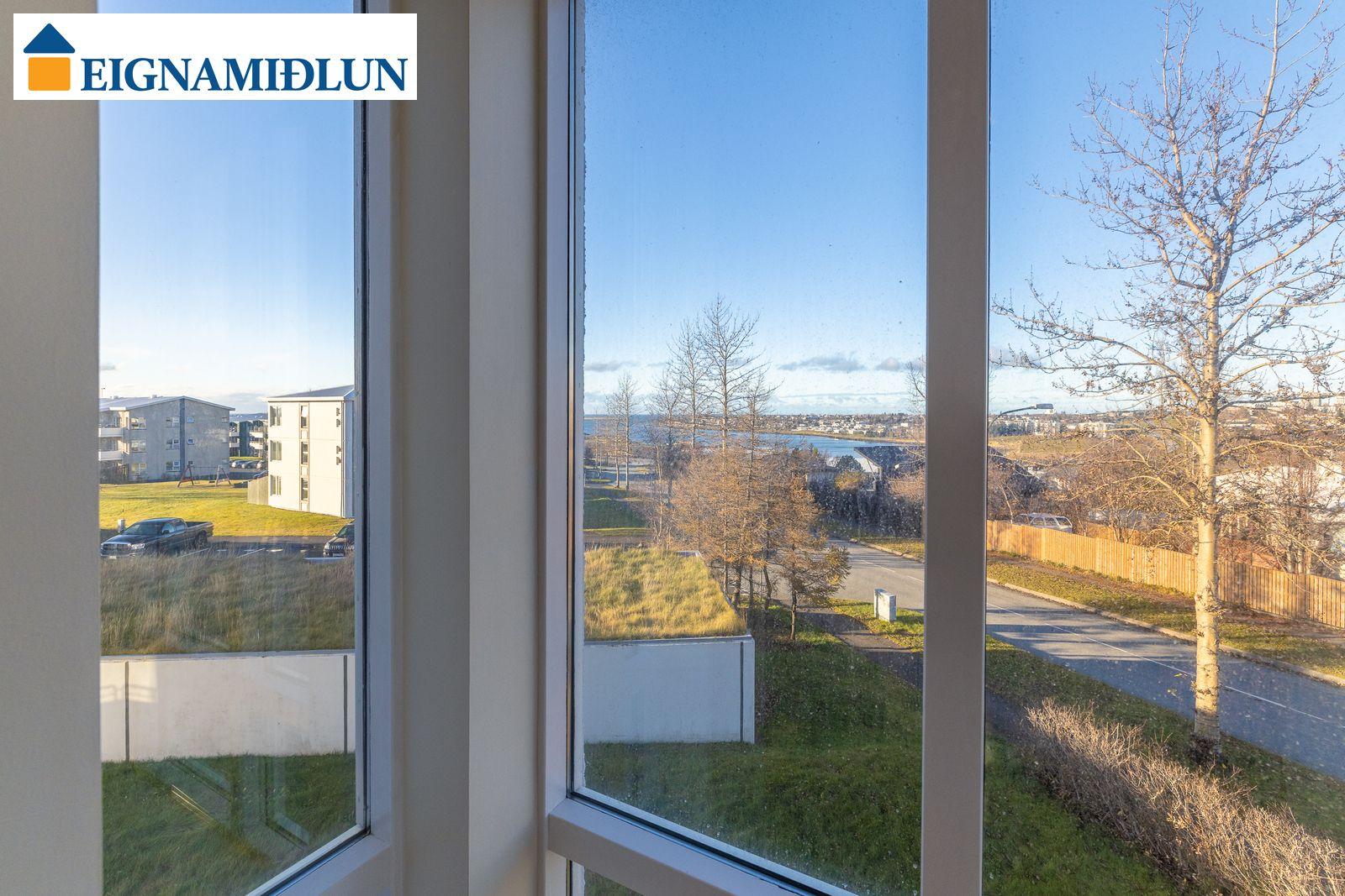 Stofa og borðstofa í björtu og vistlegu rými með stórum gluggum í tvær áttir og útgengi á rúmgóðar svalir til suð-vesturs. Gluggi til vesturs frá borðstofu með fallegu útsýni til sjávar. Hjónaherbergi með góðum fataskápum og snyrtiborði ásamt spegli. Barnaherbergin eru rúmgóð, annað þeirra með fataskáp. Baðherbergi er flísalagt, gólf og veggir, með sturtu og baðkari, innréttingu kringum vask auk skáps.