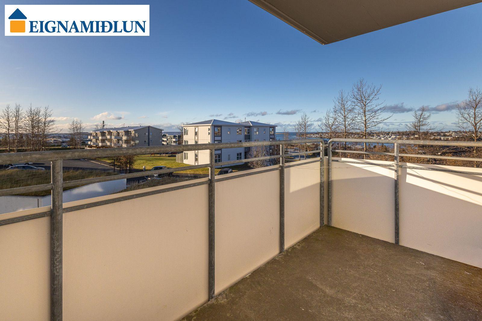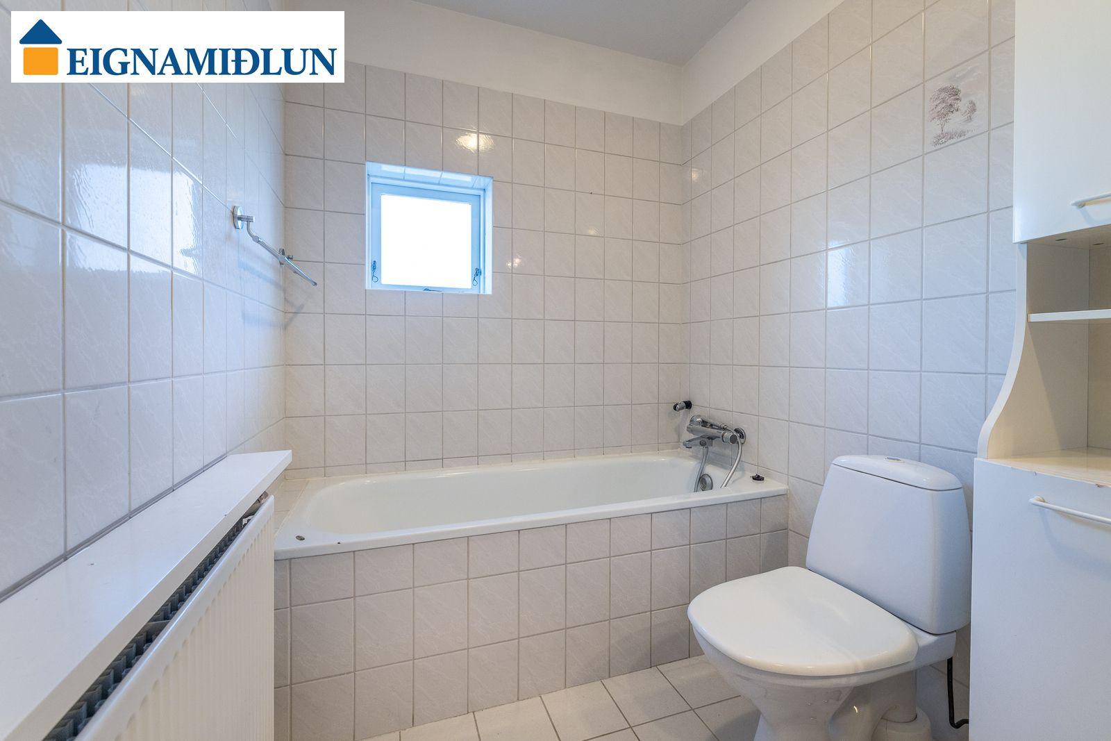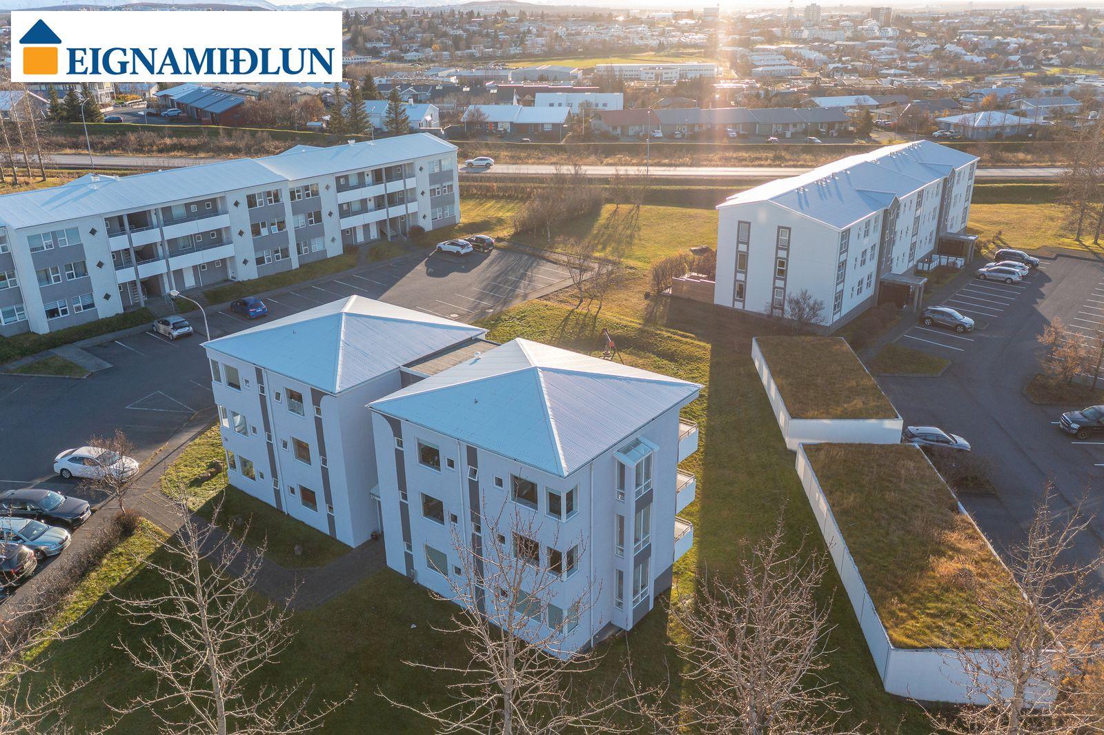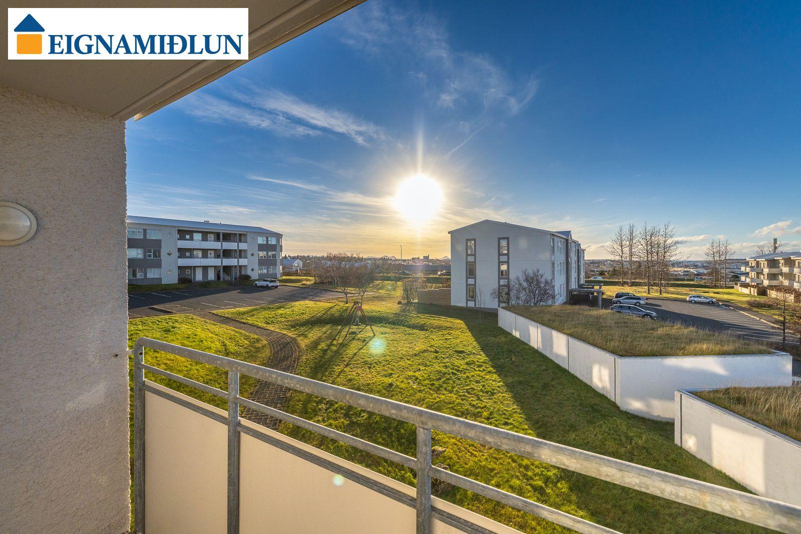 Stofa og borðstofa í björtu og vistlegu rými með stórum gluggum í tvær áttir og útgengi á rúmgóðar svalir til suð-vesturs. Gluggi til vesturs frá borðstofu með fallegu útsýni til sjávar. Hjónaherbergi með góðum fataskápum og snyrtiborði ásamt spegli. Barnaherbergin eru rúmgóð, annað þeirra með fataskáp. Baðherbergi er flísalagt, gólf og veggir, með sturtu og baðkari, innréttingu kringum vask auk skáps.