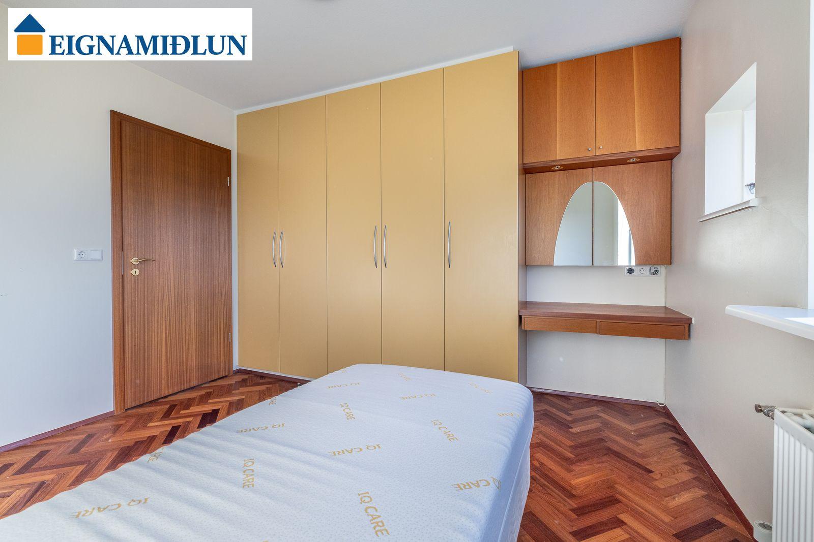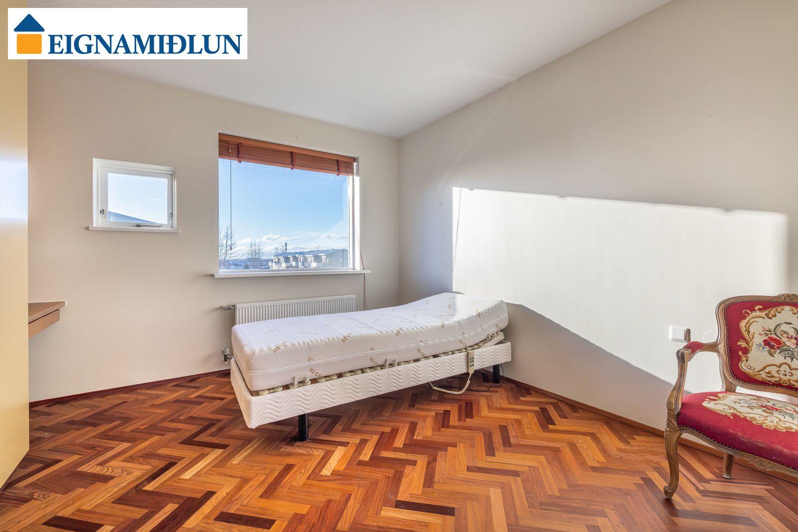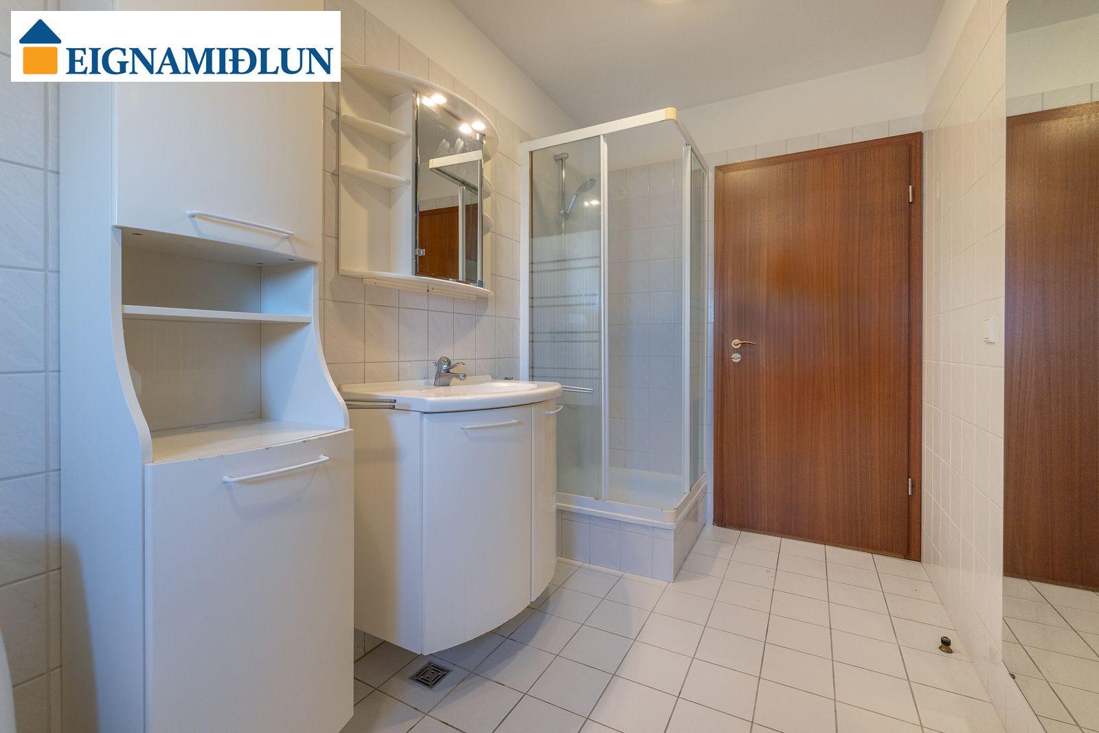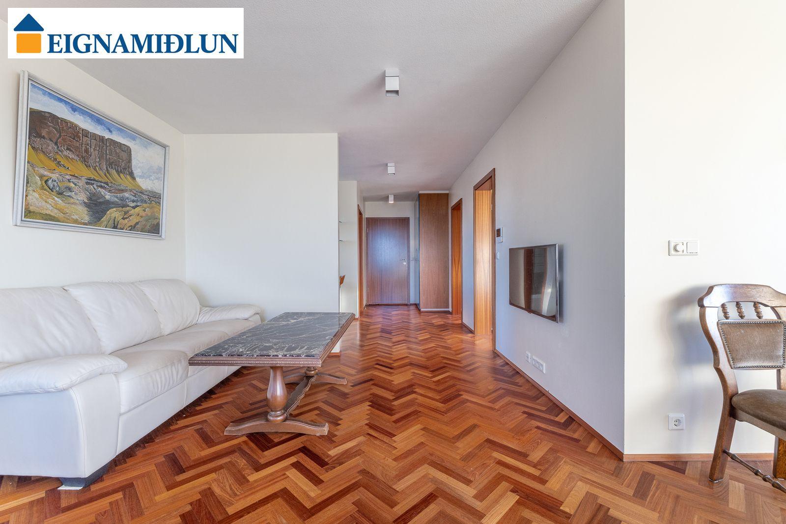 Stofa og borðstofa í björtu og vistlegu rými með stórum gluggum í tvær áttir og útgengi á rúmgóðar svalir til suð-vesturs. Gluggi til vesturs frá borðstofu með fallegu útsýni til sjávar. Hjónaherbergi með góðum fataskápum og snyrtiborði ásamt spegli. Barnaherbergin eru rúmgóð, annað þeirra með fataskáp. Baðherbergi er flísalagt, gólf og veggir, með sturtu og baðkari, innréttingu kringum vask auk skáps.