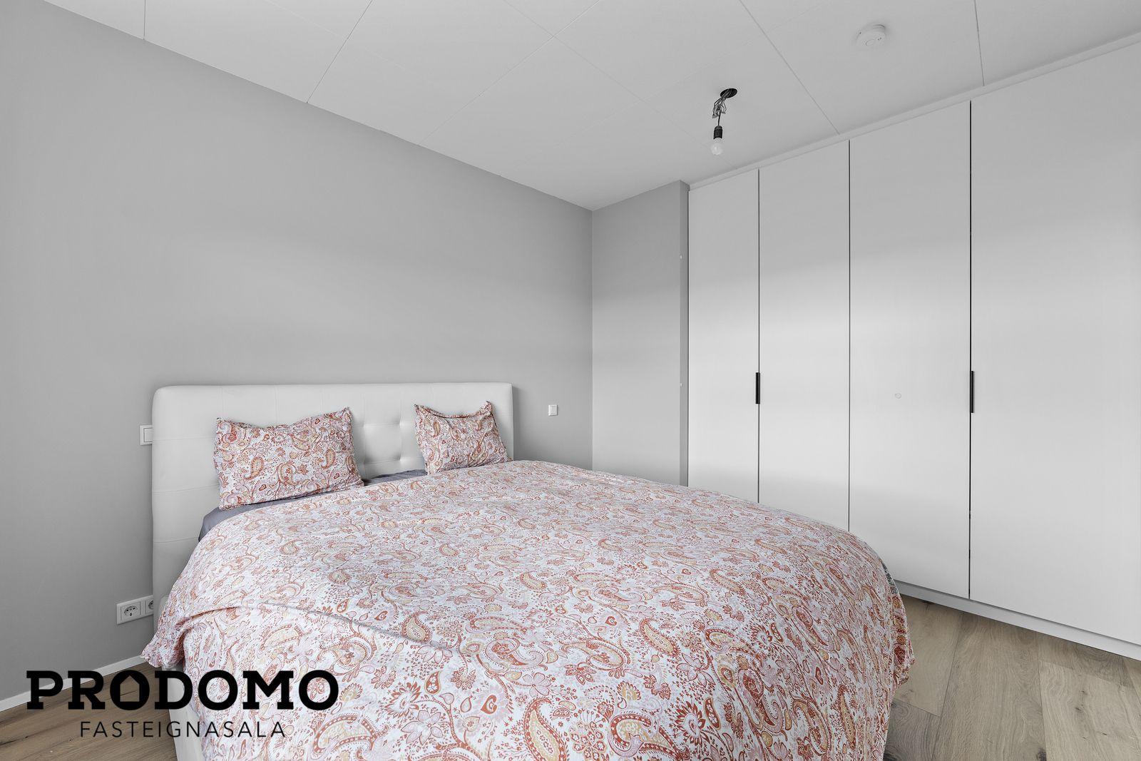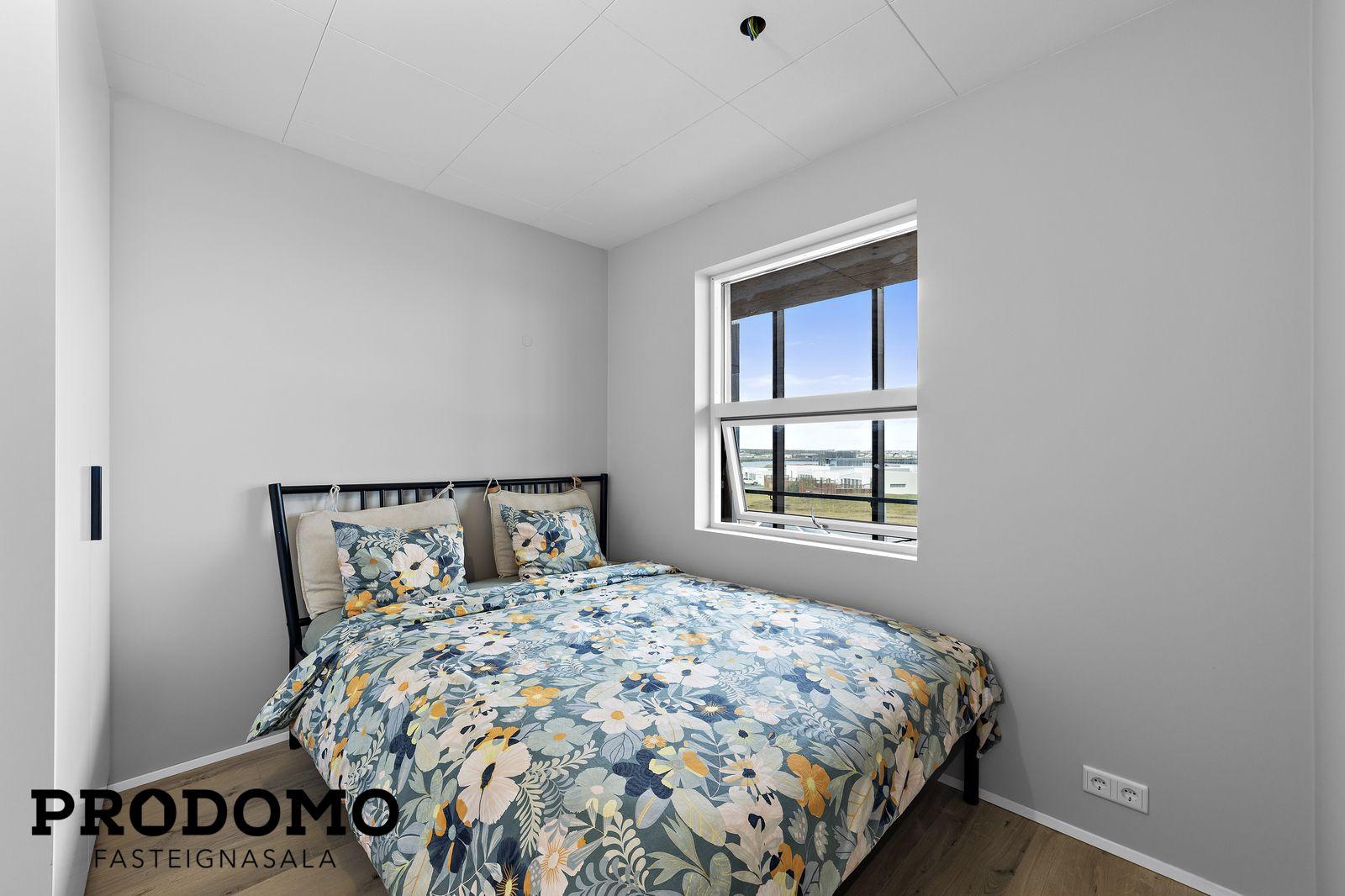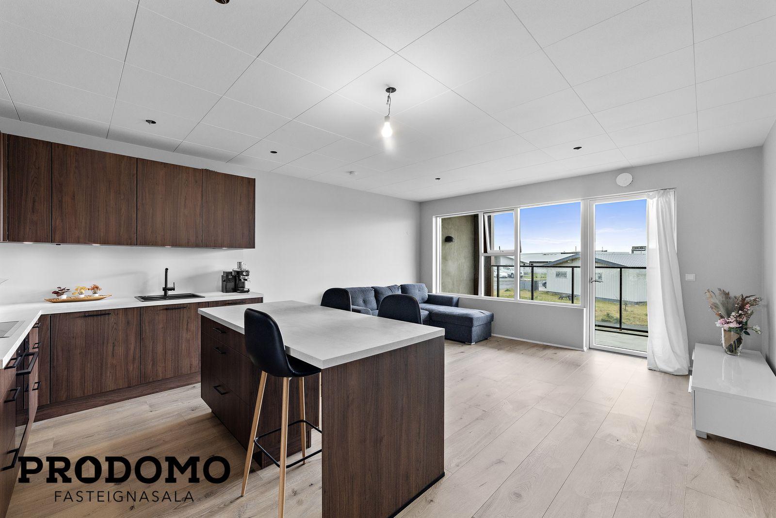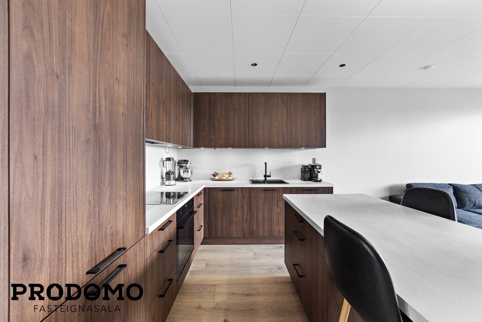 Vel skipulögð íbúð með sérsmíðuðum innréttingum. Alrými íbúðarinnar er opið og bjart. Gólfhiti er í eigninni. Henni fylgir merkt stæði, búið er að leggja fyrir rafhleðslu auk þess sem tvær hleðslustöðvar eru á lóð.