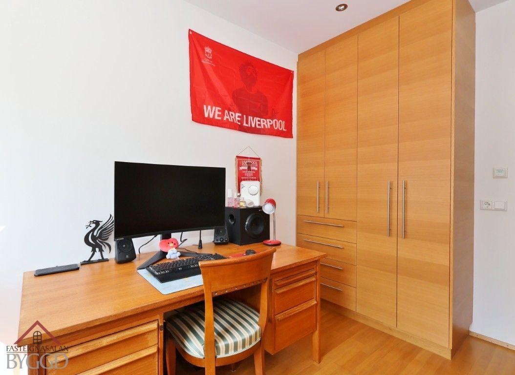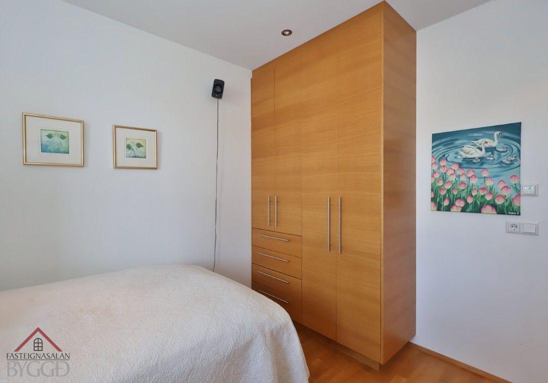 Svefnherbergin eru fjögur, öll með parketi á gólfi og sérsmíðuðum spónlögðum eikar fataskápum. Eitt herbergið er skráð sem geymsla á teikningu.