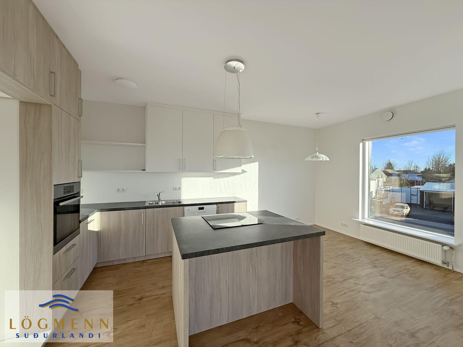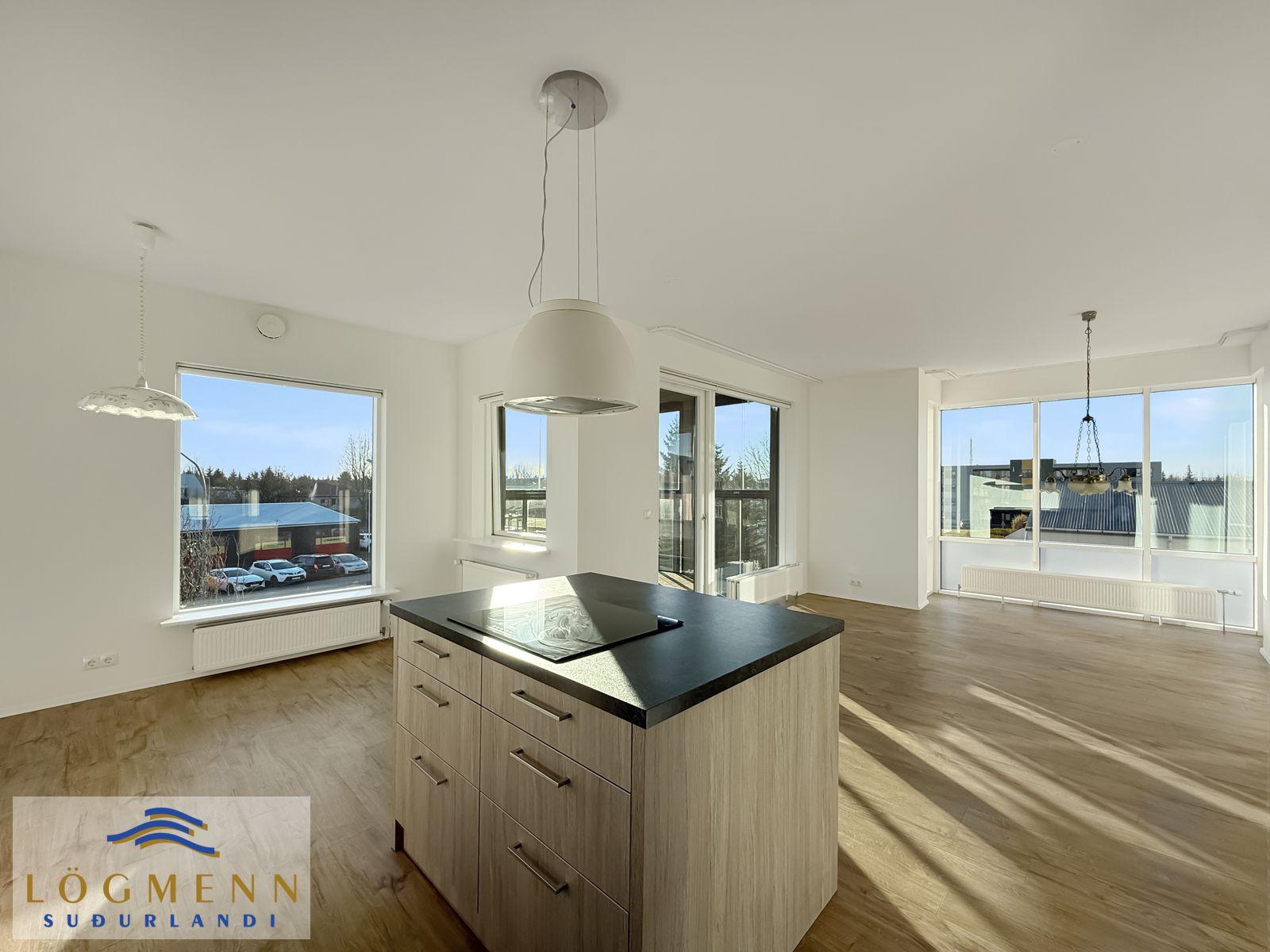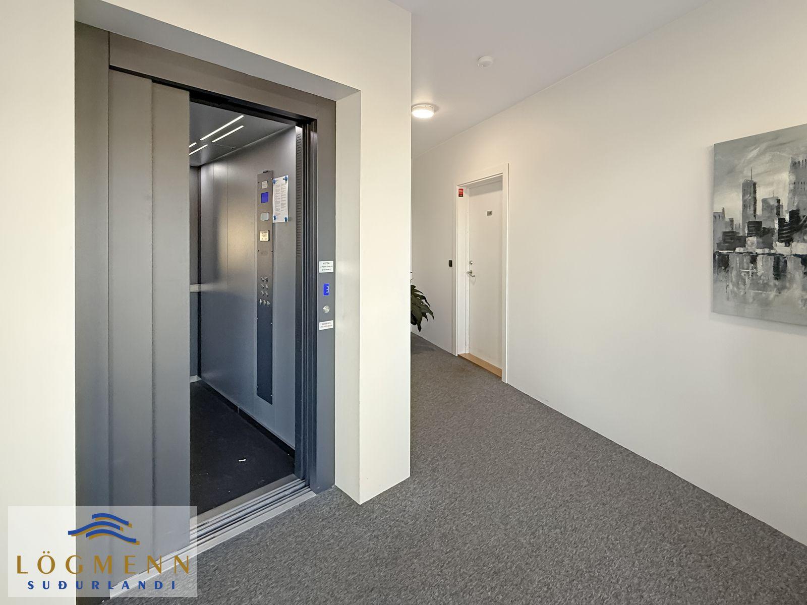 Um er að ræða 124,9 fm. íbúð á 3 hæð í nýlegu fjölbýlishúsi fyrir 55 ára og eldri. Stutt er í margvíslega þjónustu s.s. matvöruverslanir, apótek, bakarí, bensínstöð, tryggingastofnun og sjúkrahúsið. Í húsinu er aðsetur félags eldri borgara hvar magvísleg þjónusta og afþreying er í boði. Einnig er Árblik sem er dagdvöl sveitafélagsins þar með aðsetur. Íbúðin er fullbúin að innan. Að innan skiptist íbúðin í anddyri, tvö svefnherbergi, þar af annað þeirra með fataherbergi, baðherbergi, þvottahús, stofu og eldhús. Útgengt er úr stofu á svalir með svalalokun. Bílastæði í bílakjallara fylgir eigninni. Hleðslueining er í bílastæði fyrir rafmagnsbíl.