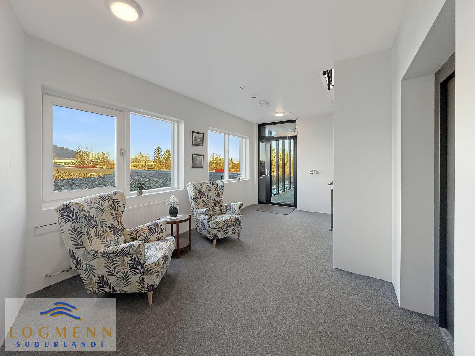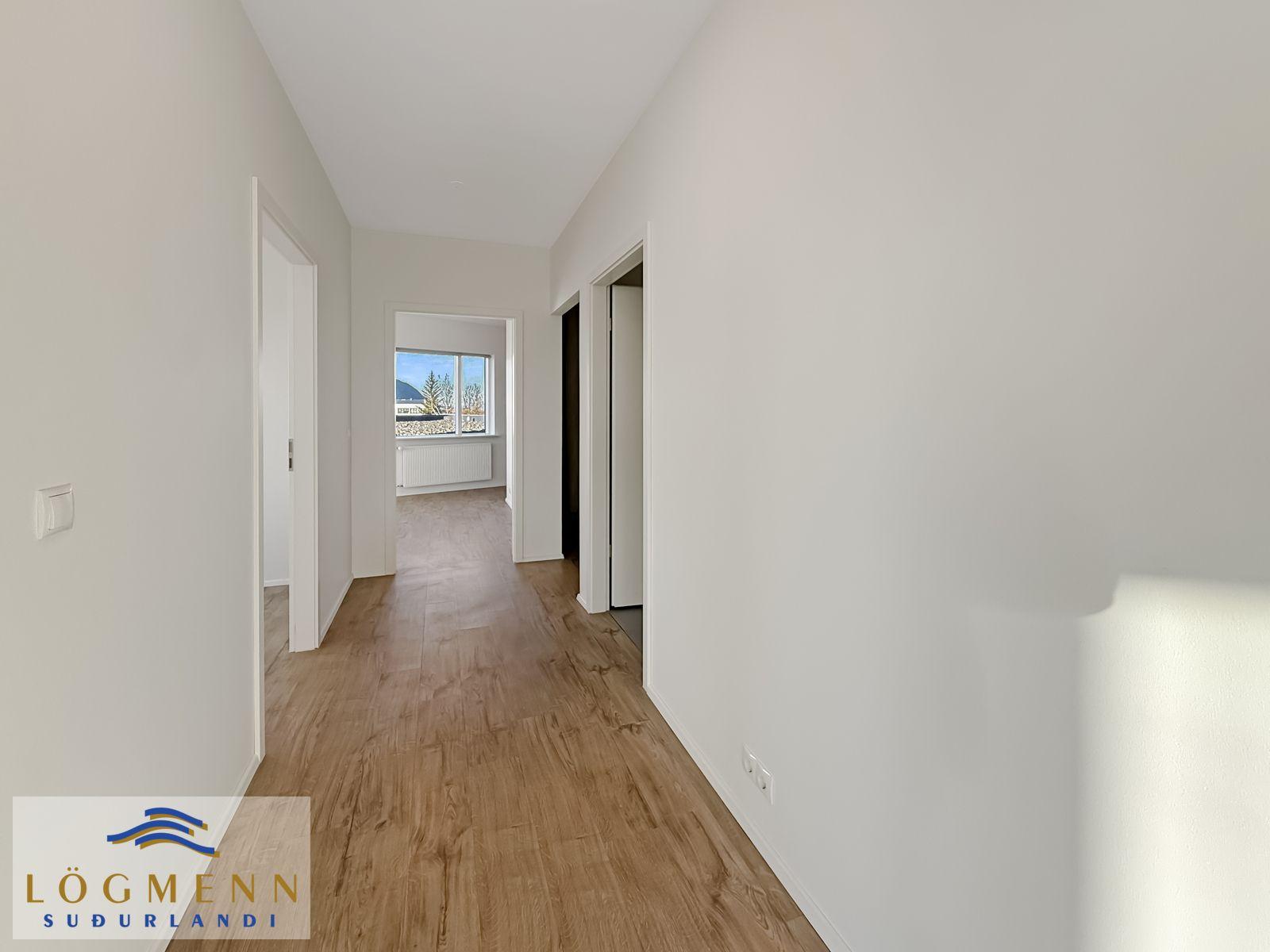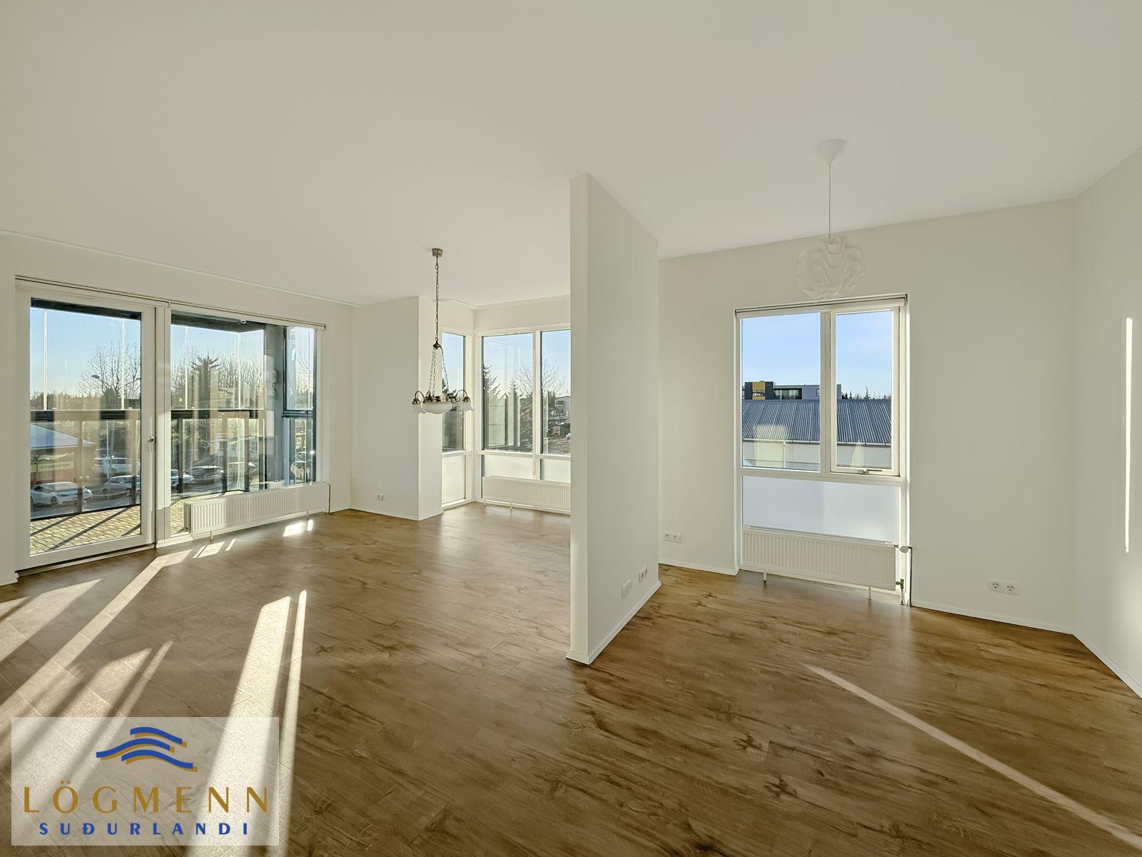 Um er að ræða 124,9 fm. íbúð á 3 hæð í nýlegu fjölbýlishúsi fyrir 55 ára og eldri. Stutt er í margvíslega þjónustu s.s. matvöruverslanir, apótek, bakarí, bensínstöð, tryggingastofnun og sjúkrahúsið. Í húsinu er aðsetur félags eldri borgara hvar magvísleg þjónusta og afþreying er í boði. Einnig er Árblik sem er dagdvöl sveitafélagsins þar með aðsetur. Íbúðin er fullbúin að innan. Að innan skiptist íbúðin í anddyri, tvö svefnherbergi, þar af annað þeirra með fataherbergi, baðherbergi, þvottahús, stofu og eldhús. Útgengt er úr stofu á svalir með svalalokun. Bílastæði í bílakjallara fylgir eigninni. Hleðslueining er í bílastæði fyrir rafmagnsbíl.