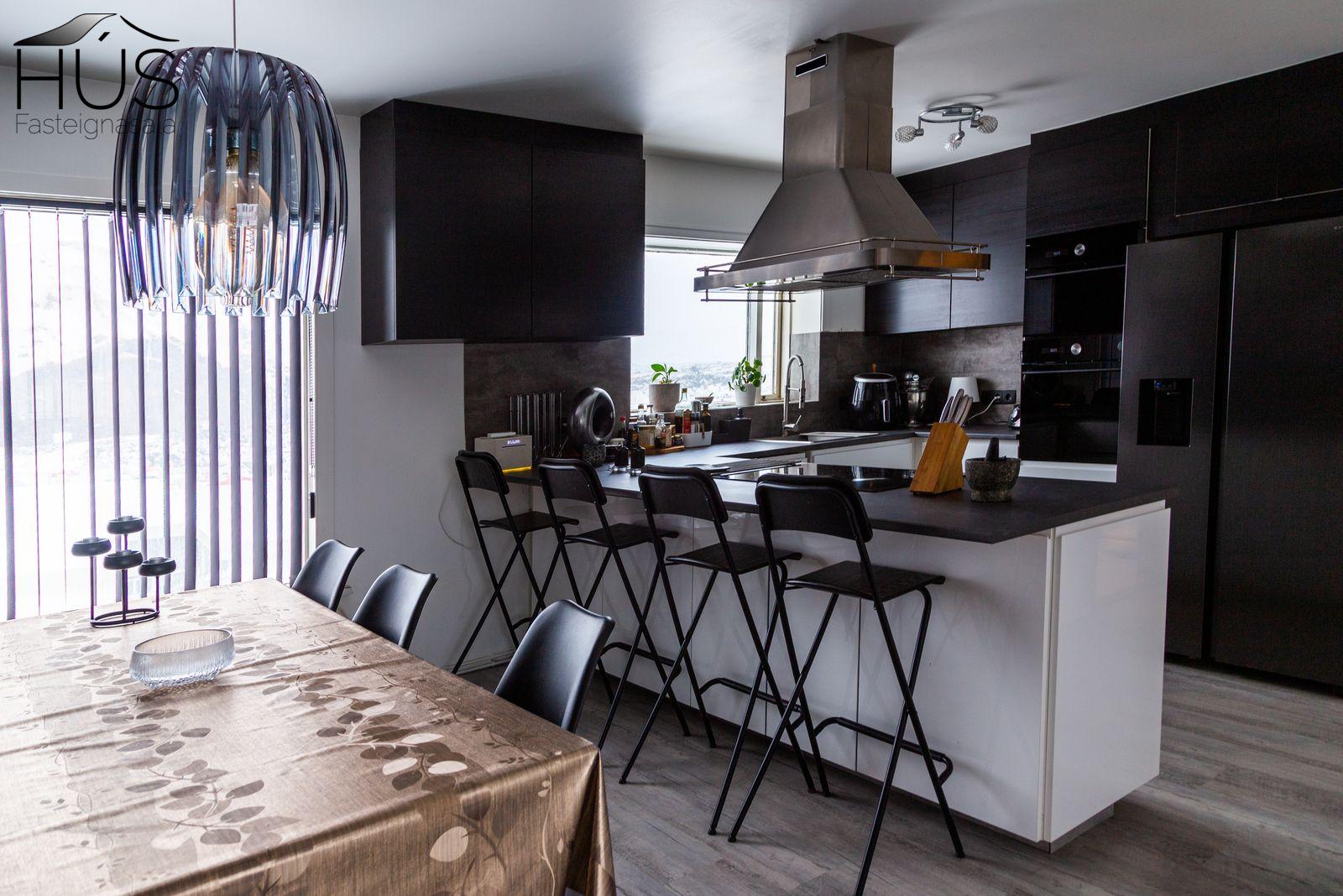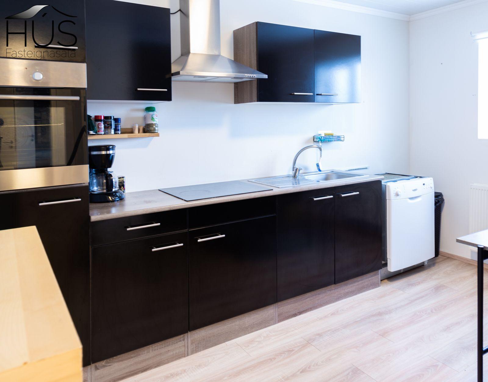 Eldhús: parket á gólfi, nýleg eldhús innrétting