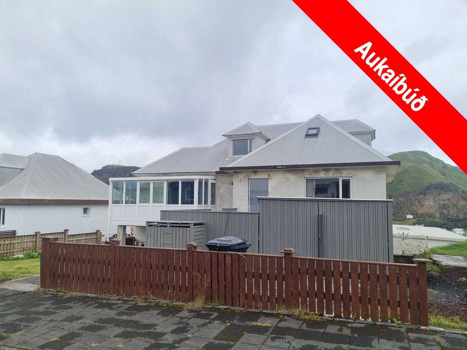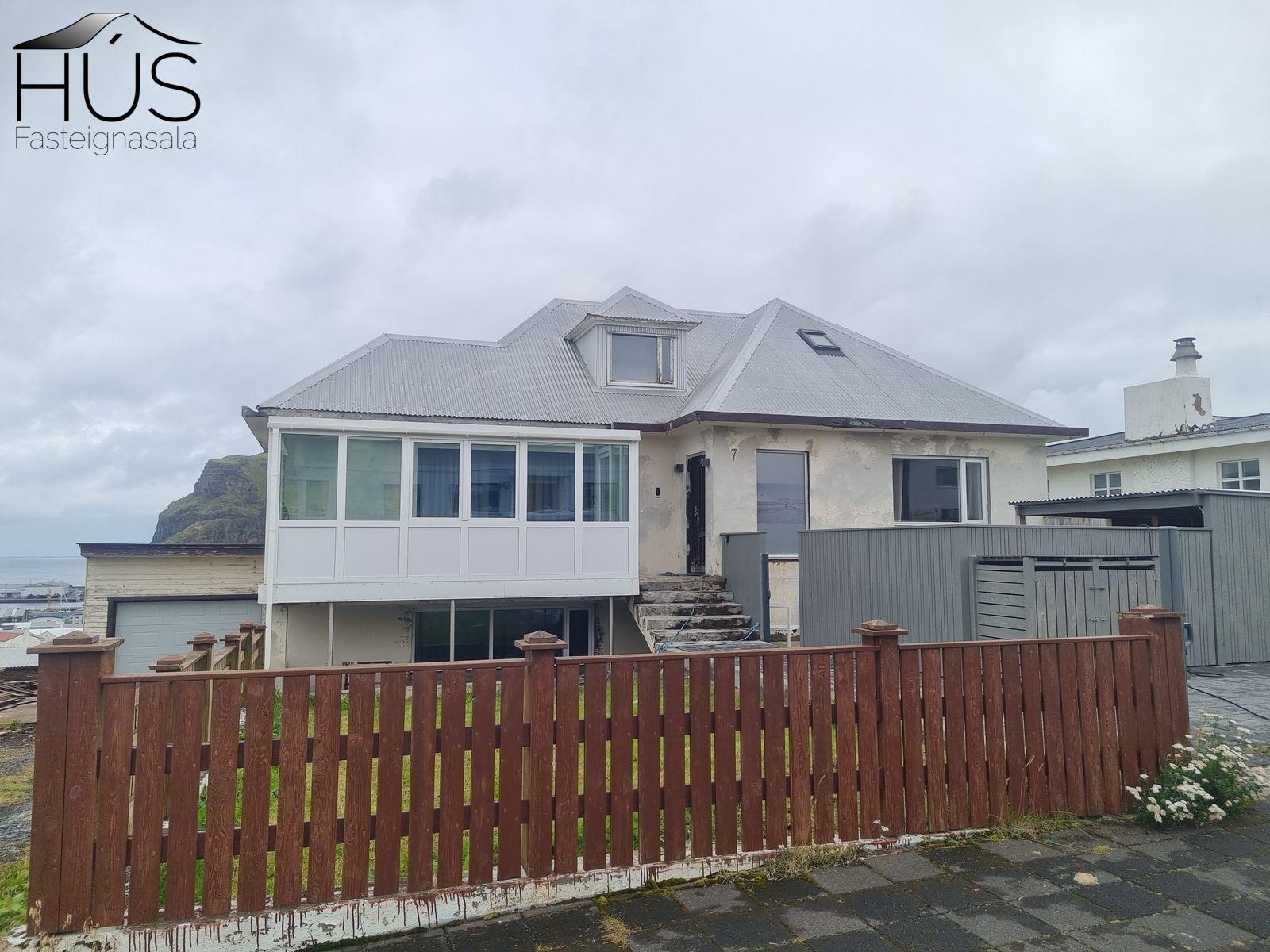 Halldóra Kristín Ágústsdóttir löggiltur fasteignasali sími 8611105- dora@husfasteign.is og Hús fasteignasala kynna í einkasölu: Sóleyjargötu 7 í Vestmannaeyjum. Húsið er byggt úr steini árið 1955 og er 313,5 m2 þar af er sér íbúð á neðri hæð sem gefur góðar leigutekjur og 27,6 m2 bílskúr sem er byggður árið 1970. Nýlegur 10,5 m2 sólskáli er ekki inn í skráðum m2 eignarinnar.