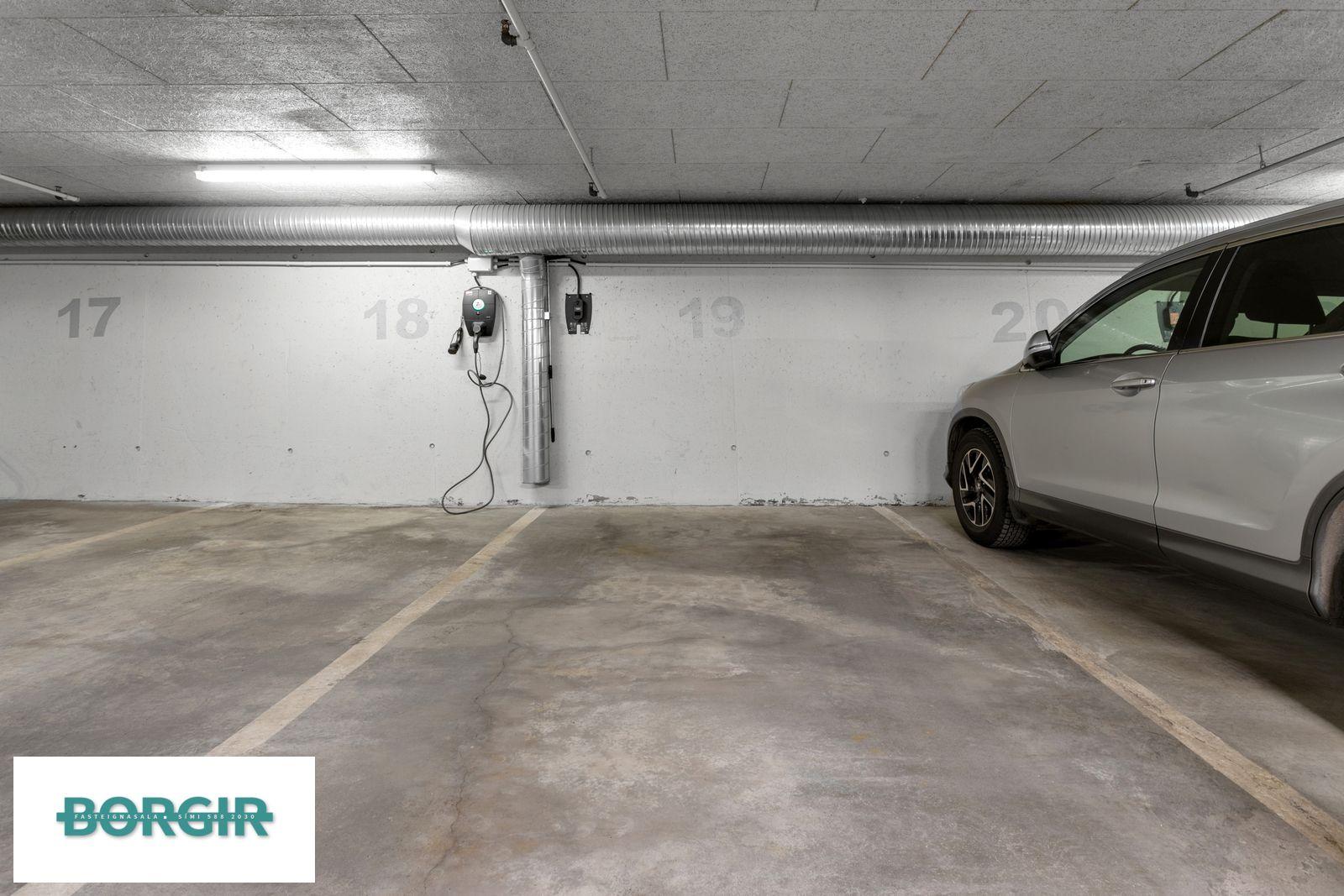 Búið er að leggja rafmagn fyrir hleðslustöð í bílastæði í bílageymslu.