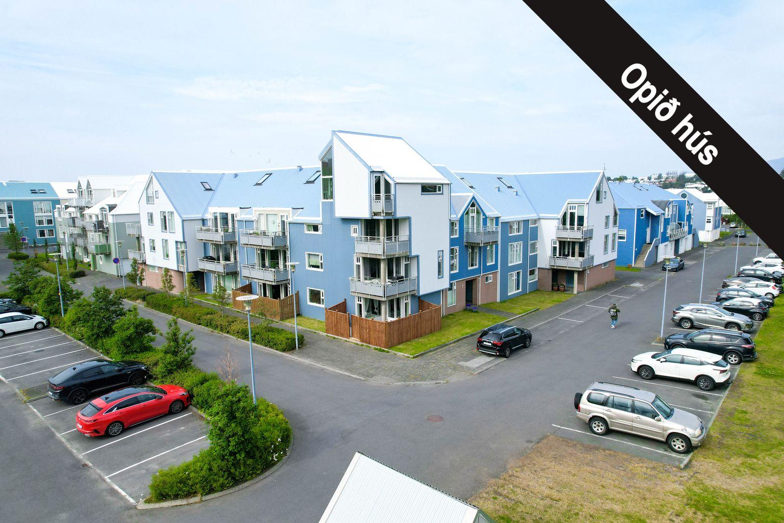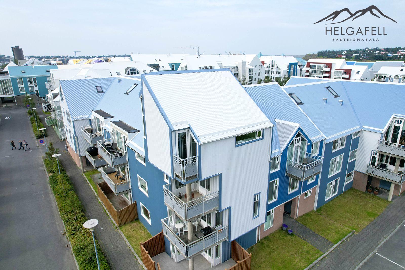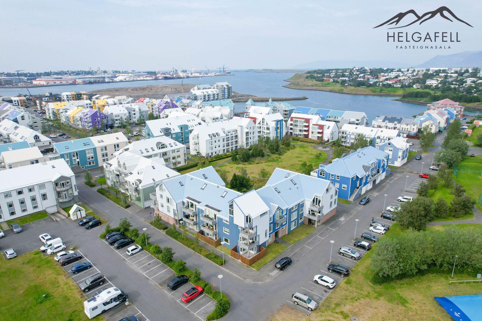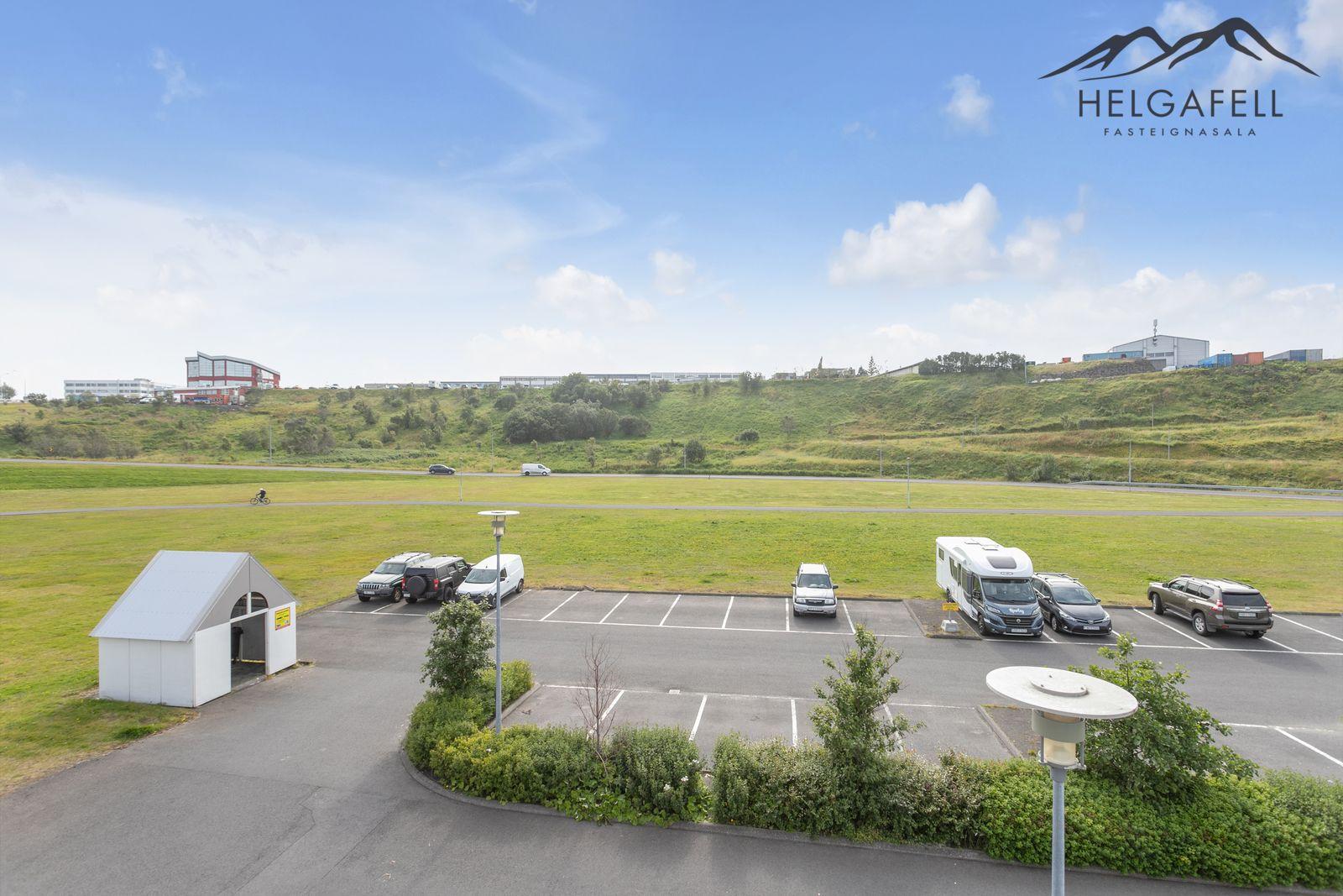 Lóðin: Sameiginleg 1806 fm. lóð. Aðgengi að húsinu er mjög gott og á henni eru 37 sameiginleg bílastæði, þ.a. tvö bílastæði fyrir fatlaða. Íbúðinni fylgir hlutdeild í sameiginlegum skrúðgarði að Evrópskri fyrirmynd sem er í skjólinu á milli húsanna en þar er gras, tré og göngustígar.
