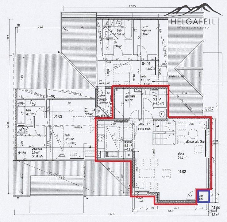 4 hæð (402 - 60.7 fm.): Stofu / borðstofu / sjónvarpskrók, eldhús, geymslu og salerni.