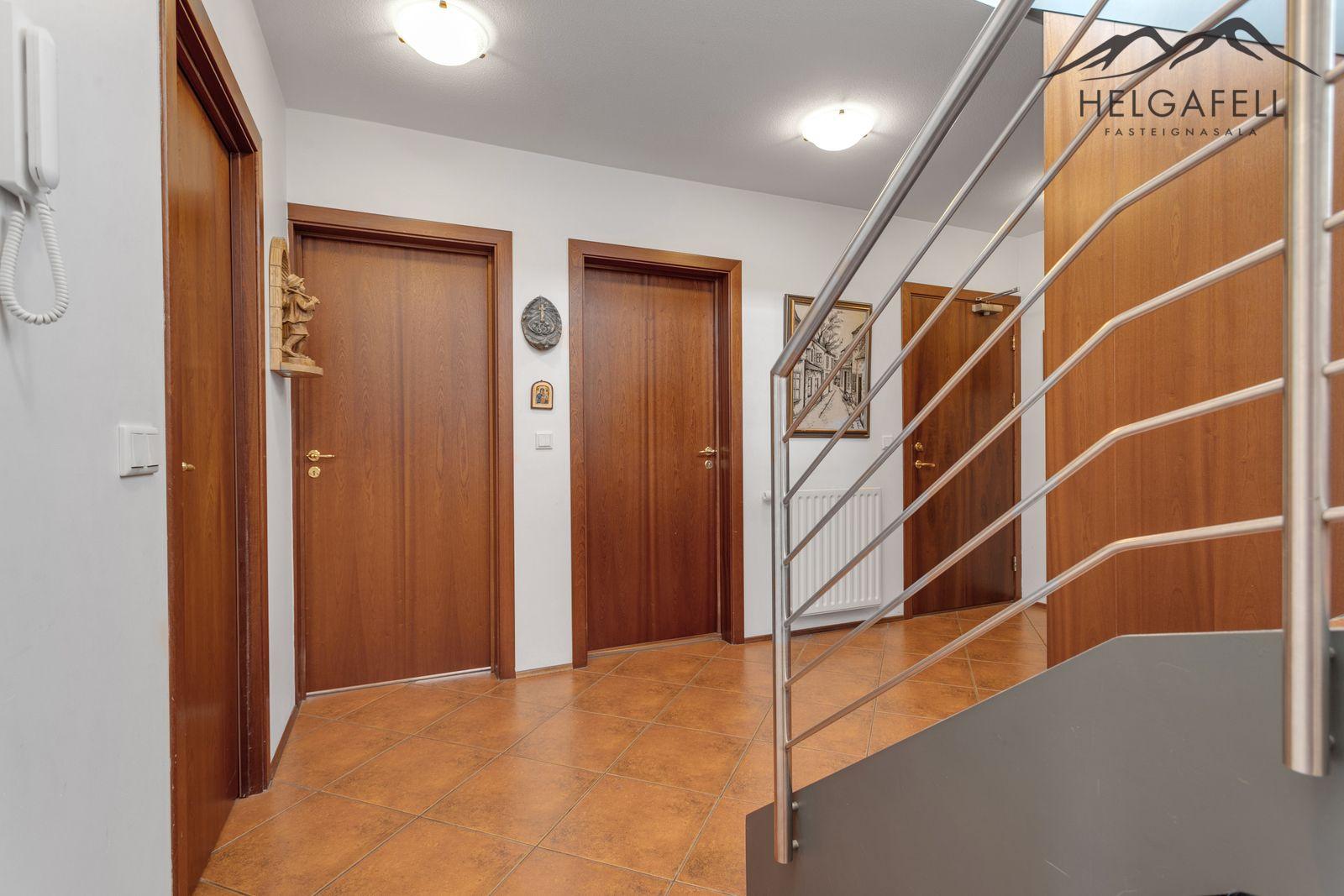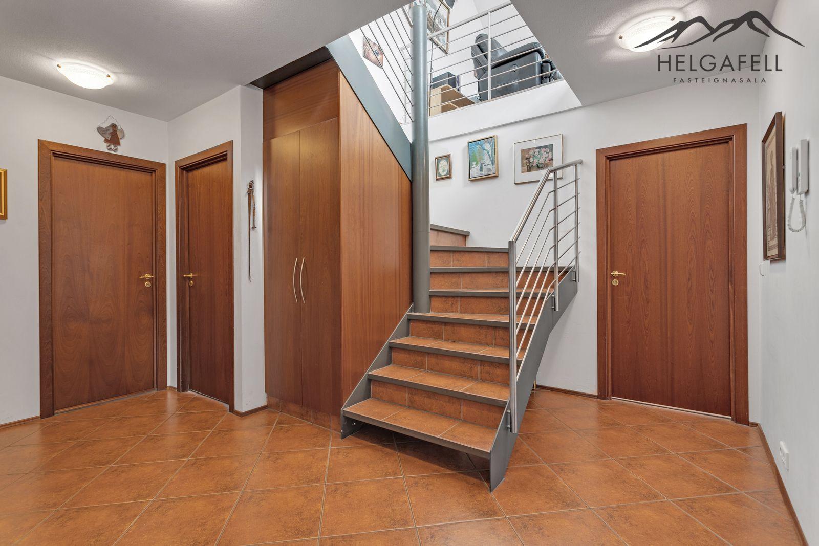 Nánari lýsing á eign:Forstofa / hol: Komið er inn í rúmgóða forstofu með innbyggðum fataskáp, flísar á gólfi.