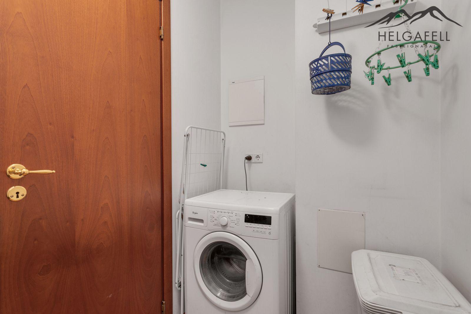 Þvottahús: Inn af forstofu, flísar á gólfi.