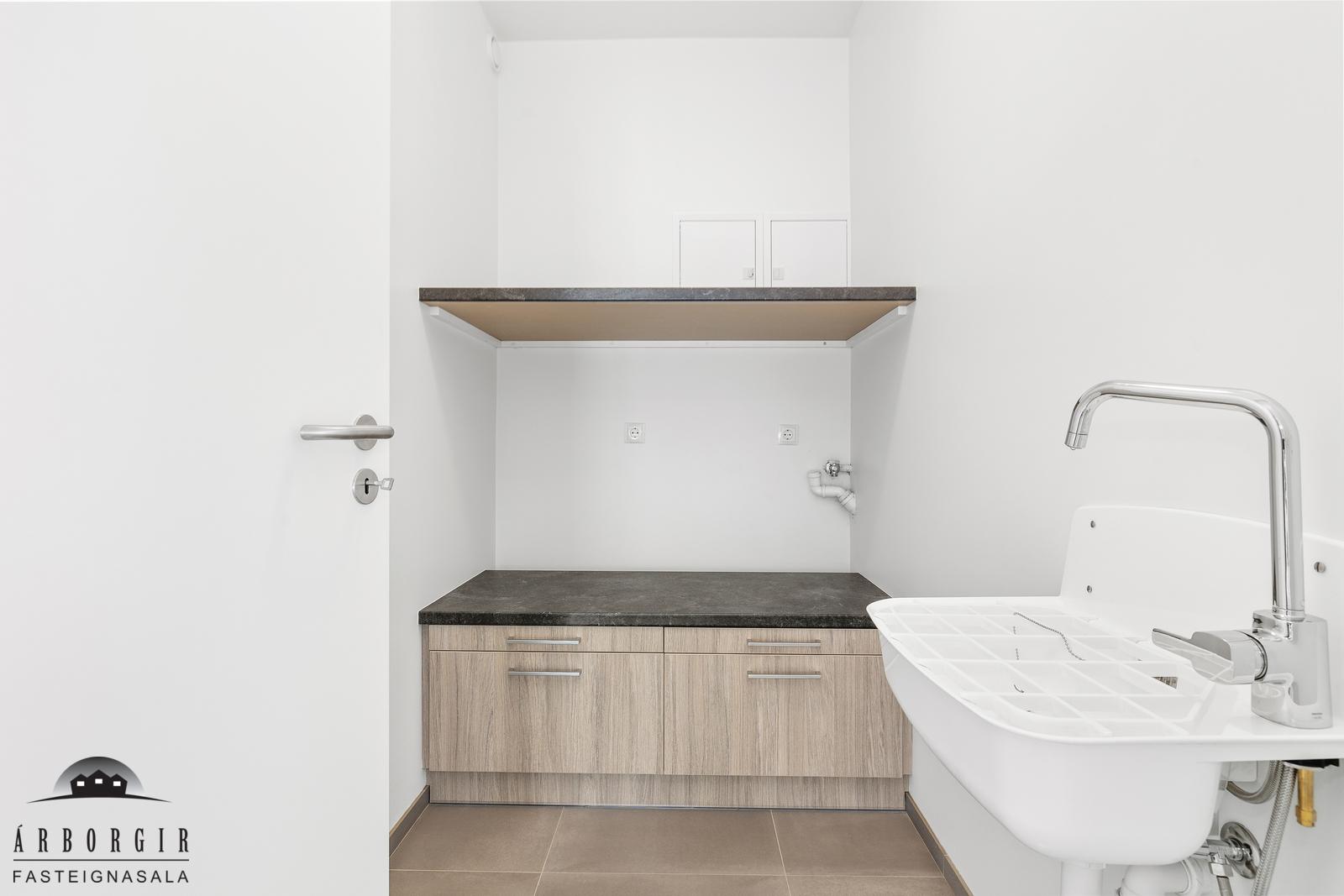 Þvottahúsið er flísalagt en þar er góð innrétting fyrir tæki í vinnuhæð.