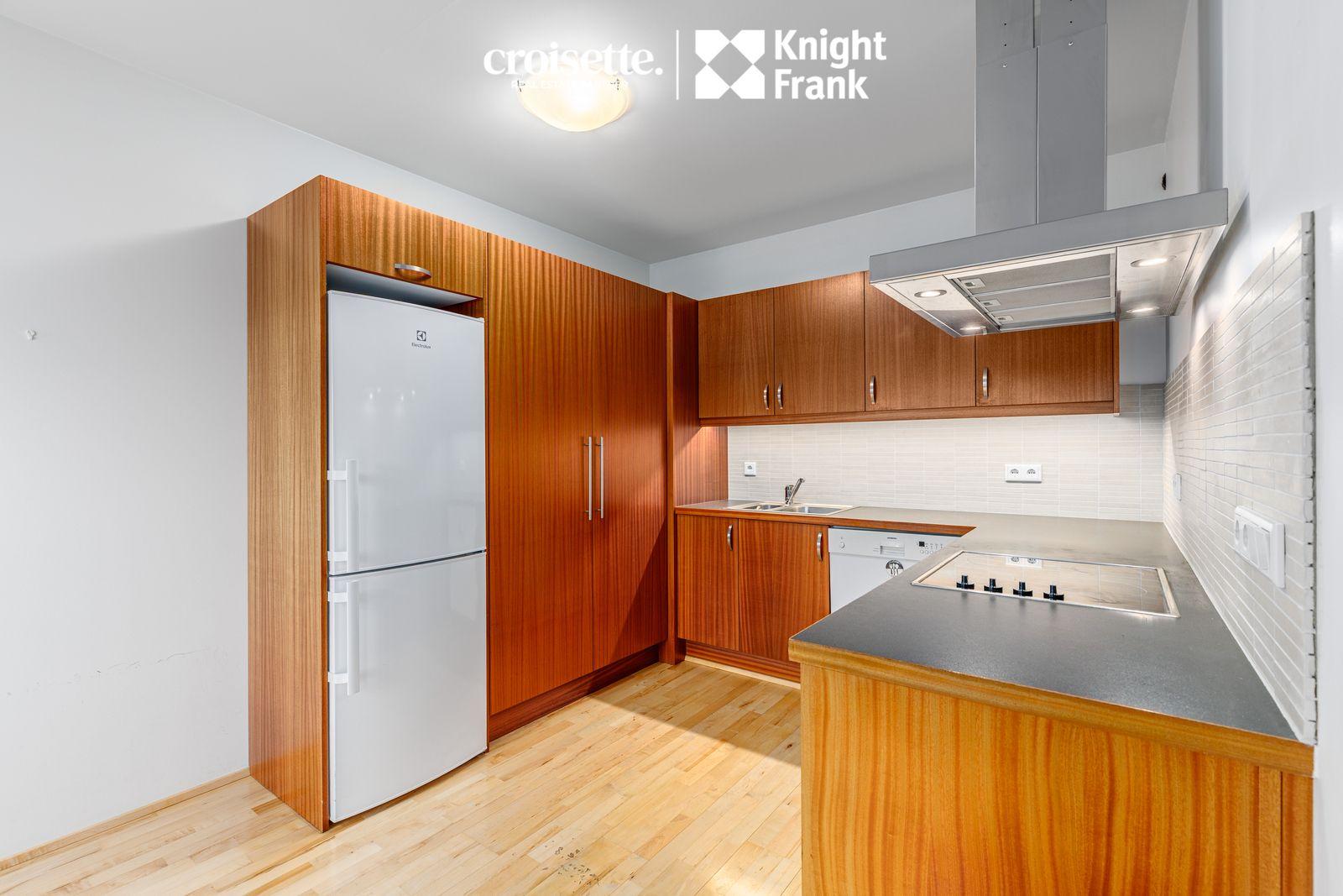 Eldhús: Upprunaleg innrétting, gott skápapláss, flísar á milli skápa. Ísskápur og uppþvottavél fylgja með.  Parket á gólfi.