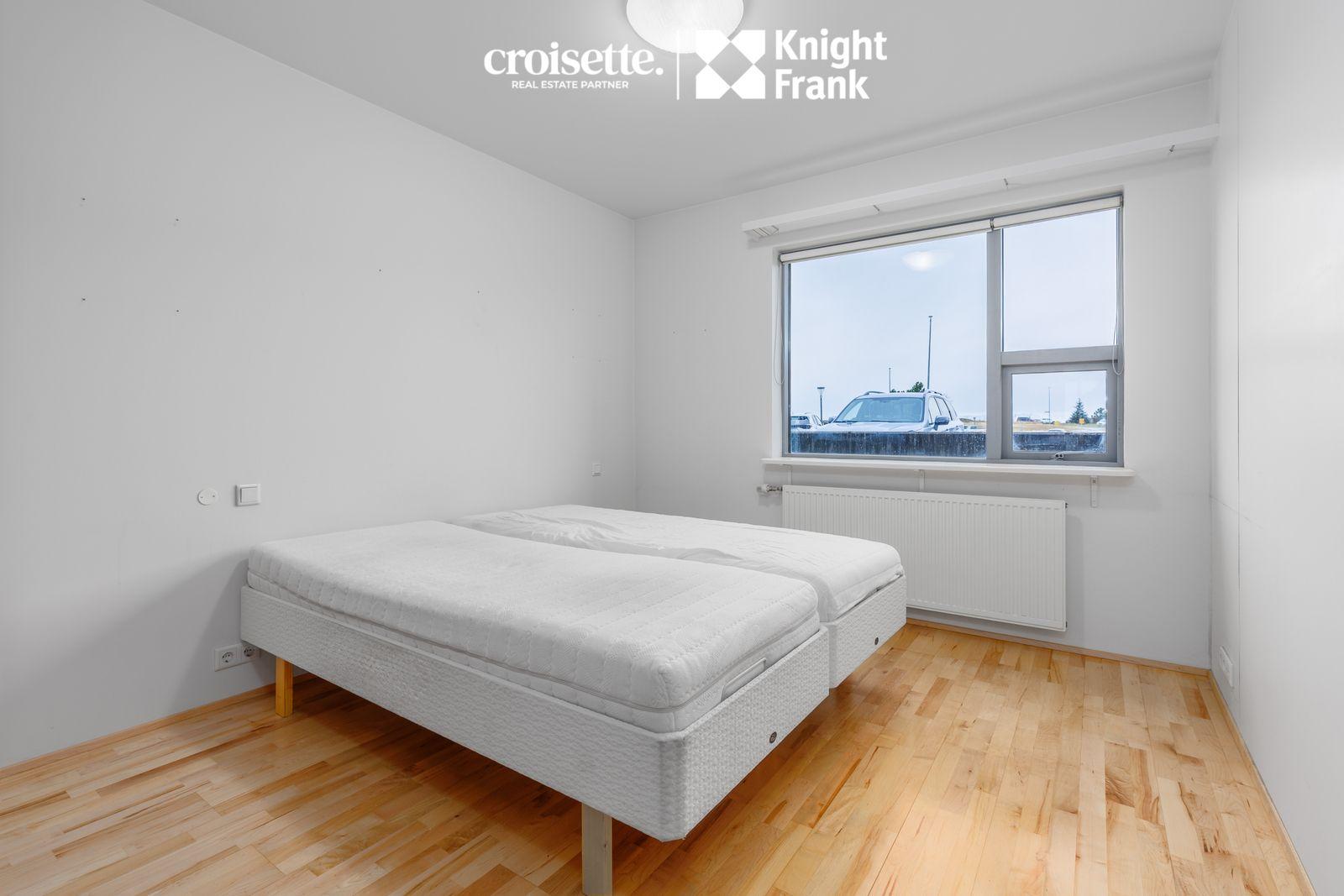 Hjónaherbergi: Rúmgott herbergi með tvöföldum loftháum fataskápum.  Parket á gólfi.