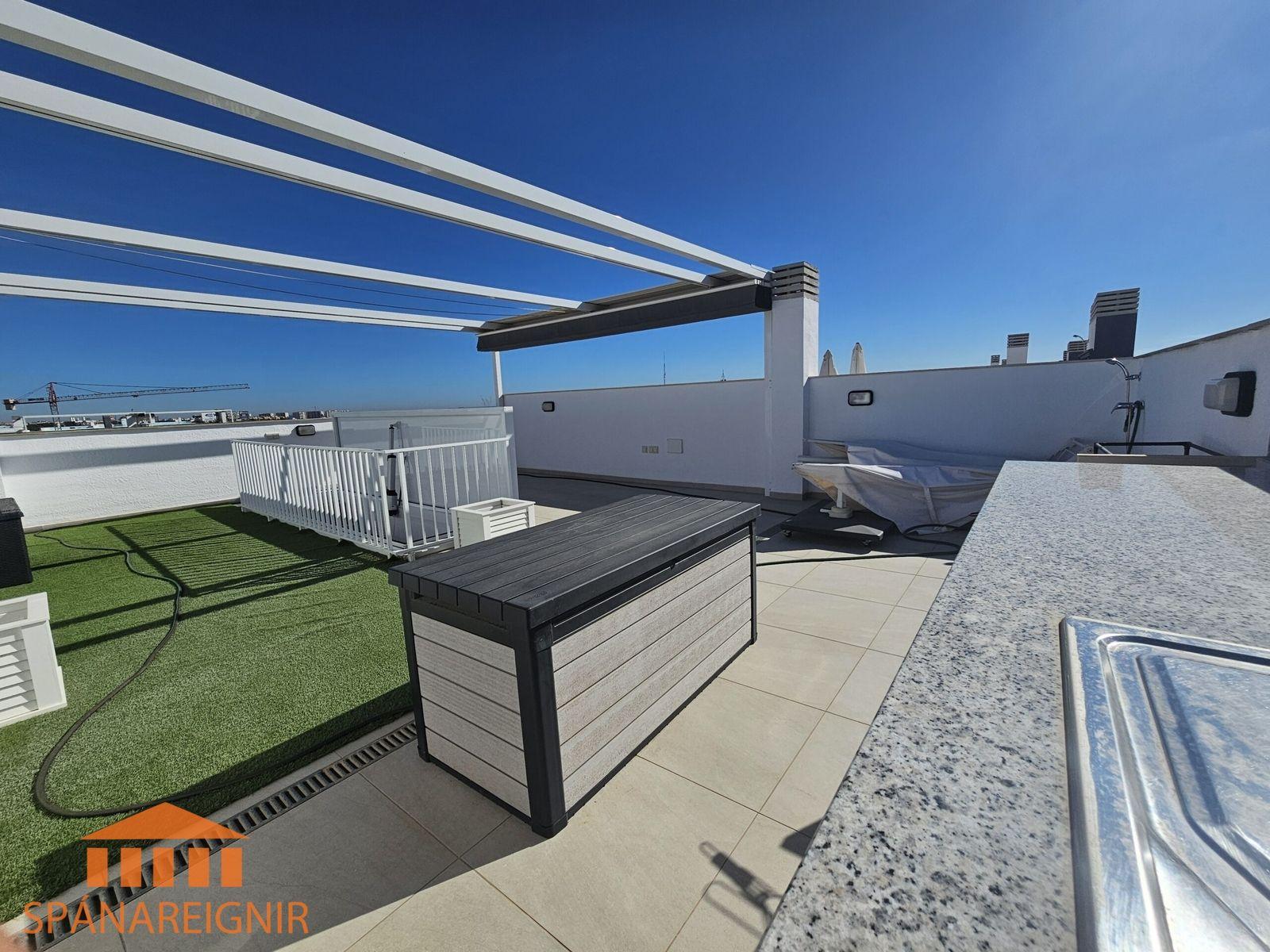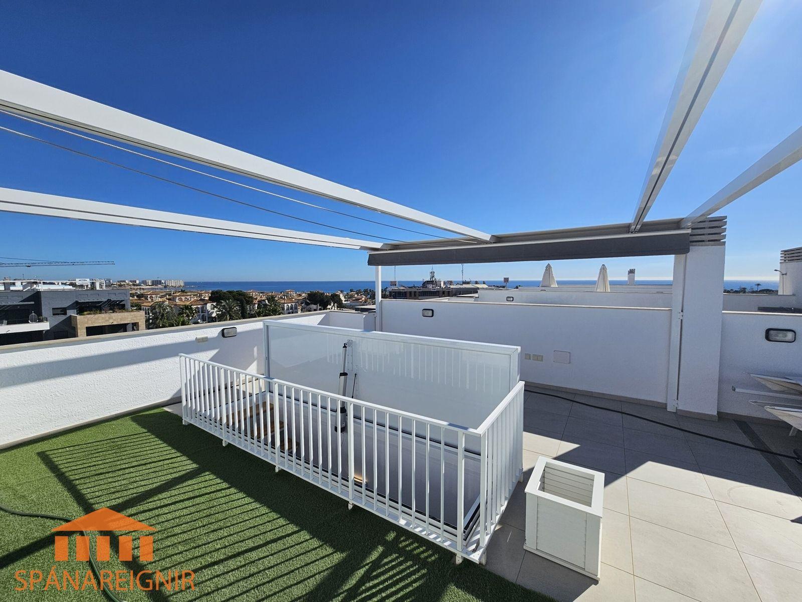 SPÁNAREIGNIR KYNNIR: *PENTHOUSE Í FLAMENCA VILLAGE, PLAYA FLAMENCA* *ÞAKSVALIR MEÐ SJÁVARÚTSÝNI* *SUNDLAUGAR, LÍKAMSRÆKT, GRÓIÐ UMHVERFI Á LOKUÐU SVÆÐI* *LYFTA OG STÆÐI Í BÍLAGEYMSLU*Lokað svæði, gróið og fallegt umhverfi, göngustígar, hlaupabrautir, sundlaugar, barnalaugar, líkamsræktraraðstaða, kaffihús/bar og ótal margt fleira sem gerir þetta án efa að flottasta íbúðahverfinu á Costa Blanca svæðinu.