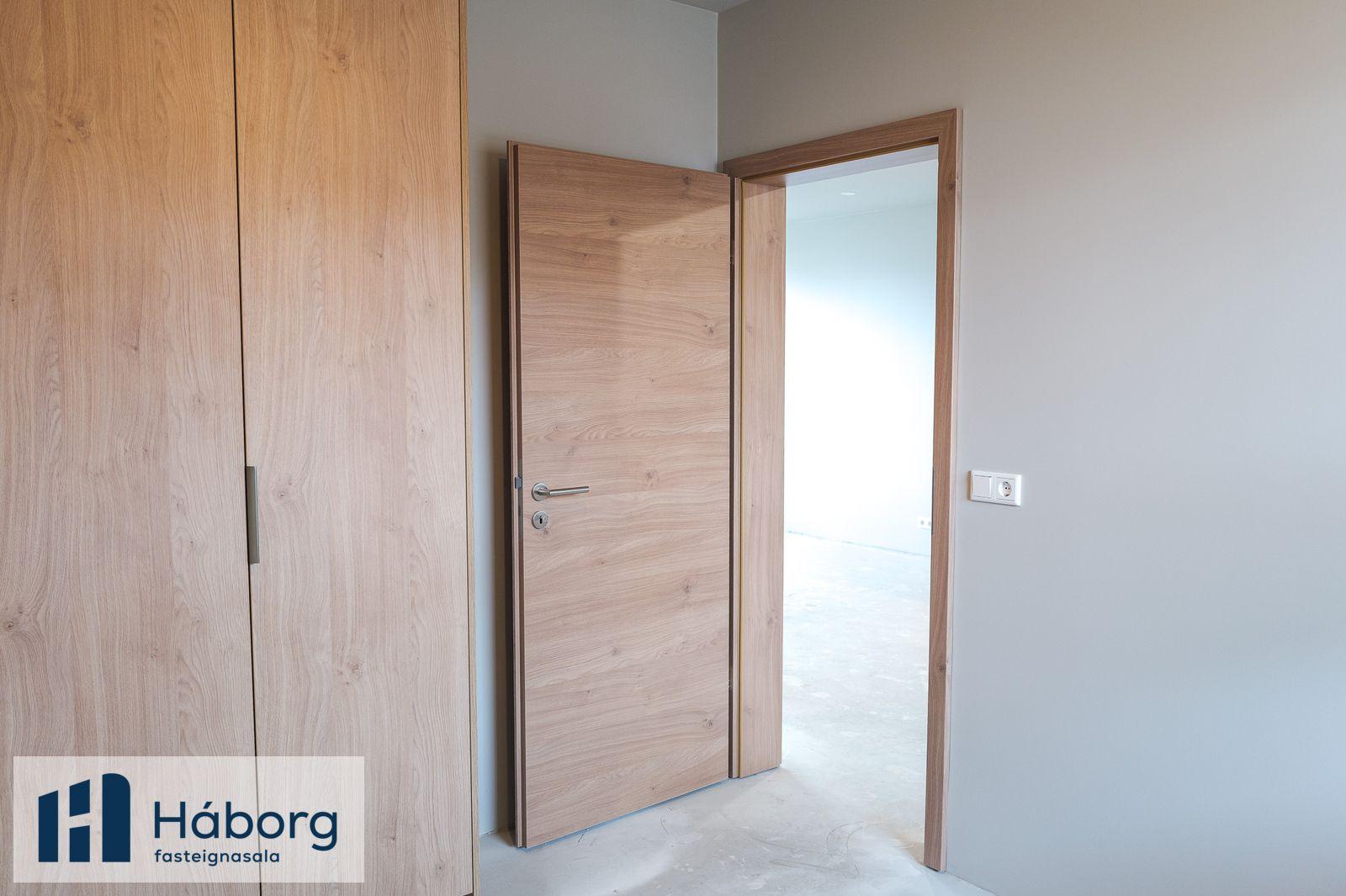 Húsið: Byggingarfélagið Bestla ehf er framkvæmdaaðili, arkitektar og aðalhönnuðir eru Krark Arkitekt. Húsið er á fimm hæðum og samanstendur af 38 íbúðum af fjölbreyttum stærðum og gerðum. Í húsinu er stiga- og lyftuhús en gengið er inn í íbúðirnar af svalagöngum. Í kjallara hússins er bílageymsla með 26 bílastæðum ásamt sérgeymslum fyrir hluta af íbúðunum og vagna- hjólageymslu. Húsið er staðsteypt, klætt með báruáli. Gluggar og svalahurðir eru úr timbri, klætt með áli að utan. Hitalögn er í helstu gönguleiðum og í bílastæðum fyrir hreyfihamlaða. Bílastæði eru austan og sunnan megin við húsið og frágangur lóðar er samkvæmt teikningum frá Landslagi ehf. Rafhleðslustöð er uppsett og gert er ráð fyrir að hægt sé að bæta fleirum við. Íbúðum er skilað fullbúnum en án gólfefna, nema votrými eru flísalögð. Lofthæð íbúða er um 2,58 cm, veggir og loft eru máluð í litnum “soft sand” frá Flugger. Hurðir eru af gerðinni Ringolit frá Birgisson, þær eru plastlagðar í eikarlit. Innréttingar eru frá Voke-3, í eikarlit. Spanhelluborð og bakaraofnar eru frá AEG. Í íbúðunum eru ýmist innbyggðir gufugleypar eða lofthengdir eyjuháfar. Ísskápar og uppþvottavélar fylgja ekki en gert er ráð fyrir að hægt sé að hafa tækin innbyggð, hurðir til uppsetningar þeirra fylgja með. Baðherbergi eru flísalögð að hluta, flísar eru frá Álfaborg. Baðinnréttingar eru í eikarlit og speglaskápar með led ljósum. Blöndunartæki og hreinlætistæki eru frá Grohe.
