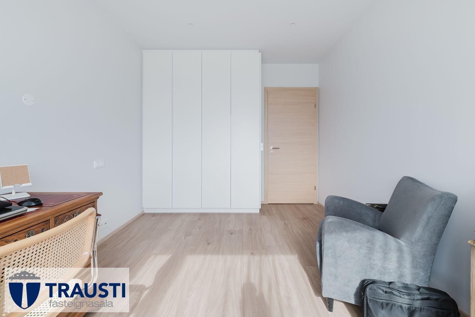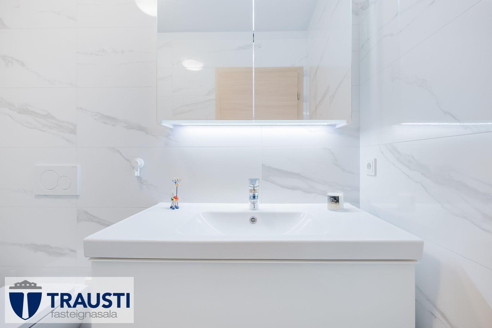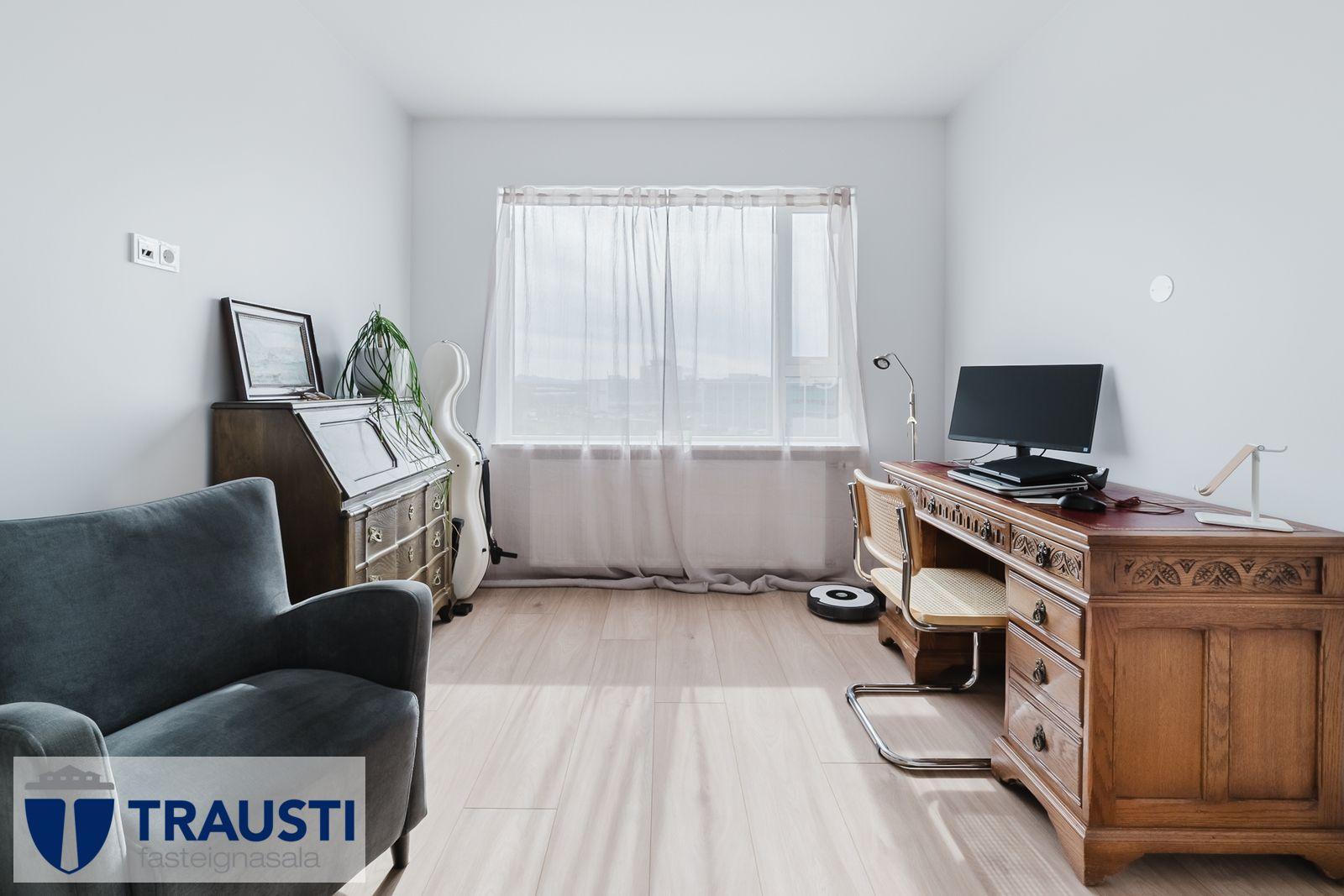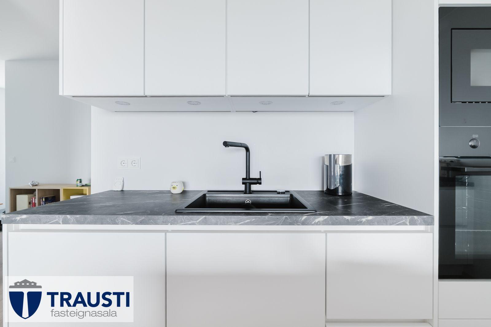 Nánari lýsing eignar: Þegar komið er upp á fjórðu hæð er sérinngangur inn í íbúðina eftir löngum gangi með útsýni yfir garðinn en þessi íbúð er ein með aðgang að ganginum. Forstofa með flísum á gólfi og yfirhafnaskáp. Úr forstofu er gengið út á 37,4 fm þaksvalir þar sem hægt er að koma fyrir heitum potti. Stofa og opið eldhús, hvít innrétting með eyju. Gengið er út á suður svalir frá stofu/eldhúsi Rúmgóð þrjú svefnherbergi, með fataskáp. Baðherbergi með sturtu, ljósri innréttingu, handlaug og upphengdu salerni og handklæðaofn. Sér þvottahús með flísum á gólfi. Geymsla í kjallara, innan bílskúrs 11,6 fm Bílskúr með stálvaski, 48,7 fm Bílastæði í lokuðu bílastæðahúsi, fyrir fram skúr nr. B21 Stór og fallegur garður er í miðju bygginganna með leiktækjum fyrir börn.