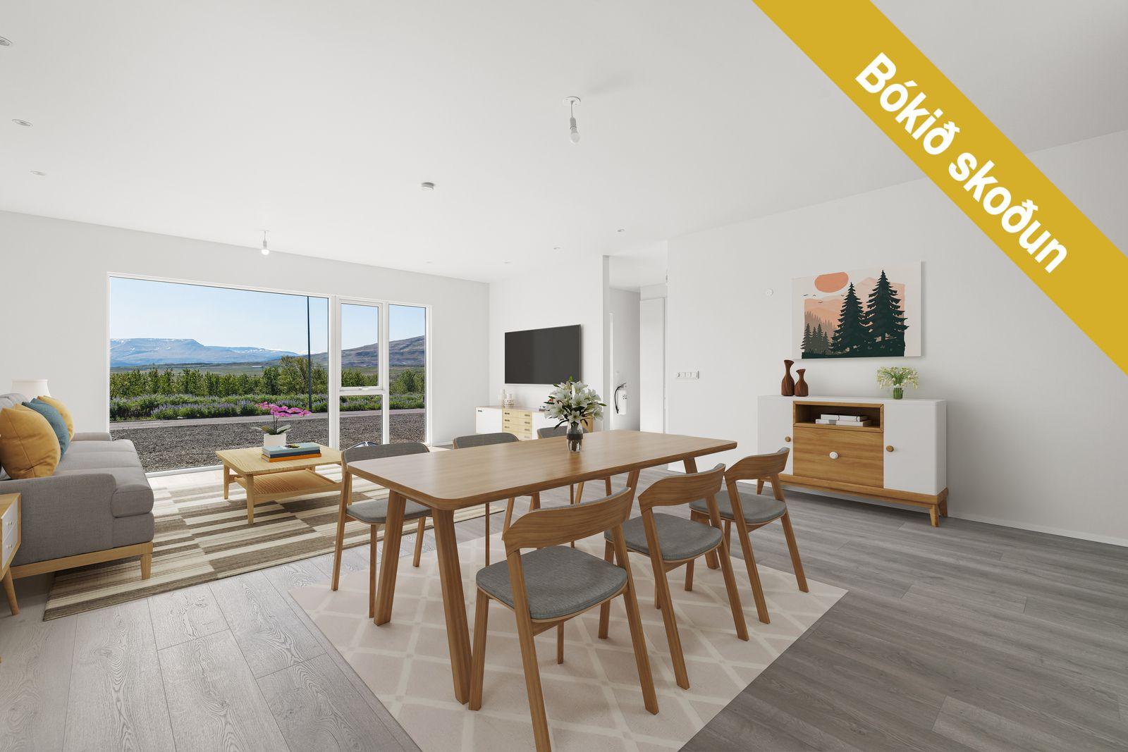 Bókið skoðun hjá Dagrún Davíðsdóttir lögg. fasteignasala í síma 866-1763, dagrun@betristofan.is eða Hreiðari Levý lögg. fasteignasala í síma 661-6021, hreidar@betristofan.isNýtt, fallegt og vel skipulagt raðhús í rólegu og fjölskylduvænu hverfi í Melahverfi í Hvalfjarðarsveit umvafið kyrrð og náttúruperlum. Stærri þéttbýliskjarnar ekki langt frá með allt það sem þeir hafa upp á að bjóða. Um 10 mínútna akstur er inn til Akranesar, 15 - 20 mínútur til Borganesar og ca. 30 mínútur til Reykjavíkur. Nánari lýsing:Anddyri: með stórum hvítum fataskáp. Innaf anddyri er