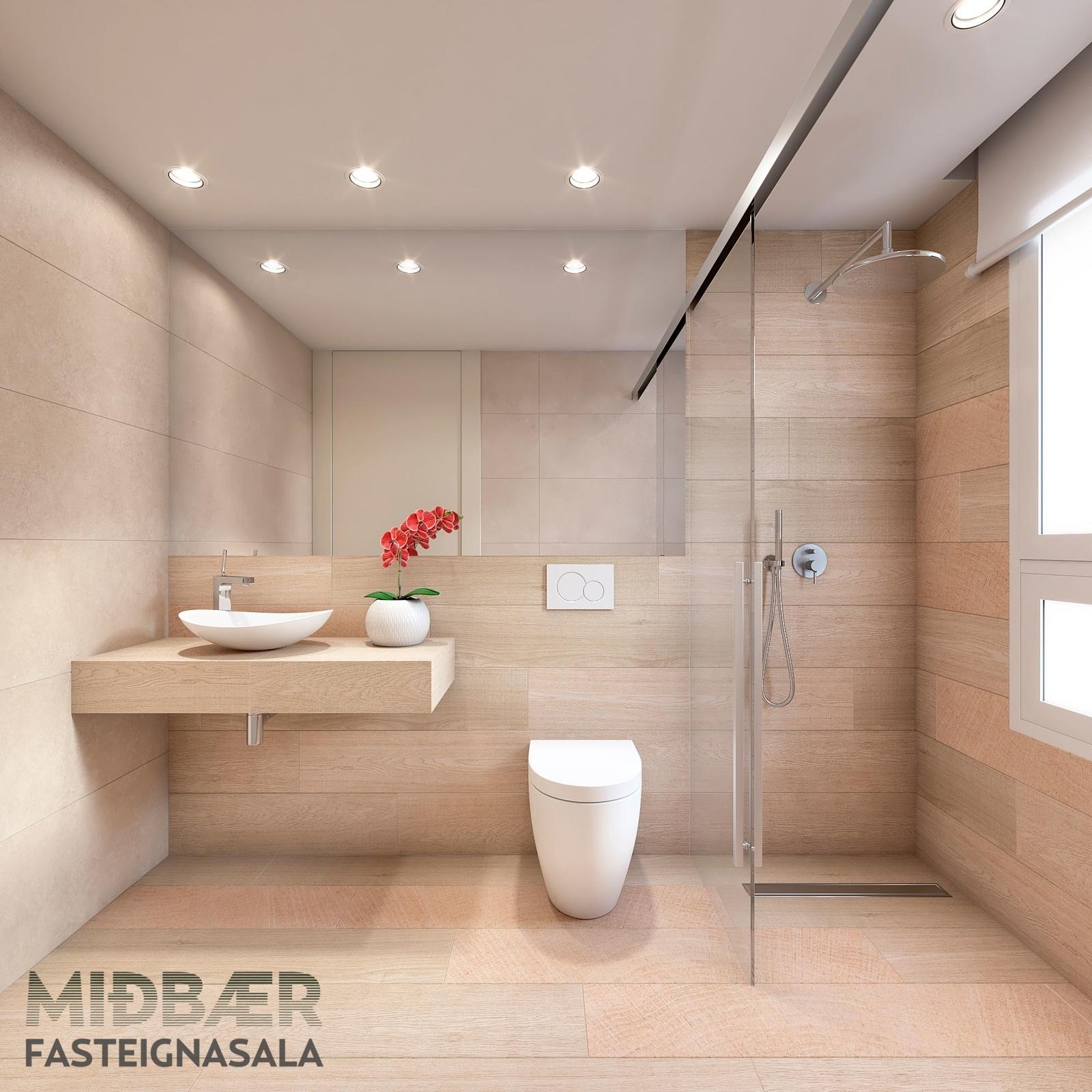 Sérlega glæsileg íbúð með góðu alrými, tveimur svefnherbergjum og tveimur baðherbergjum auk geymslu.