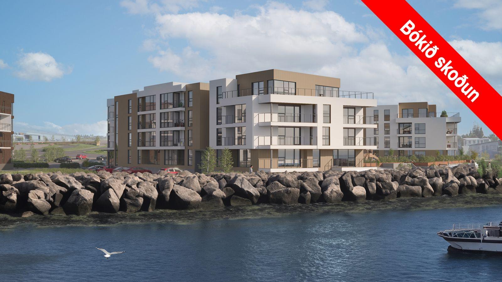 Fasteignamarkaðurinn ehf. sími 570-4500 kynnir til sölu glæsilega 2ja herbergja íbúð á 1. hæð í vandaðri 4ra hæða nýbyggingu með lyftu við Naustavör 62, sem er við sjávarsíðuna á Kársnesinu í Kópavogi.