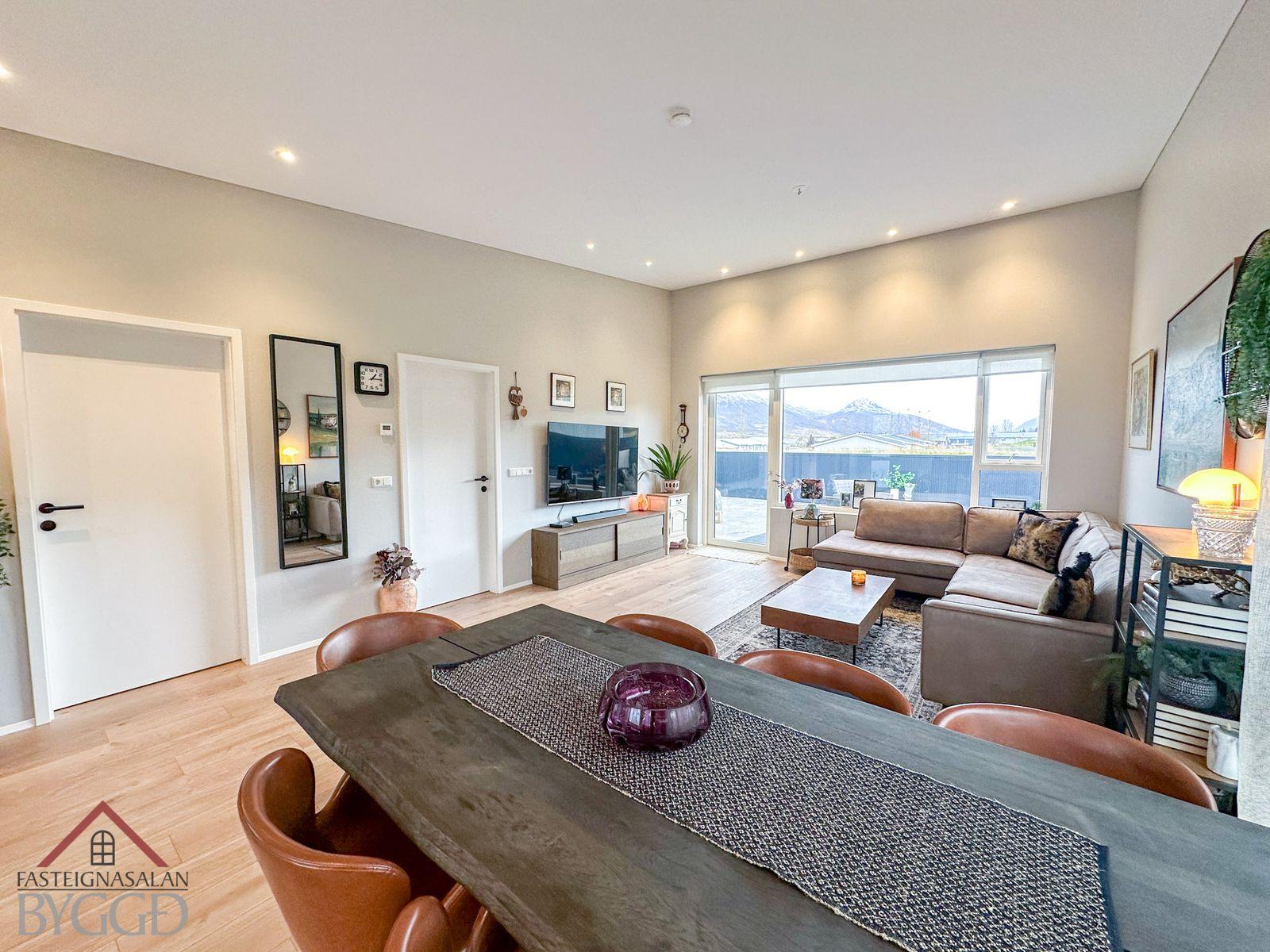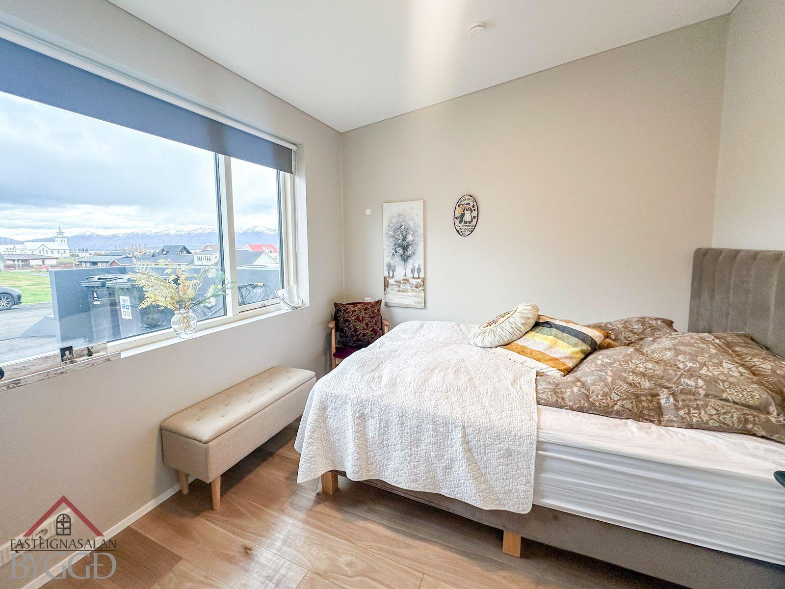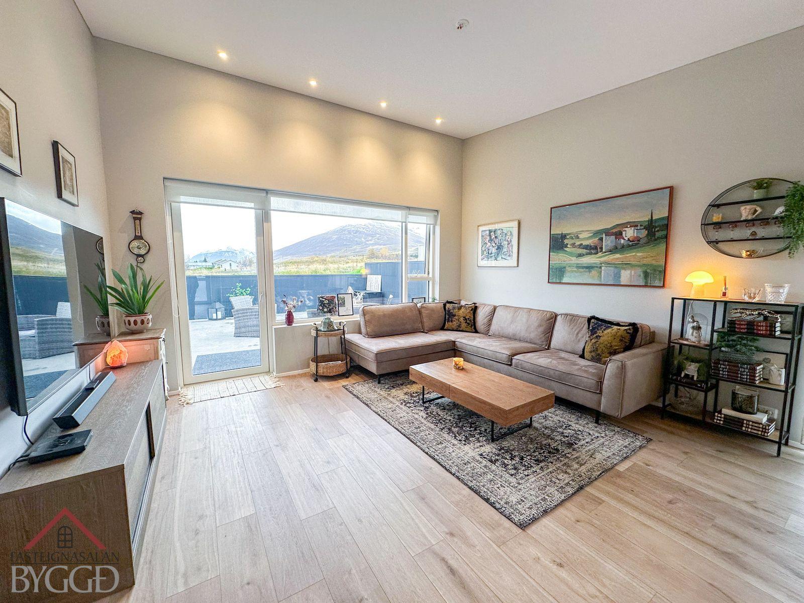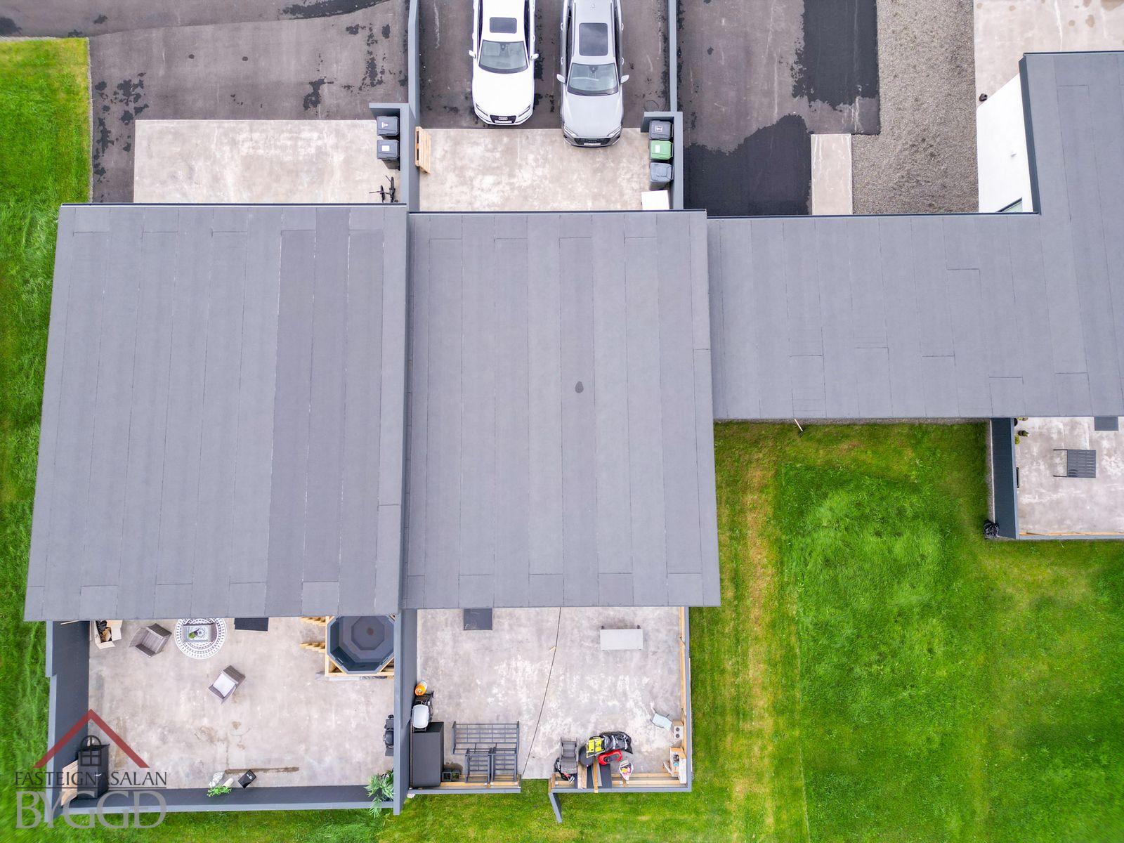 Glæsileg þriggja herbergja endaraðhús íbúð í fjögurra íbúða húsi á flottum stað á Dalvík. Sameiginleg vagna- og hjólageymsla ásamt sérgeymslu er í miðju húsinu. Glæsilegt útsýni og víðsýnt til suðurs af steyptri verönd sem er með heitum potti.