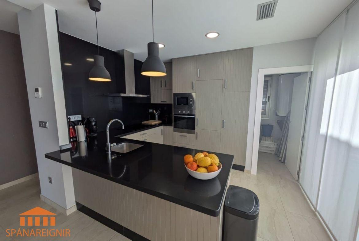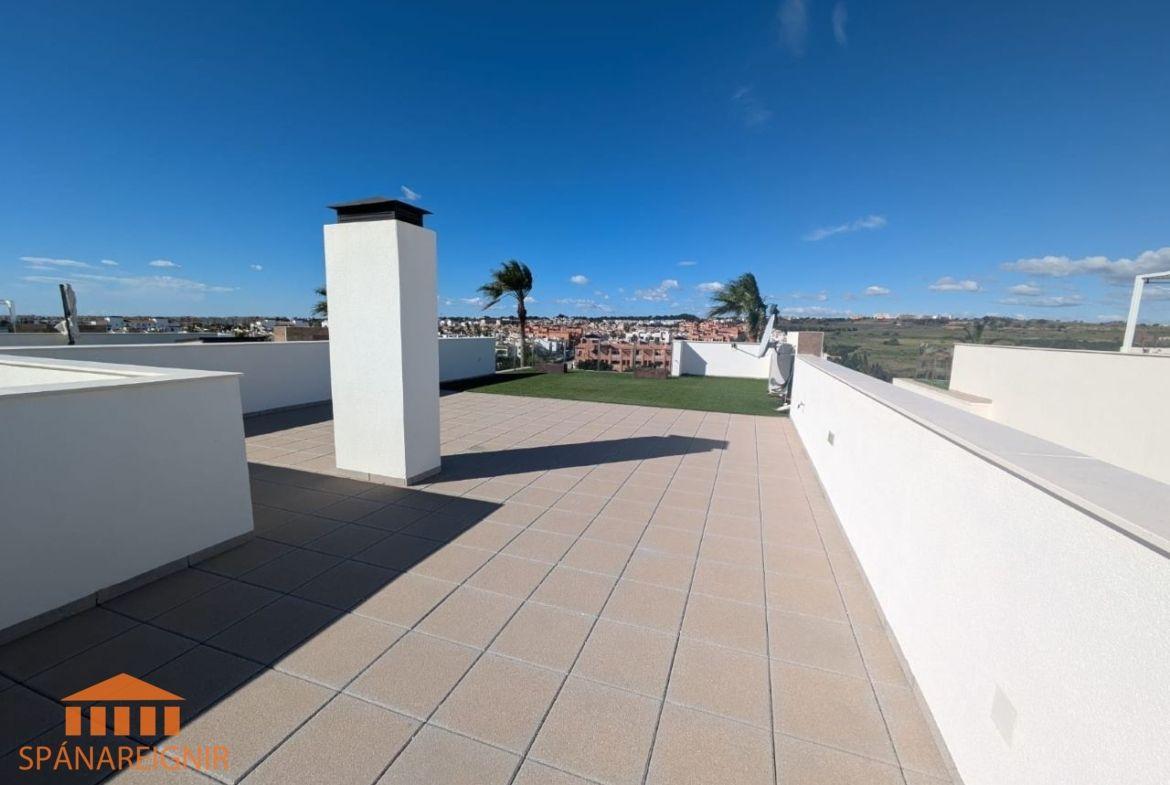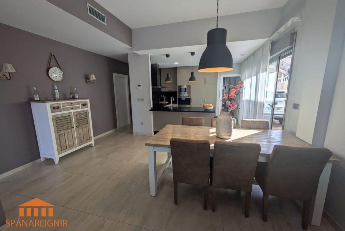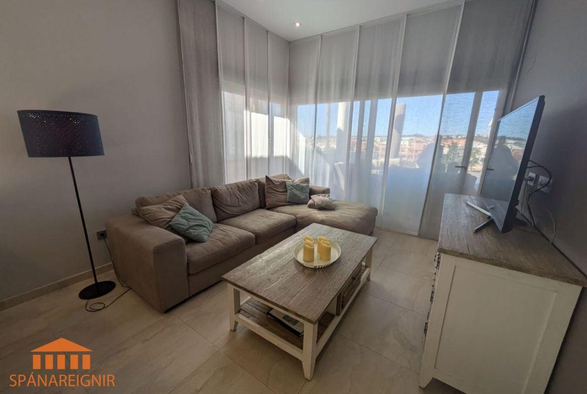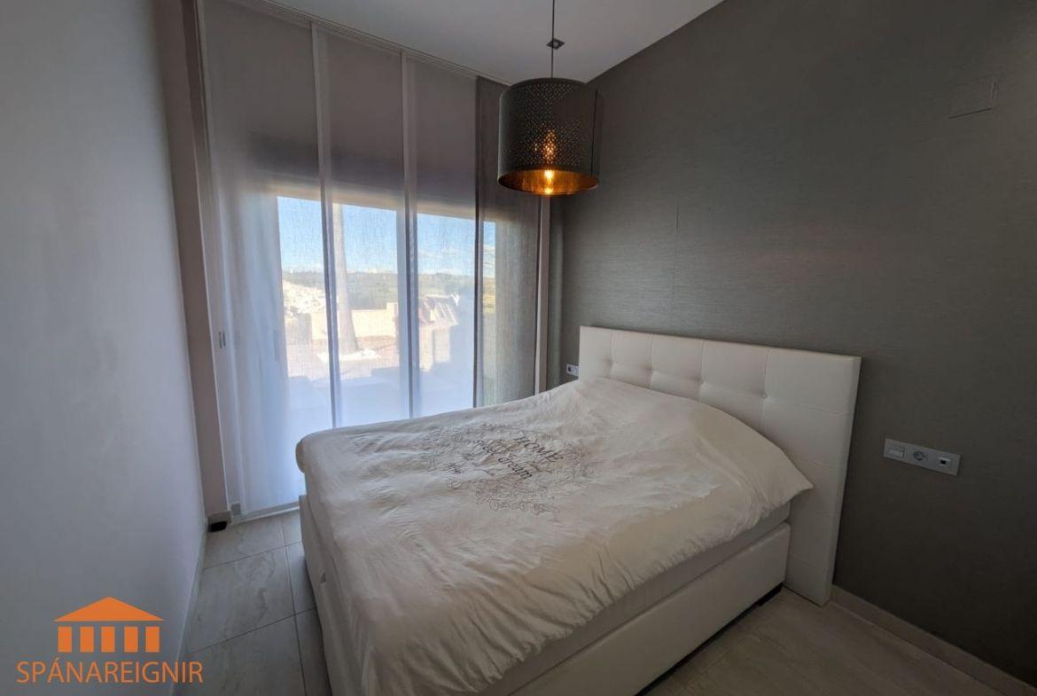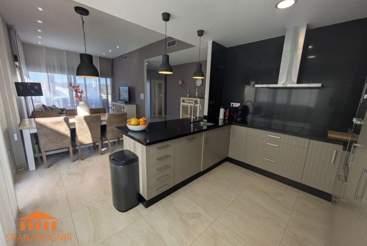 SPÁNAREIGNIR KYNNIR: *EINBÝLISHÚS Í VILLAMARTIN MEÐ FRÁBÆRU ÚTSÝNI* *UPPHITUÐ EINKASUNDLAUG, BÍLASTÆÐI Á LÓÐ* *STÓRAR ÞAKSVALIR MEÐ SJÁVARÚTSÝNI* *3 SVEFNHERBERGI, 2 BAÐHERBERGI* *NÁLÆGT GOLFVÖLLUM, VERSLUNUM OG VEITINGASTÖÐUM*Eignin stendur á 312 m² lóð til suðurs með viðhaldslitlum garði, einkasundlaug, grænum svæðum og veröndum þar sem hægt er að slaka á og njóta útsýnis yfir nærliggjandi svæði. Húsið samanstendur af 3 svefnherbergjum, 2 baðherbergjum, og opnu rými með stofu, borðstofu og eldhúsi. Auk stóra garðsins eru líka stórar þaksvalir þar sem hægt er að njóta sjávarútsýnis. Eignin er innréttuð með mjög vönduðum húsgögnum og kemur með miðlægu loftræstikerfi, bílastæði innan lóðar með rafdrifnum hliðum, rafknúnum gardínum um allt hús, þvottahúsi og geymslu.