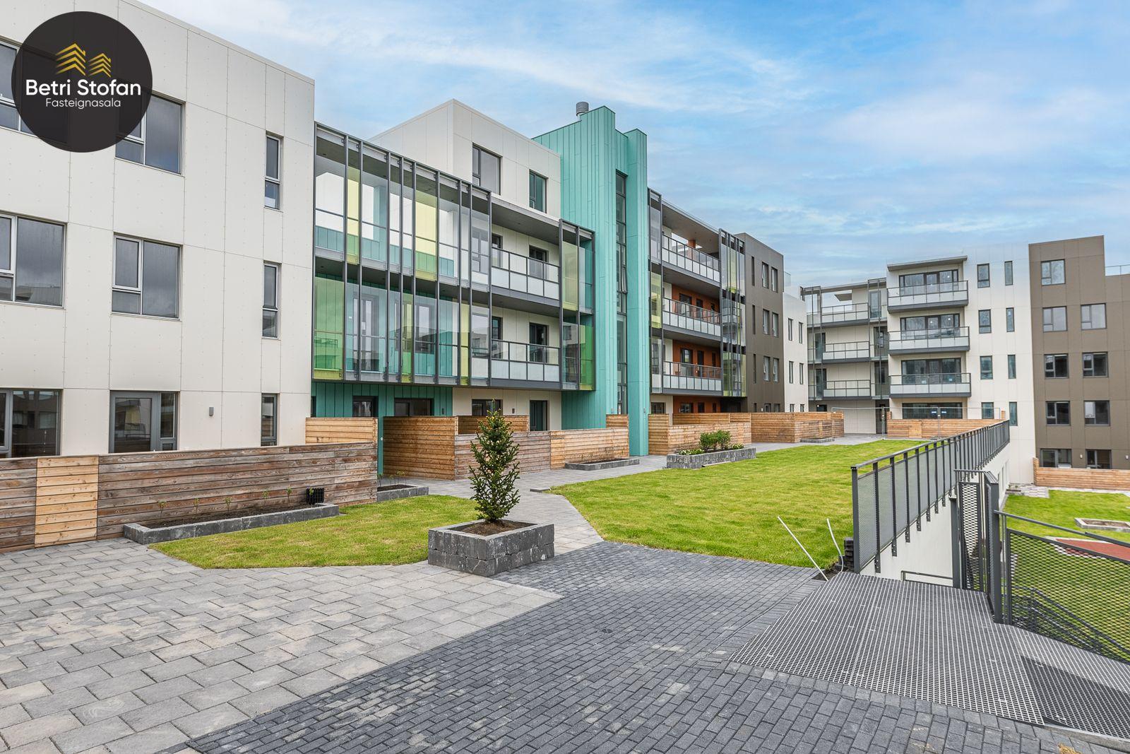 Íbúðirnar afhendast fullbúnar við kaupsamning, með gólfefnum, innbyggðri uppþvottavél, ísskáp með frysti og lýsing er í loftum. Ljós eru innbyggð að hluta, kubbaljós, ljósakúplar og kastarar fylgja. Baðherbergi eru flísalögð með sturtugleri, vaskur og handklæðaofn. Gólf á þvottahúsi eru flísalögð. Dökkar innréttingar. 11,5 fm geymsla fylgir íbúðinni.