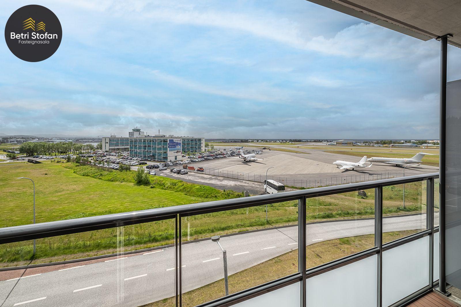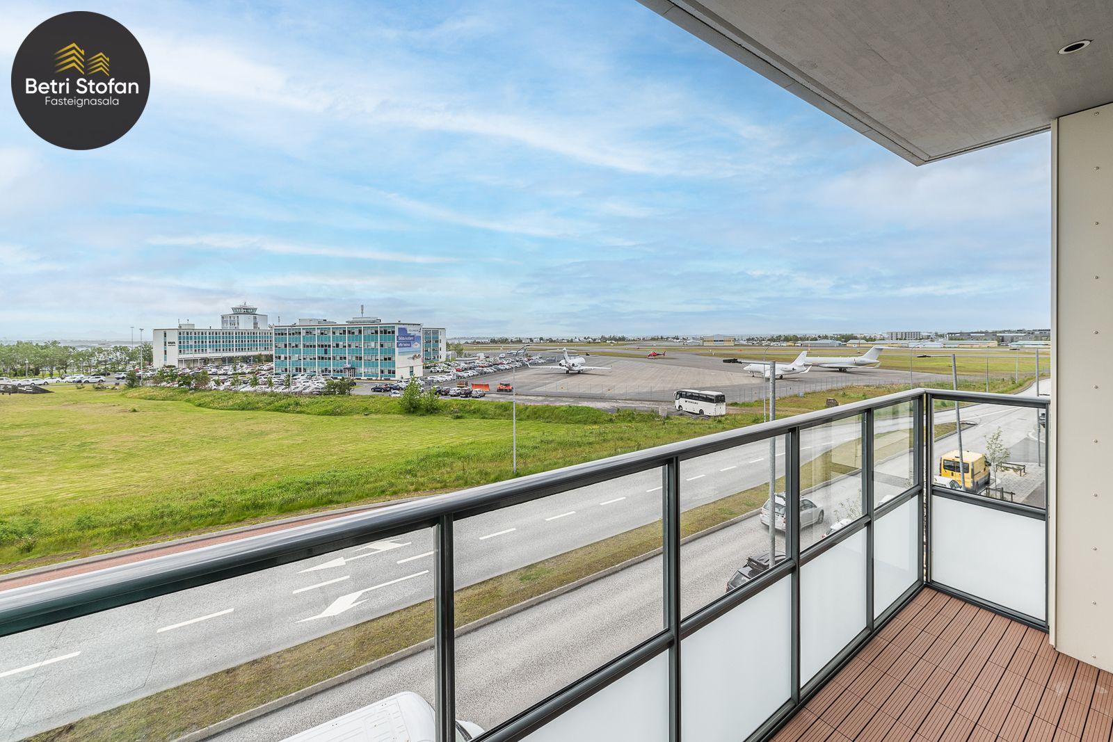 svalir sem snúa til suðurs í átt að hóteli og flugvelli. Einnig er útgengi út á rúmgóðar 39,4 fm