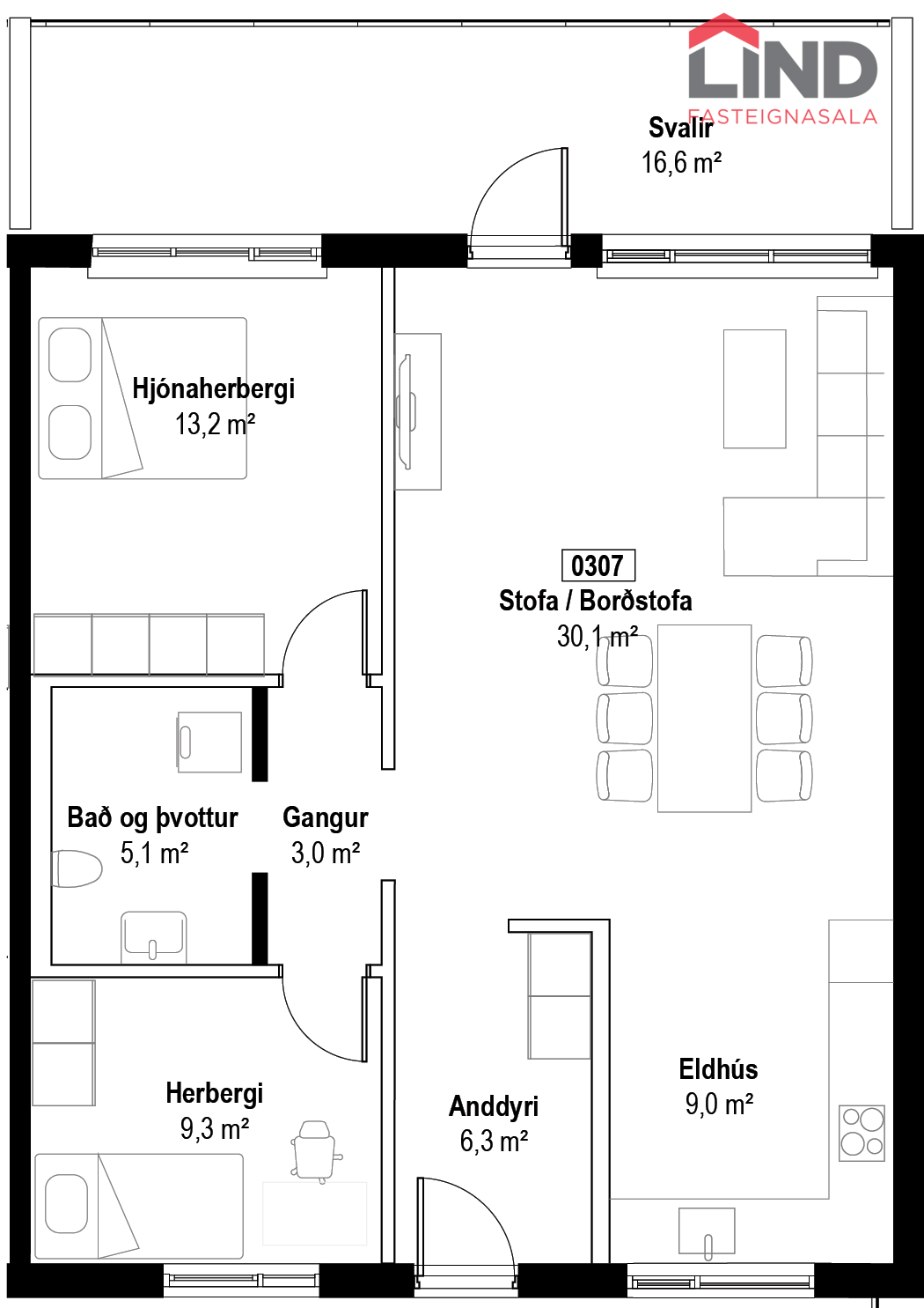 - Rúmgóðar 16,6 fm svalir til suðurs með góðu útsýni.
