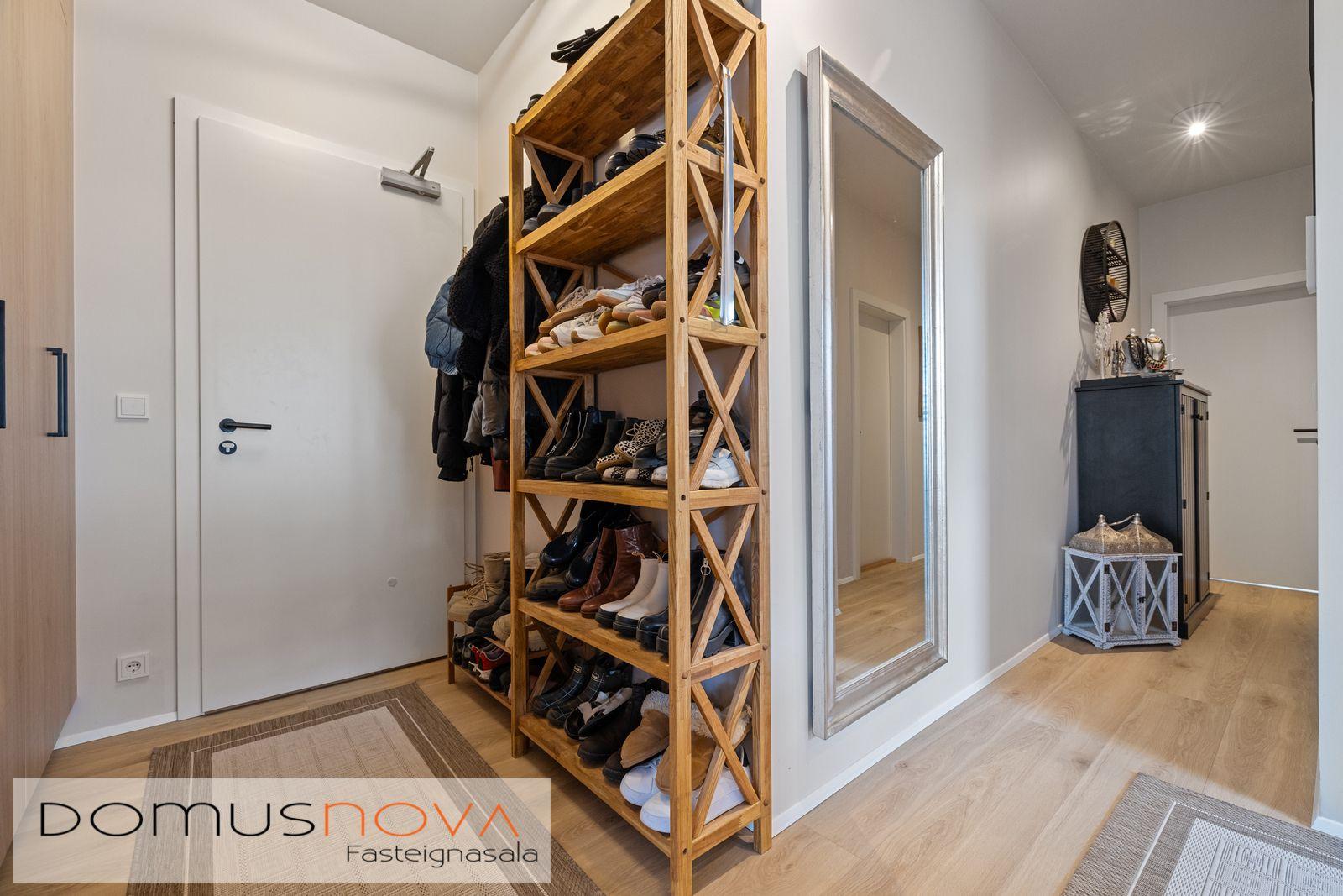Forstofa - rúmgóð með innbyggðum fataskáp og vönduðu parketi á gólfum.