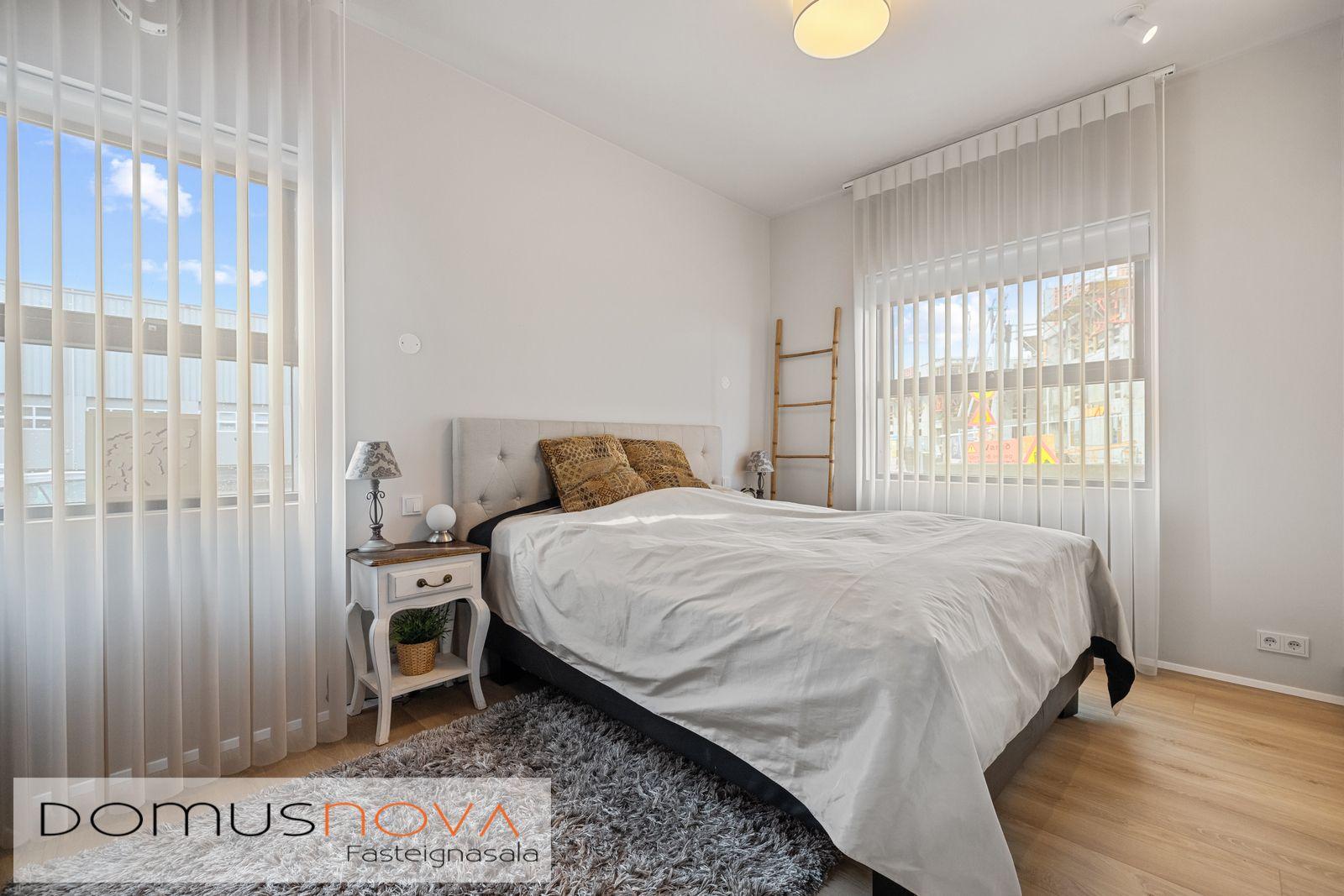 Núverandi eigendur létu setja upp mjög vönduð gluggatjöld frá gardinur.is og fylgja þau íbúðinni til nýs eiganda.