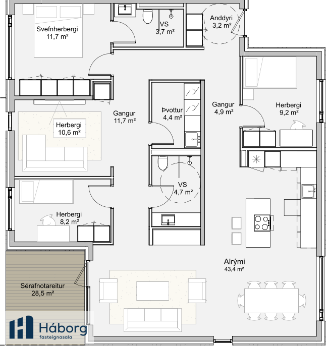 Athugið að myndir í auglýsingum eru settar fram til viðmiðunar. Á þeim kunna að koma fyrir einstök atriði, búnaður eða frágangur sem falla ekki undir lokaútgáfu eða skilalýsingu fasteignarinnar.