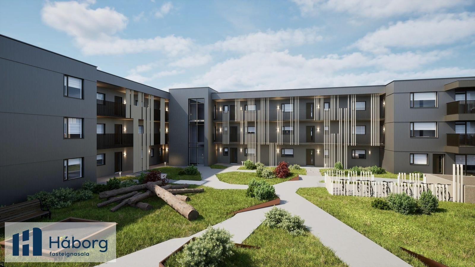 Háborg fasteignasala kynnir Grásteinsmýri 1, Garðabæ. Nýbyggingin er staðsteypt, einangruð að utan og klædd með ál- og bambus klæðningu. Góðar 2ja, 3ja 4ra og 5 herbergja íbúðir í litlu fjölbýli með lyftu. Útsýni er úr flestum íbúðum og timbur-verönd fylgir íbúðum á 1. hæð. Íbúðirnar afhendast án megin gólfefna en baðherbergi eru flísalögð að hluta. Næg bílastæði á lóð. Áætluð afhending íbúða er í mars-apríl 2026.Sölusíða GrásteinsmýriNýr valkostur í fjármögnun. Kaupendur geta nýtt sér nýjan sjóð Öxar 20 sem styður þá með því að fjárfesta með þeim allt að 20% af kaupverði. Kynntu þér málið hér Öxar.isNánari lýsing á íbúð 107, 5. herbergja: Stærð 144,8 fm. Sérinngangur. Þegar komið er í forstofu eru góðir fataskápar. Barnaherbergin er rúmgóð og björt með góðum fataskápum. Hjónasvítan er einnig rúmgott og bjart herbergi með góðum fataskápum og baðherbergi innaf. Sjónvarpshol. Sér þvottahús með góðri vinnuaðstöðu. Baðherbergi er með góðri snyrtiaðstöðu. Alrými er mjög rúmgott og bjart, L laga, með opið eldhús með eyju sem hægt er að sitja við. Stofur eru rúmgóðar og bjartar. Úr alrými og stofu er útgengt á timbur-verönd 28,5 fm að stærð. Eigninni fylgir stæði í bílakjallara merkt B28 og geymsla að stærð 8,3 fm.Nýjar, bjartar og vandaðar íbúðir með góðri lofthæð, þar sem náttúra, ró og nútímaleg hönnun mætast.Innréttingar í íbúðum: AXIS innréttingar í litnum CashmereGrey. AEG innbyggð heimilistæki, ísskápur, uppþvottavél, helluborð og bakarofn. Baðherbergi eru flísalögð að hluta með 60×60 Patch Beige flísum (Ragno). Grohe blöndunartæki eða sambærileg. Egill Árnason hurðir, lamir og hurðabúnaður.