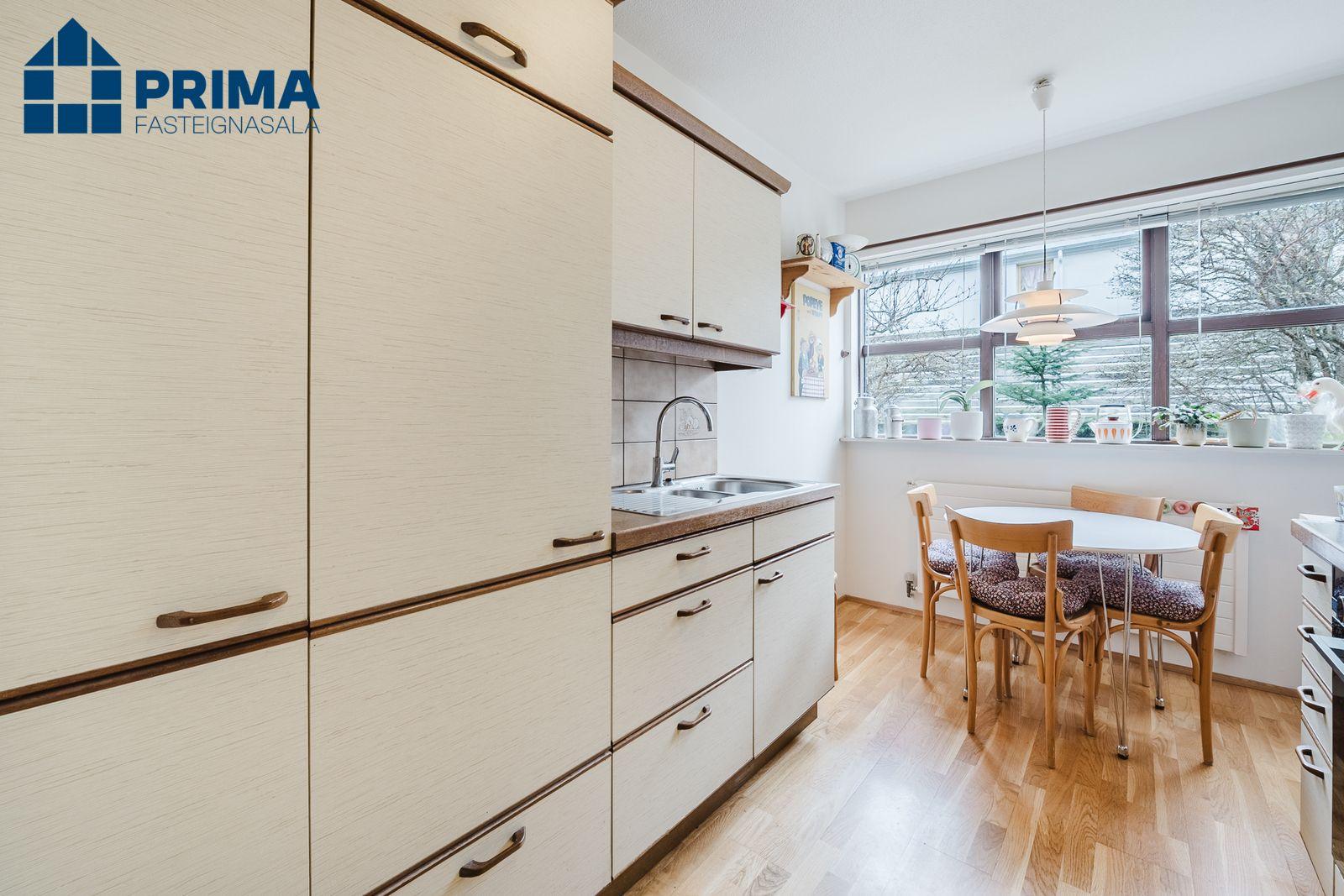 Komið inn í anddyri með flísum á gólfi og skáp. til hægri er svefnherbergi með dúk á gólfi. Rúmgott eldhús með nýjum tækjum (helluborð, ofn og ísskápur). Baðherbergi með glugga, flísalagt hólf í gólf. Svefnherbergi með parketi á gólfi og góðum skáp. Þvottahús/geymsla innaf íbúð. Stofa með parkefti á gólfi, hægt væri að taka hluta af stofu og útbúa þriðja svefnherbergið.