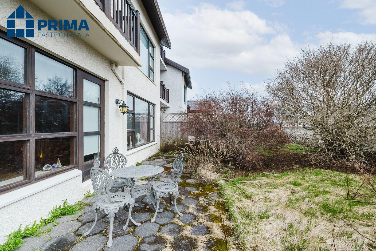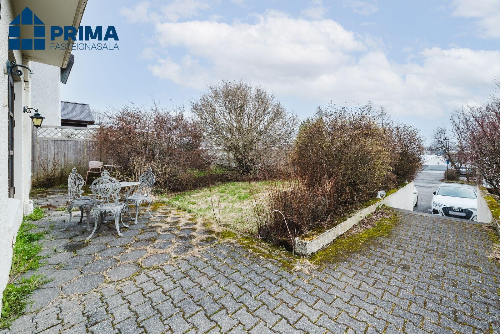 Eignin skiptist sem hér segir: Forstofan er flísalögð með fataskáp. Tvö svefnherbergi, annað með parketi og hitt með dúk og með skápum. Eldhúsið er rúmgott með borðkrók, parketi á gólfi. Baðherbergið er flísalagt í hólf. Sturta og innrétting. Stofan er parketlögð, þaðan er útgengt í garð með sérafnotafleti. Þvottahús/geymsla þvottahús og geymsla eru innan íbúðar með góðri innréttingu, dúkur á gólfi.
