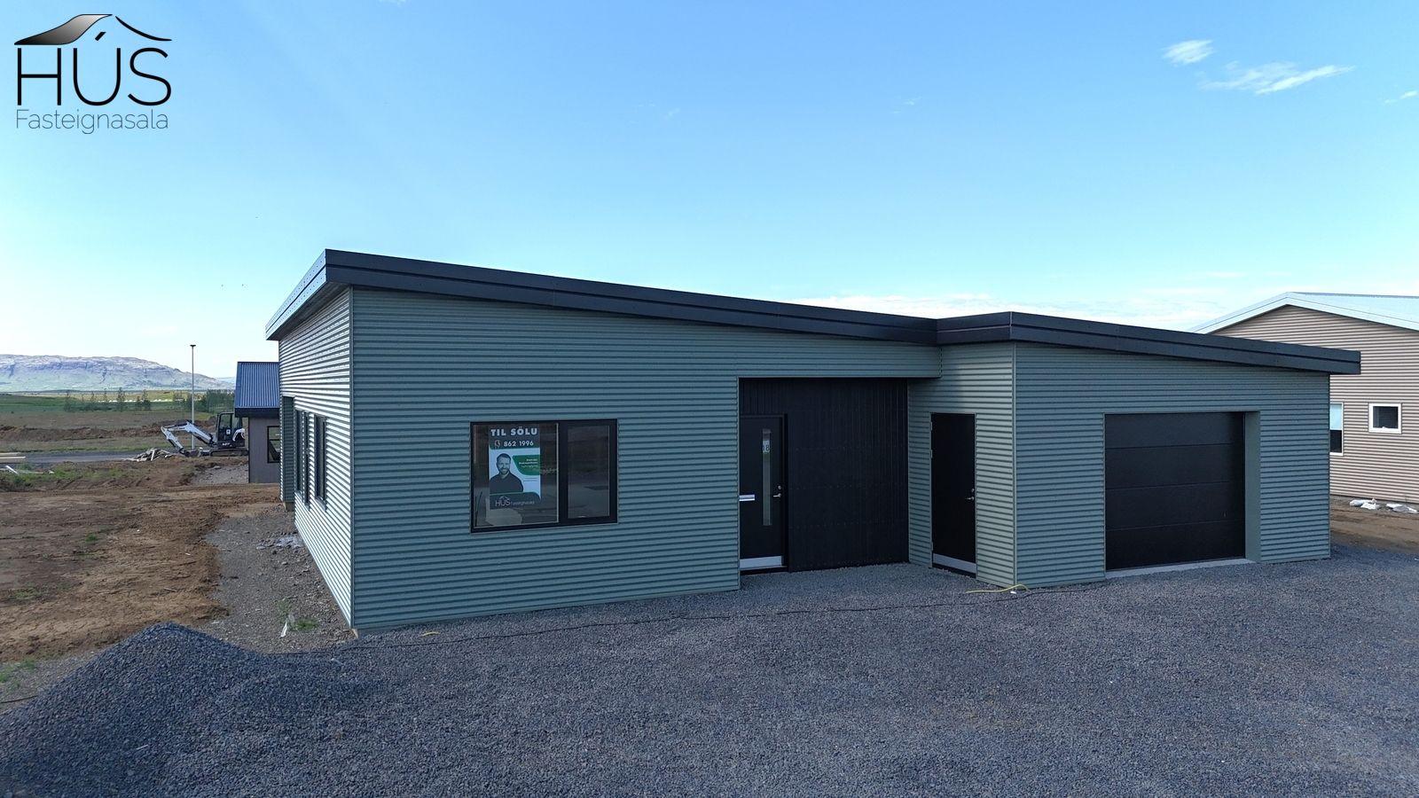 Steindór Guðmundsson löggiltur fasteignasali 862 1996 og HÚS fasteignasala kynna í sölu nýbygginguna Fannborgartanga 18, Flúðum. Um er að ræða einbýlishús sem er í byggingu. Eignin er alls 201,2 fm þar af sambyggður bílskúr 40,8 fm. Innra skipulag. Forstofa Fjögur rúmgóð svefnherbergi. Tvö baðherbergi. Úr öðru baðherberginu er útgengt á lóð. Stofa og eldhús er opið í eitt. Úr eldhúsi er útgengt út á lóð þar er yfirbyggt þakskegg sem er 12,7 fm Sjónvarpshol. Bílskúr innanmál breidd 5,51m x lengd 6,5m. Innangengt er í bílskúr úr forstofu einnig er gönguhurð undir þakskeggi við inngang.