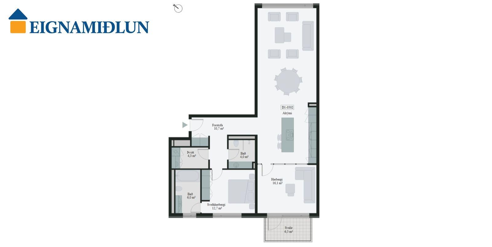 Eignamiðlun og Safír byggingar ehf kynna með stolti nýjar í öðrum áfanga (D-húsi) á Orkureitnum við Suðurlandsbraut 38-44 og Grensásveg 2-6. Glæsilegt lyftuhús, sannkallaður sælureitur við Laugardalinn. Íbúðirnar eru afhentar fullbúnar með vönduðum Nobilia Innréttingum frá GKS, flísalögðum baðherbergjum en án megingólfefna. Orkureitur - Suðurlandsbraut 40-502 , íbúð 05-02 er 3 herbergja, 142.6 fm íbúð.