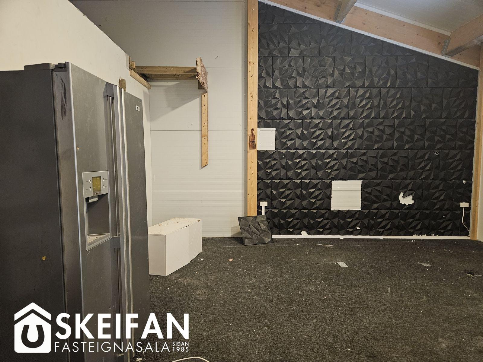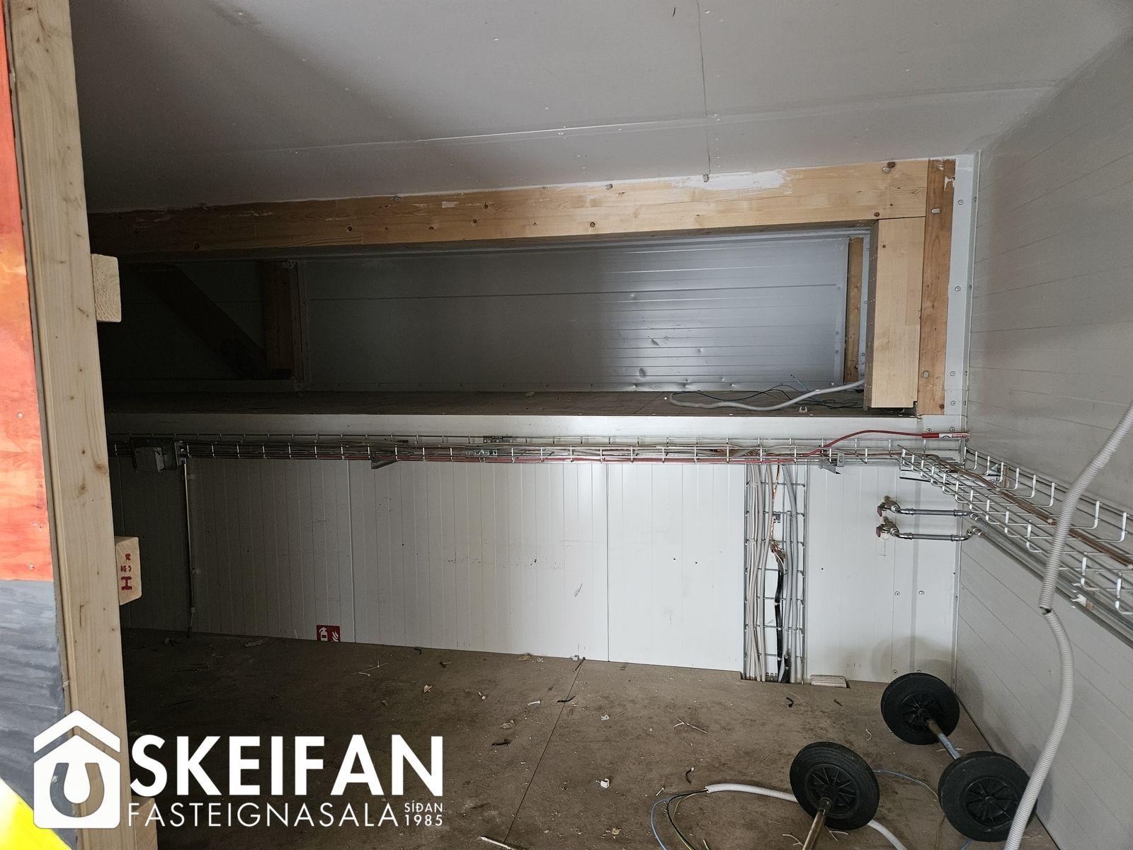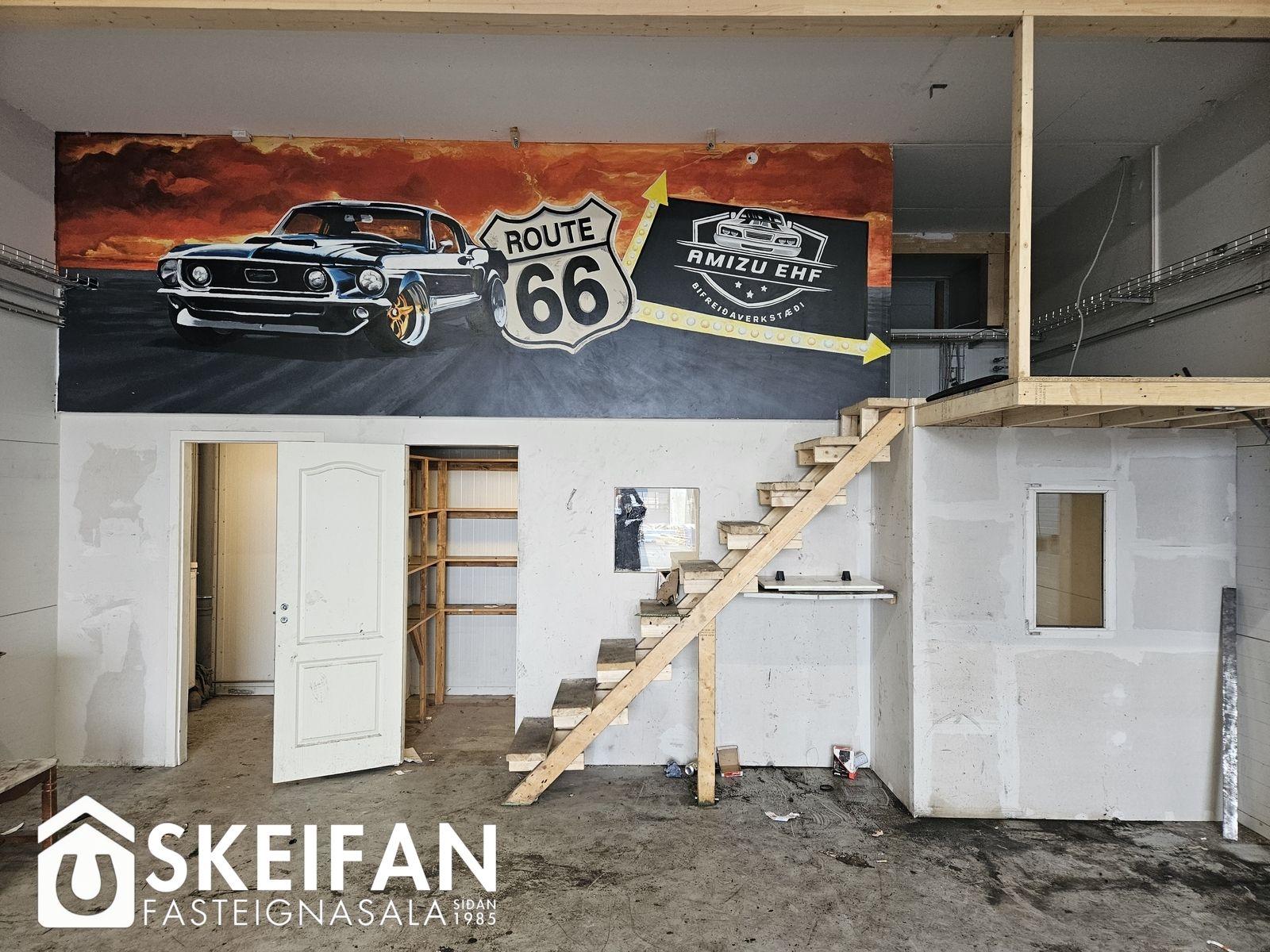 Nánari upplýsingar veitir HALLDÓR / Sími: 618-9999 / HALLDÓR@SKEIFAN.ISLýsing eignar: Innkeyrsluhurð 4,3 metrar á hæð, lofthæð upp í mæni eru tæpir 10 metrar, timburstigi með handriði milli hæða.Húsið er límtréshús frá LímtréVírnet ehf, klætt steinullar-yleiningum.
