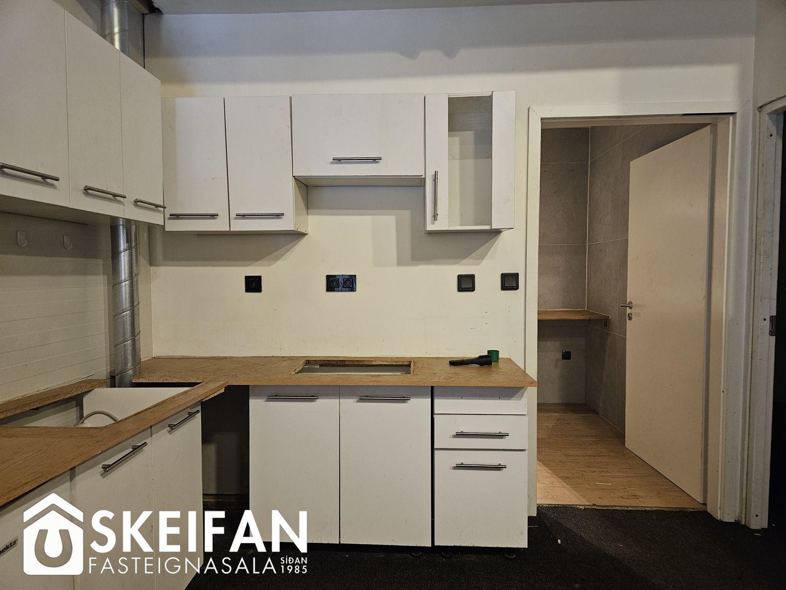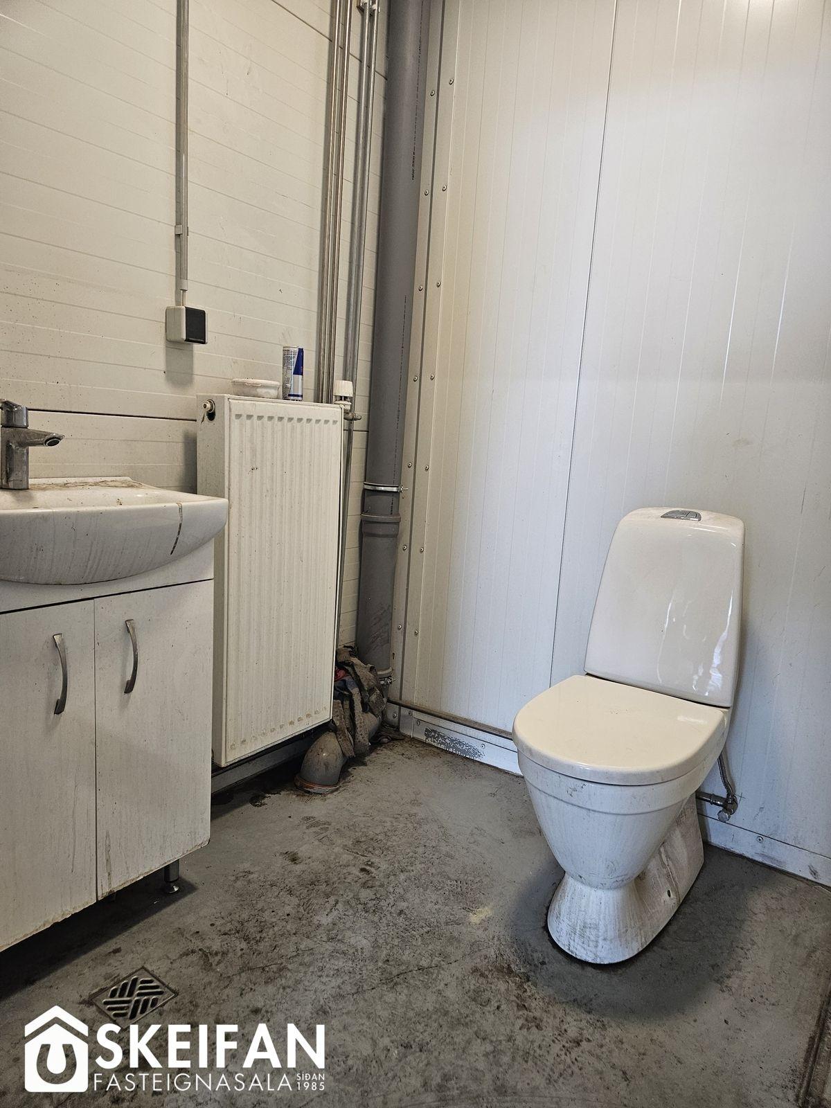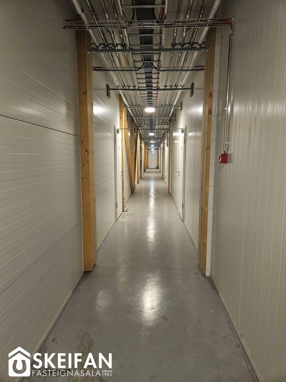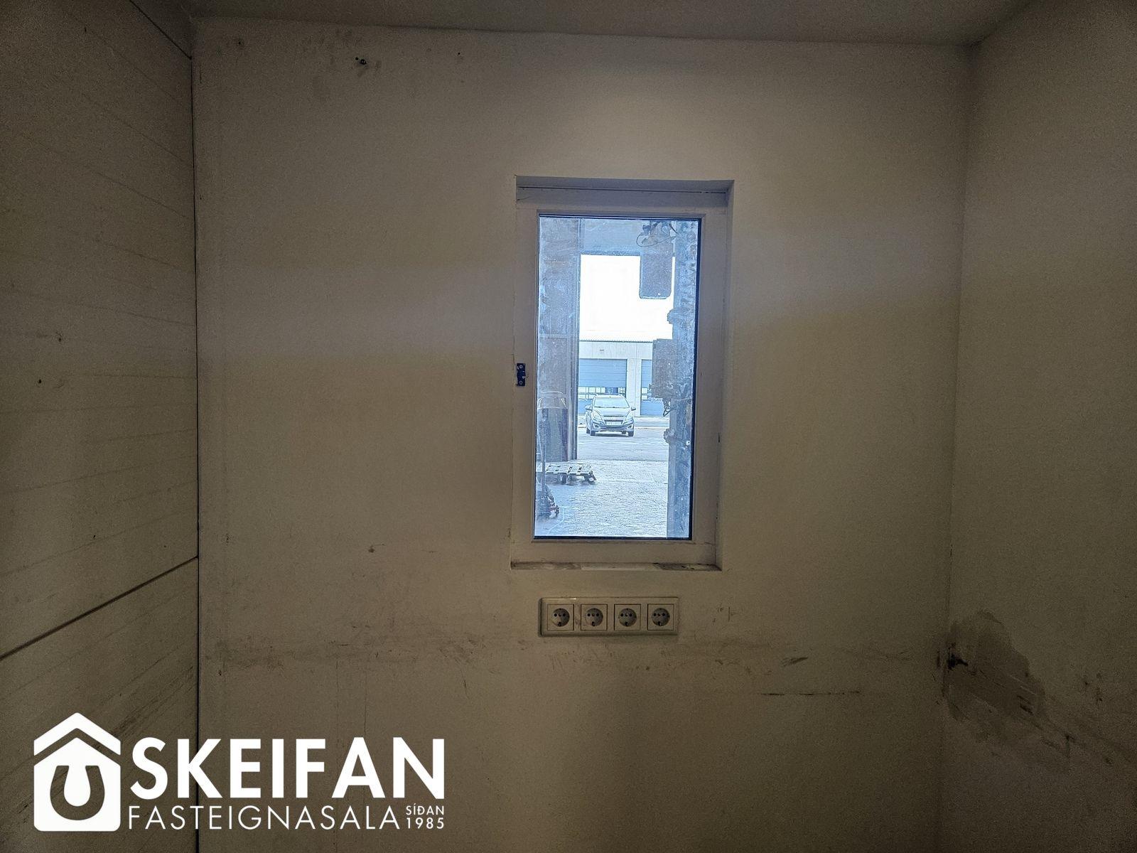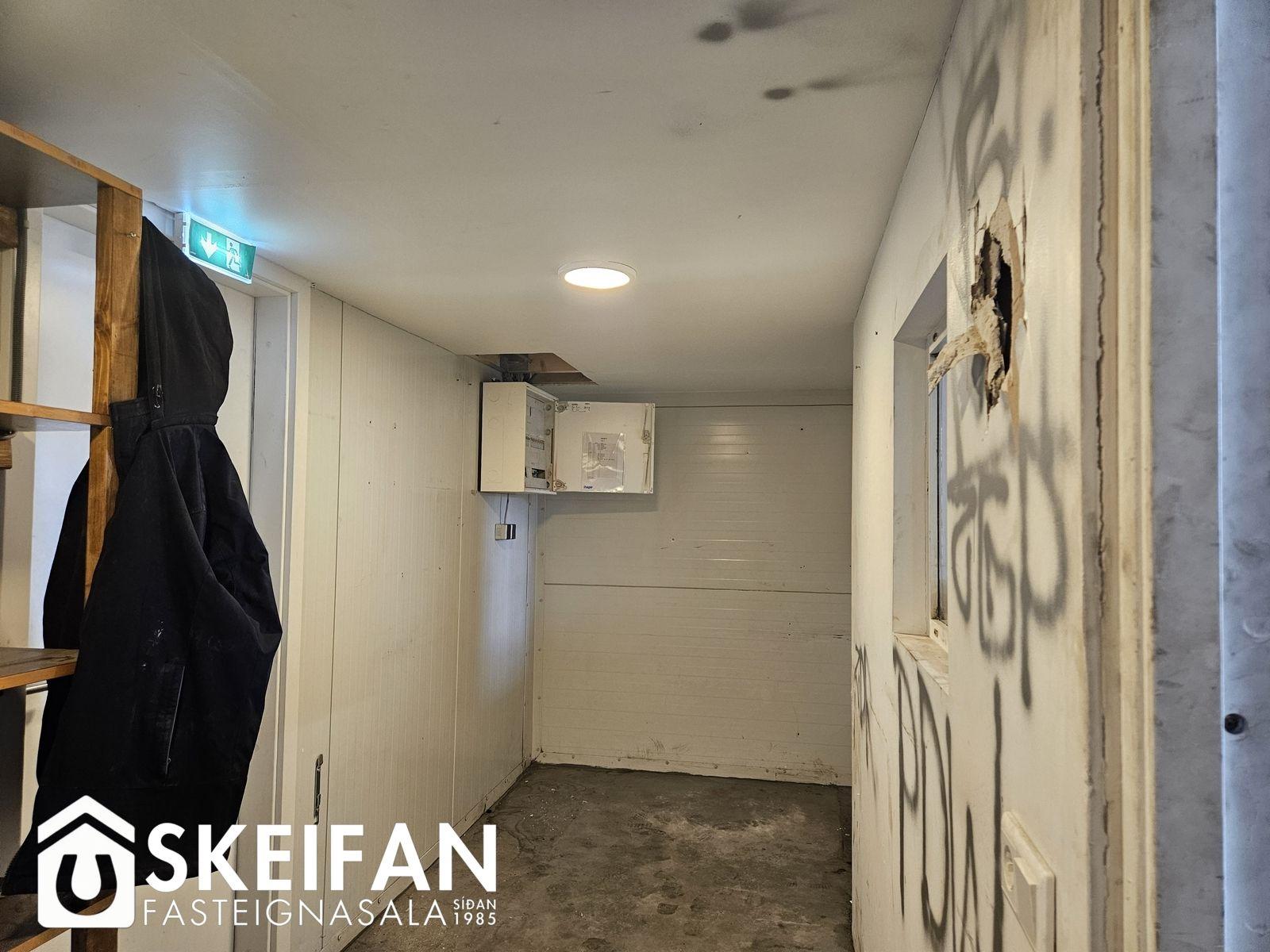 Á neðri hæð er salerni, skrifstofurými og geymslurými auk vinnurýmis, efri hæðina er búið að stúka af með 3 rýmum sem skiptast salerni með sturtu, gluggalaust rými auk skrifstofrýmis.