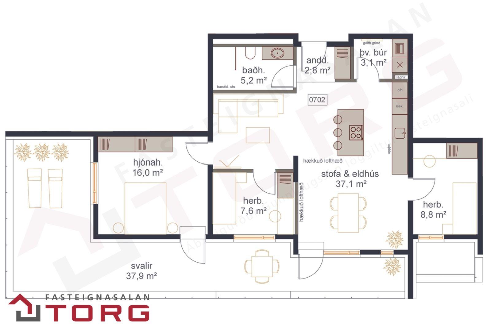 Ragnar Guðmundsson löggiltur fasteignasali hjá TORG kynnir: Glæsileg 3ja herbergja íbúð á 7. og efstu-hæð, á Grensásvegi 1F, íbúð nr. 0702, sem skilast tilbúin til innréttinga, sjá nánar skilalýsingu. Íbúðin er skráð skv. Þjóðskrá 100,4fm í góðu lyftuhúsi. Þak-svalir fylgja íbúðinni, alls um 37,9fm. auk sérgeymslu í sameign, skráð 6,4fm, sjá nánar á heimasíðu: Söluvefur G1. Nánari upplýsingar veitir Ragnar Guðmundsson löggiltur fasteignasali, í síma: 844-6516 eða tölvupósti: ragnar@fstorg.isAllar íbúðir á 7. og efstu hæð verða afhentar samkvæmt skilalýsingu, sjá hér úrdrátt: ....Engar innréttingar, fataskápar, hurðir, parket, blöndunartæki & vaskar eða önnur tæki fylgja með íbúðum á 7. hæð til að veita kaupendum sveigjanleika með að innrétta viðkomandi íbúðir....